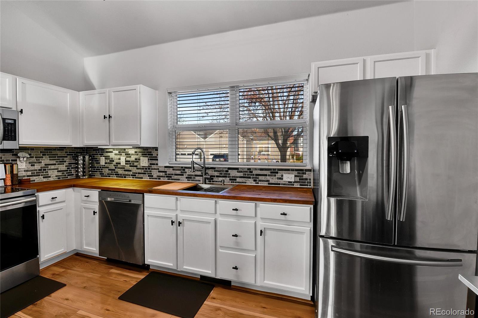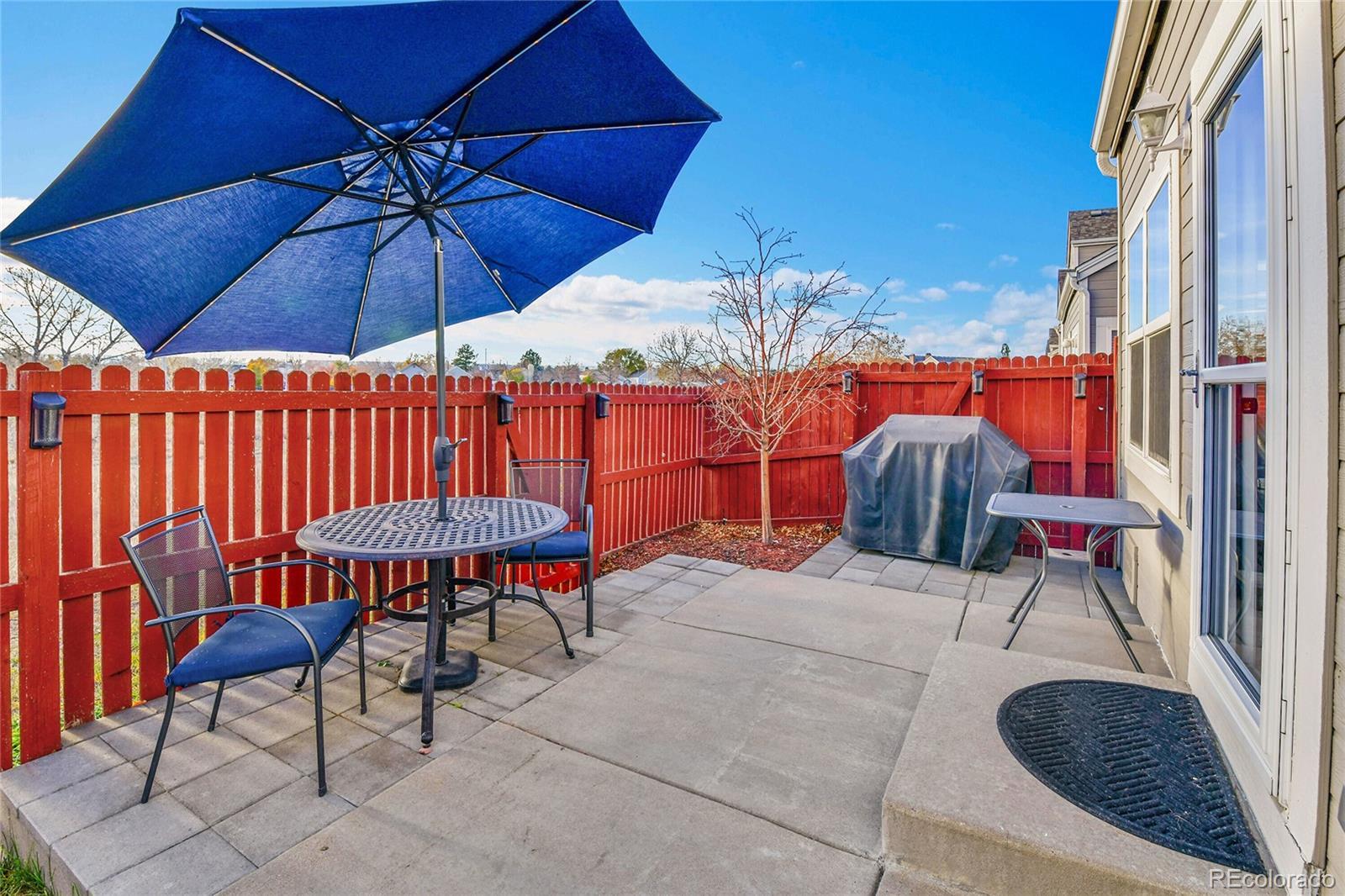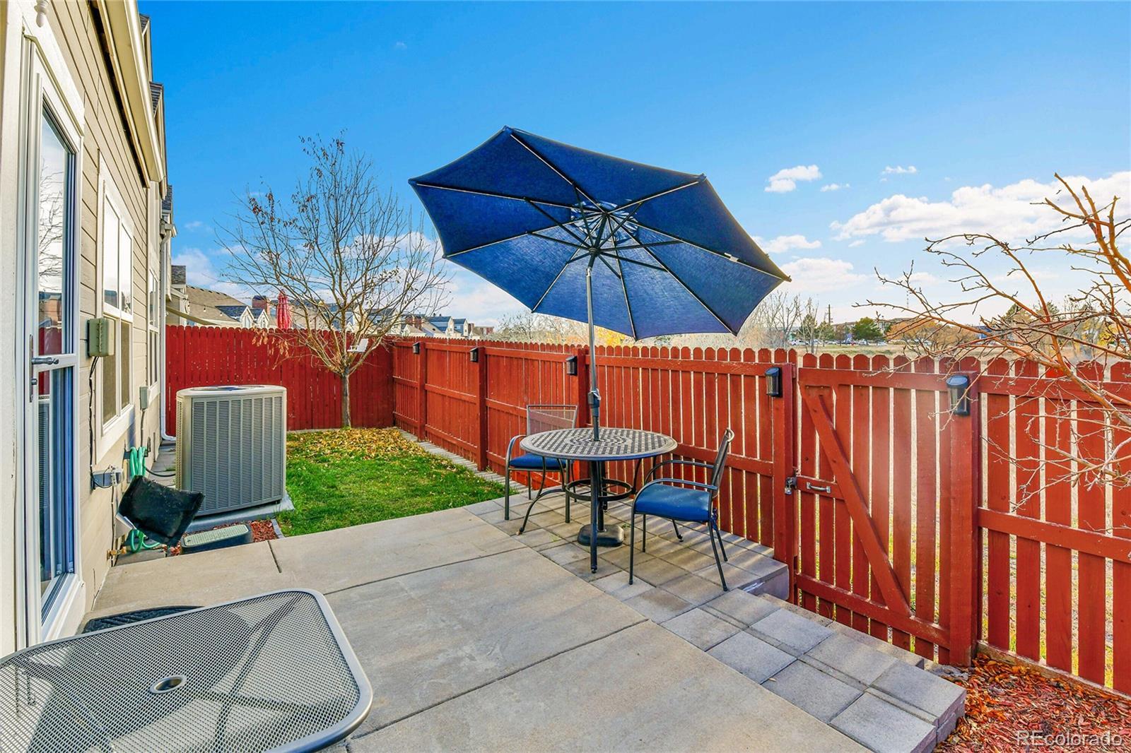 **NEW PRICE: $429,900 – Move-In Ready & Updated** Beautifully refreshed single-level end-unit townhome in the gated community of Gateway Park. Backing to a peaceful greenbelt, this home lives large with modern upgrades, smart-home features, and low-maintenance living in a prime Denver location. Enjoy a private fenced yard with an extended two-tier patio, mature lawn, timed sprinklers, and fence lighting—perfect for outdoor dining and relaxing in the Colorado sunshine. Inside, the open-concept layout offers vaulted ceilings, abundant natural light, and a cozy gas fireplace. The updated kitchen features painted cabinetry with soft-close drawers, butcher-block countertops, mosaic tile backsplash, floating shelves, black hardware, and a stainless steel single-basin sink. Interior improvements include whole-home paint, new bedroom carpet, updated lighting, and black door hardware—part of over $30,000 in upgrades between the HVAC and finishes. The primary suite includes vaulted ceilings, dual closets, and a refreshed five-piece bath with updated mirrors, faucets, and lighting. Major enhancements include a new roof (2023) and a full HVAC system replacement (2024–2025) valued at over $18,000—featuring a new furnace, heat pump, oversized AC, and smart thermostat. The oversized two-car garage is fully finished, lighted, and equipped with a smart opener. Gateway Park offers gated access, community trails, and pond views. Ideally located just 0.5 miles to Starbucks, 0.6 miles to King Soopers and Sprouts, and minutes to Green Valley Ranch dining, Gaylord Rockies Resort, and DIA. Quick access to I-70, I-225, and Peña Blvd for easy commuting. With its NEW PRICE and over $30,000 in upgrades between the HVAC and finishes, this home offers exceptional value—schedule your showing today.