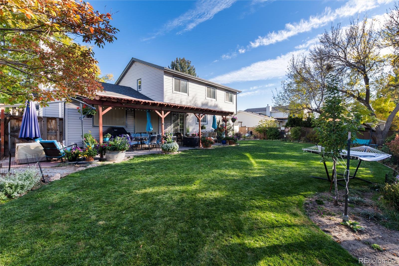 Discover the perfect blend of comfort and convenience in this stunning 4-bedroom, 3-bathroom two-story Northridge home. Boasting 2,134 finished square feet, this residence is perfectly positioned in the heart of Highlands Ranch, just minutes from the C-470 and Broadway corridor for effortless commuting and easy access to retail, dining, movie theater, and world-class trails. The main level welcomes you with a thoughtful floor plan designed for modern living, featuring formal living room and dining room and casual family room space with fireplace that flows seamlessly. Upstairs, the primary suite provides a peaceful retreat, while three additional bedrooms offer plenty of space for family, guests, or a dedicated home office. Looking for more room to grow? The full, partially finished basement is a blank canvas ready for your personal touch—think home gym, theater, or extra guest suite. Step outside to your own private oasis. The beautifully landscaped backyard is an outdoor enthusiast's dream with beautiful mountain views and amazing sunsets, featuring lush greenery, water feature and two storage sheds—ideal for gardening tools, outdoor gear, or a workshop. The double long covered patio is perfect for BBQ and outdoor gatherings. With the renowned Highlands Ranch amenities and rec centers at your fingertips and a layout that accommodates every stage of life, this home is a rare find in a highly sought-after neighborhood.