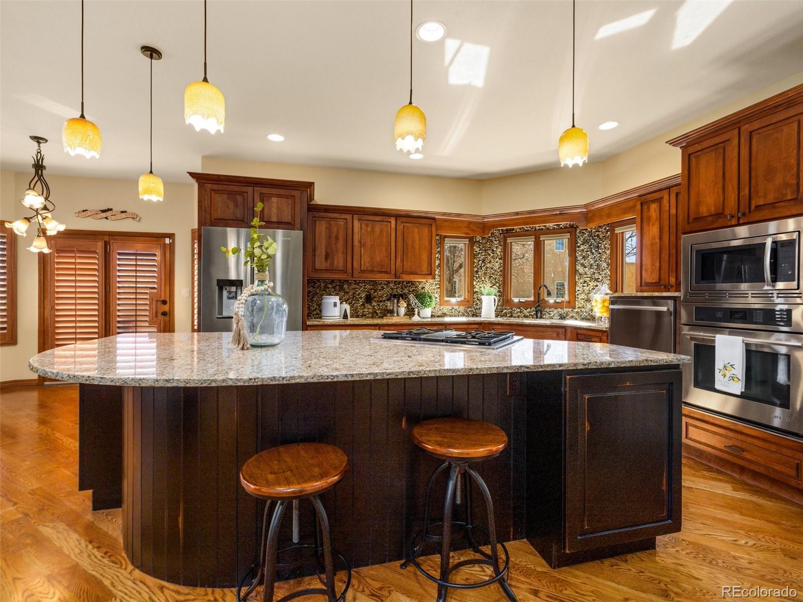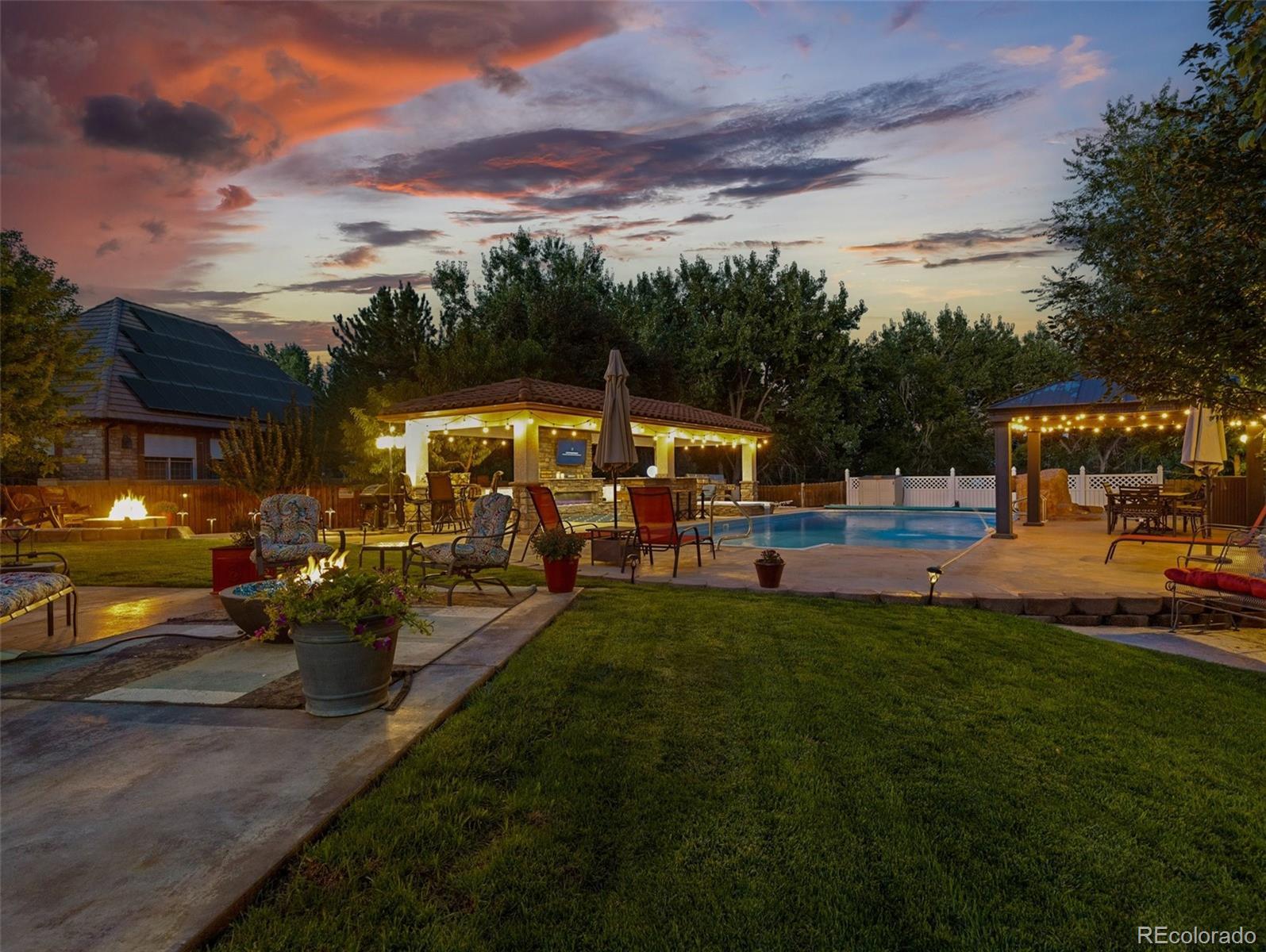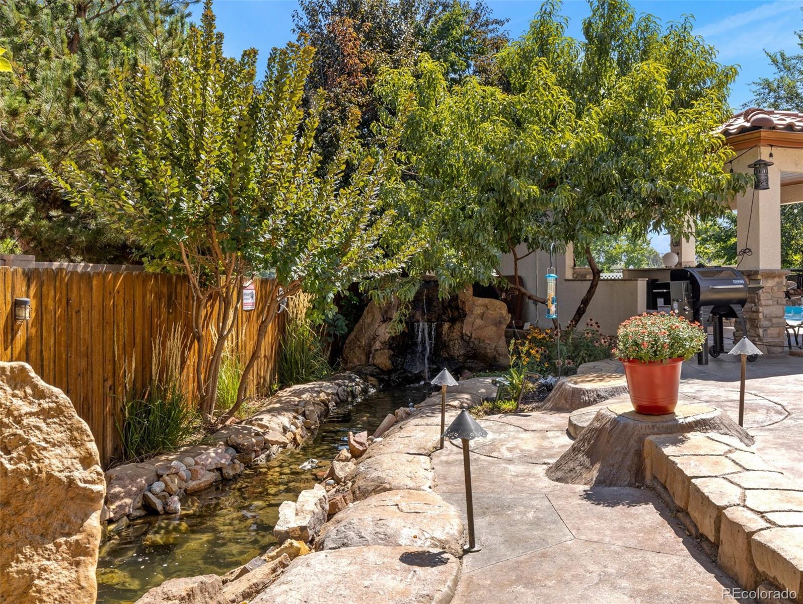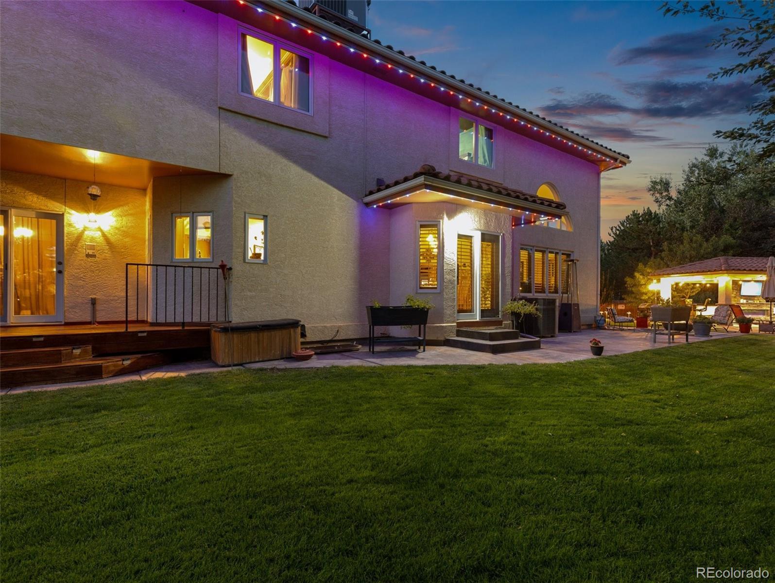 Take Advantage of This New Price! Don't miss this exceptional opportunity to embrace luxury in this stunning 2-story home located in the prestigious El Camino neighborhood. Featuring 5 bedrooms, 5 bathrooms, and over 5,000 sq ft of beautifully remodeled living space, this home seamlessly combines elegance, comfort, and functionality. Step into nearly 2,000 sq ft on the main level, where you’ll be welcomed by soaring vaulted ceilings, a spacious formal living and dining area, and a gourmet kitchen that’s truly the heart of the home. The chef’s kitchen boasts a large granite island, stainless steel appliances including a gas cooktop, double ovens, a warming drawer, custom cabinetry, and a designer tile backsplash—perfect for entertaining and hosting in style. Upstairs, you’ll find four spacious bedrooms, including a luxurious primary suite featuring a custom slate accent wall, a spa-inspired bathroom, an expansive walk-in closet, and a walk-in shower that offers the ultimate in relaxation. The fully finished basement expands your living space with a home theater, hobby room, dry bar, and an additional bedroom and bathroom, ideal for guests or multigenerational living. And then there's the backyard oasis—a show-stopping retreat complete with a covered outdoor kitchen, saltwater in-ground pool, built-in hot tub, serene ponds, gazebo, and Rocky Mountain Trim lighting for evening ambiance. Backing to a private greenbelt, this space is perfect for entertaining or simply unwinding in peaceful seclusion.