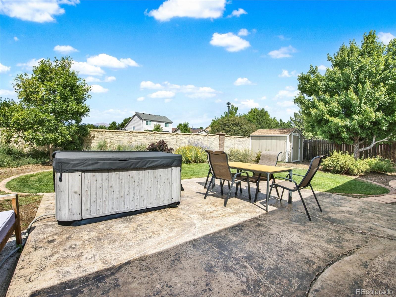 Welcome home! This rancher offers main level living with a primary bedroom featuring an attached ensuite and walk-in closet. There are beautiful hardwood floors throughout the main living areas. The main level bedroom near the front of the home could also double as an office. The kitchen comes equipped with slate stainless steel Samsung appliances, 42" white cabinets and a large pantry for storage. The basement boasts a large family/rec room, which is pre-plumbed for a potential wet bar. The finished 3-car garage adds to the features of this home. Additionally, the home includes many smart home features. Outside, you can relax while enjoying the views of Pikes Peak and Cheyenne Mountain. The back yard features a stamped concrete patio adjoining a lush lawn surrounded by flowering plants and an 8' x 10' storage shed. There is also a hot tub in the back yard for your enjoyment. Home offers easy access to all the essentials, to include Powers Boulevard, I-25, parks, the airport, shopping and military bases.