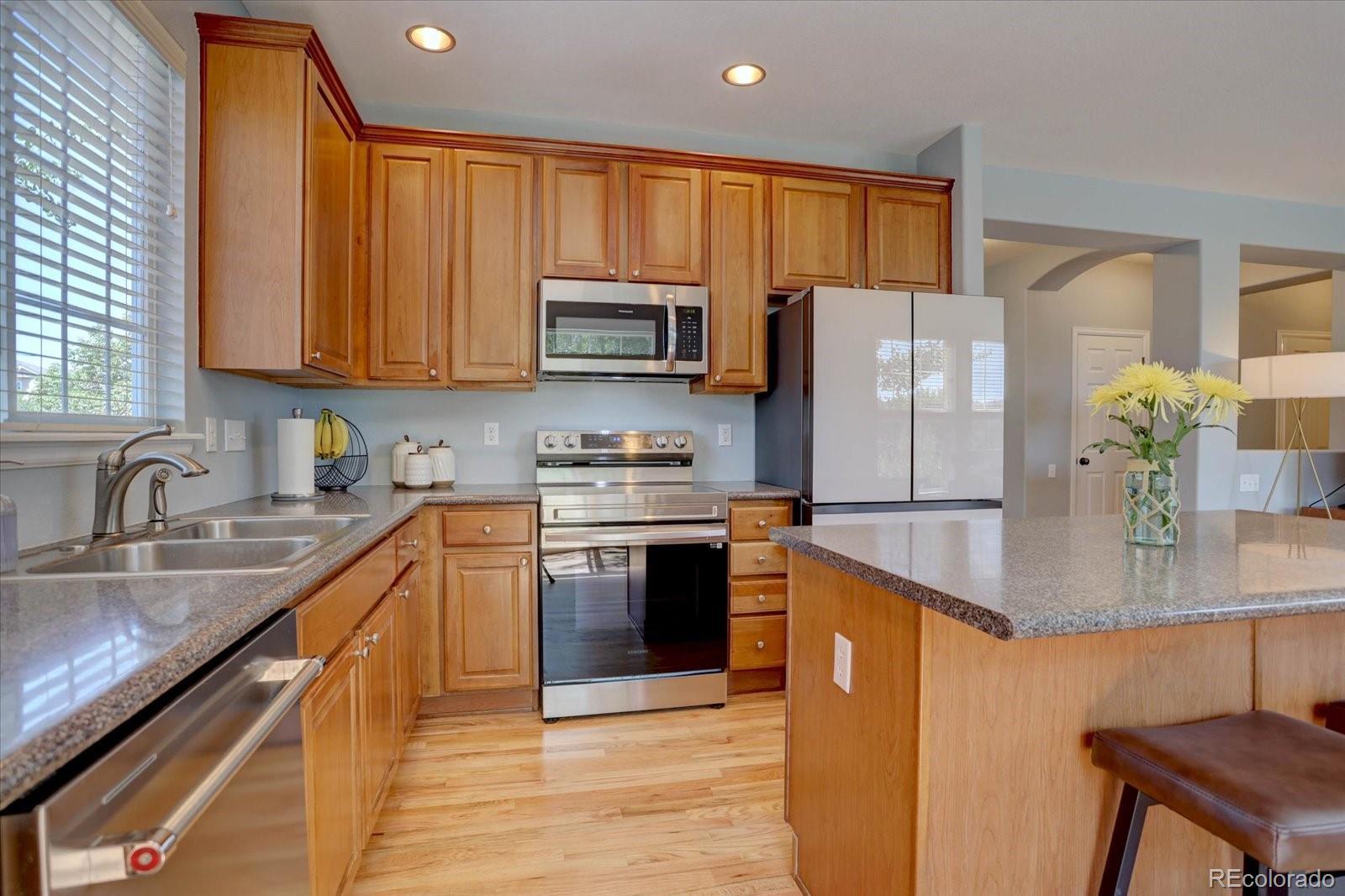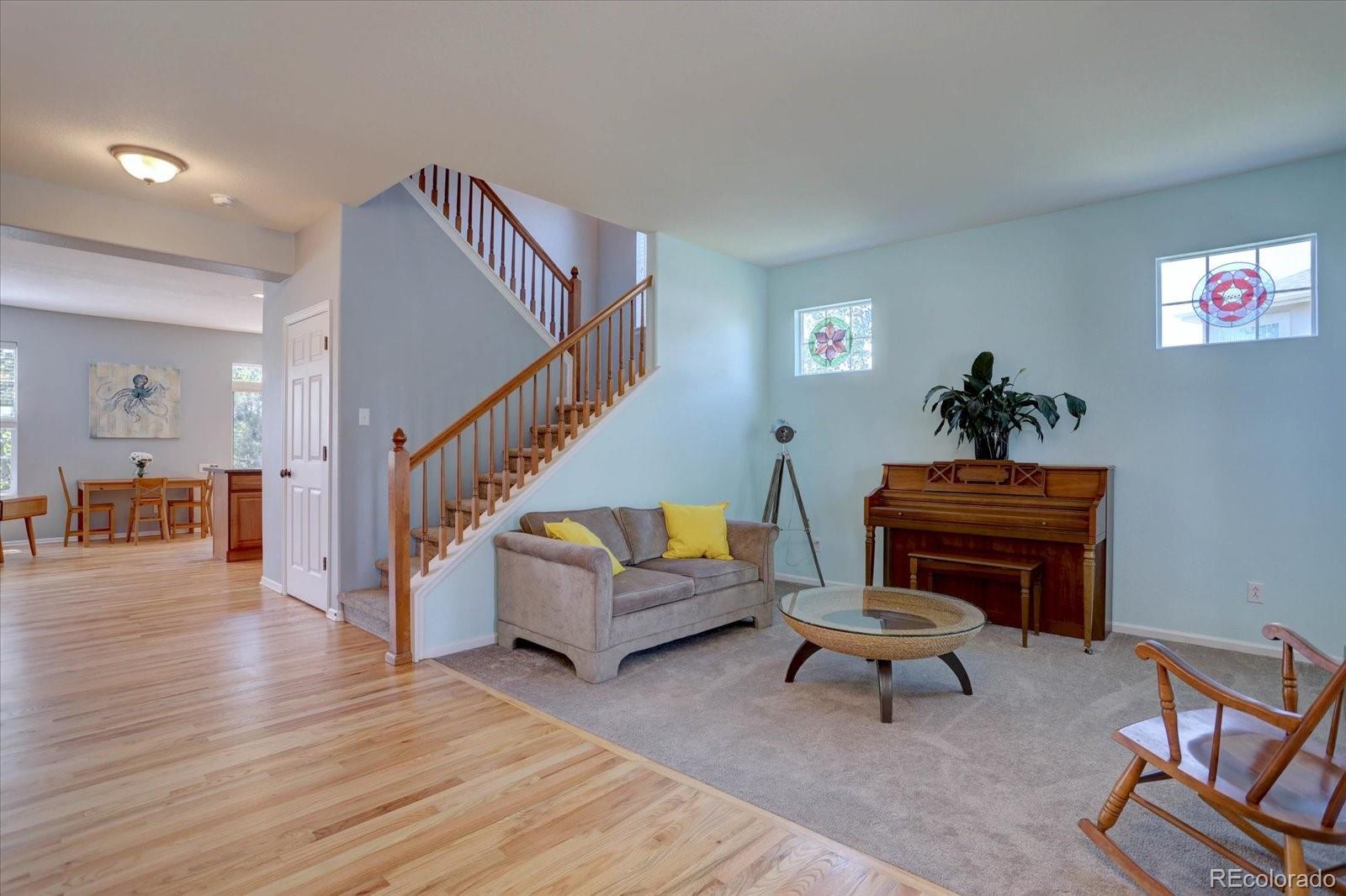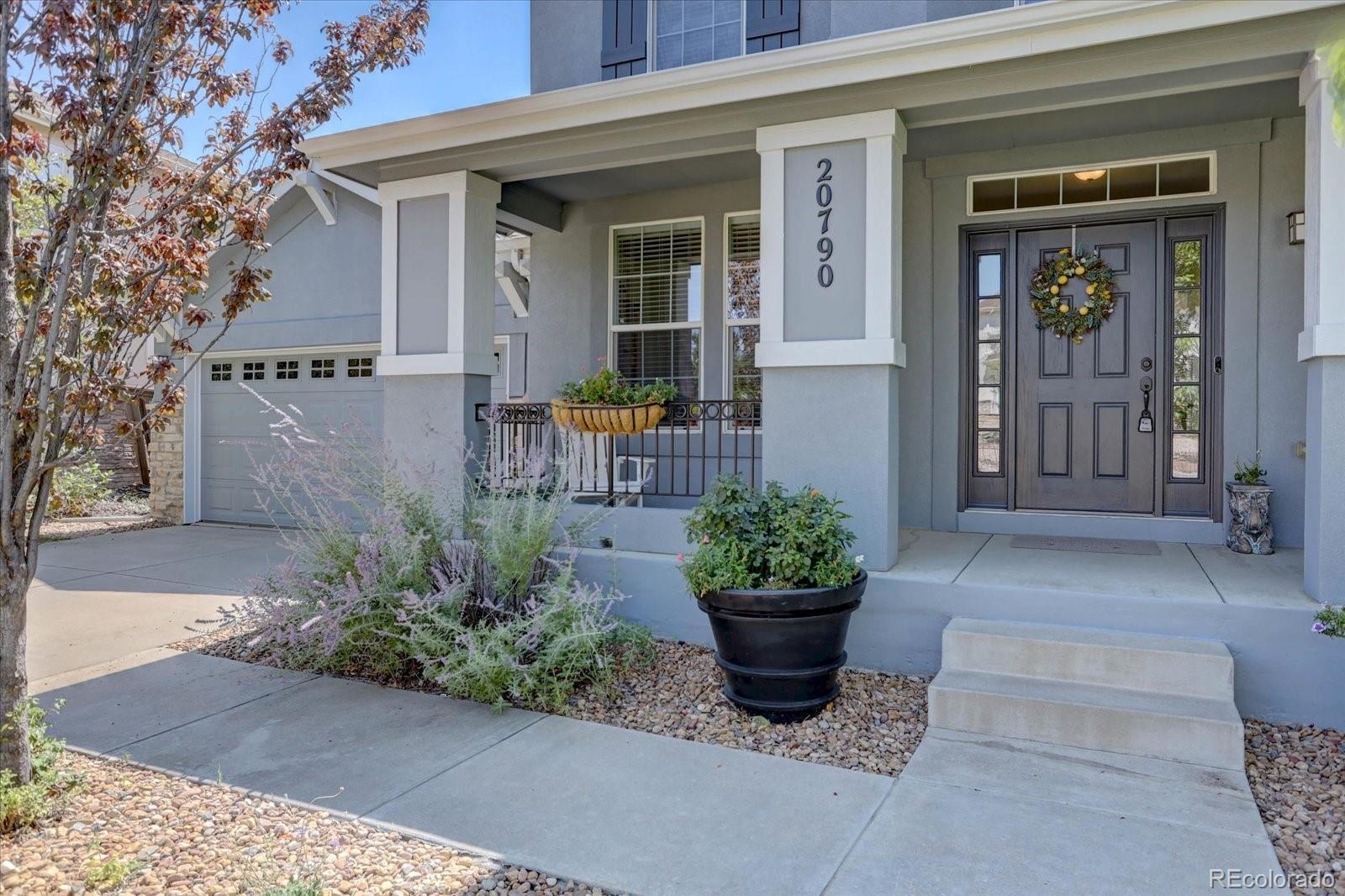 Assumable VA Loan at 3.22% Ask how today! Welcome to 20790 E Greenwood Drive, an updated and move-in ready 2-story home in the highly sought-after Conservatory community. Ideally located backing to a greenbelt and walking path, this home offers both privacy and access to nature right out your back door. Mature landscaping, fresh exterior paint, and a covered front patio add to the inviting curb appeal. Inside, you are greeted by freshly refinished hardwood floors throughout the main level and new interior paint. The open concept floor plan features a formal living and dining area at the entry, flowing into a light-filled family room that connects seamlessly to the kitchen and backyard. The kitchen boasts an island, stainless steel appliances, pantry, and plenty of cabinet space. Upstairs, the spacious primary suite offers vaulted ceilings, a walk-in closet, and a 5-piece bath. Two additional bedrooms plus a loft provide flexibility for an office, playroom, or guest space. Enjoy Colorado evenings in the spacious backyard overlooking open space and the walking path. Additional highlights include a solar system for energy efficiency and peace of mind. Residents of The Conservatory enjoy access to a community pool, clubhouse, parks, and miles of walking trails, all while being conveniently located for easy commutes to DIA, DTC, shopping, and dining. This home truly has it all — updates, space, and an unbeatable location! Since 2022, the home has received many updates, including: Water heater (2022) Carpet replaced (2022) Sump pump (2023) Sinks and counters in upstairs bathrooms (2024) Oven/range/refigerator (2024) Wood floors refinished (2025) A/C (2025) Toilets replaced (2021)