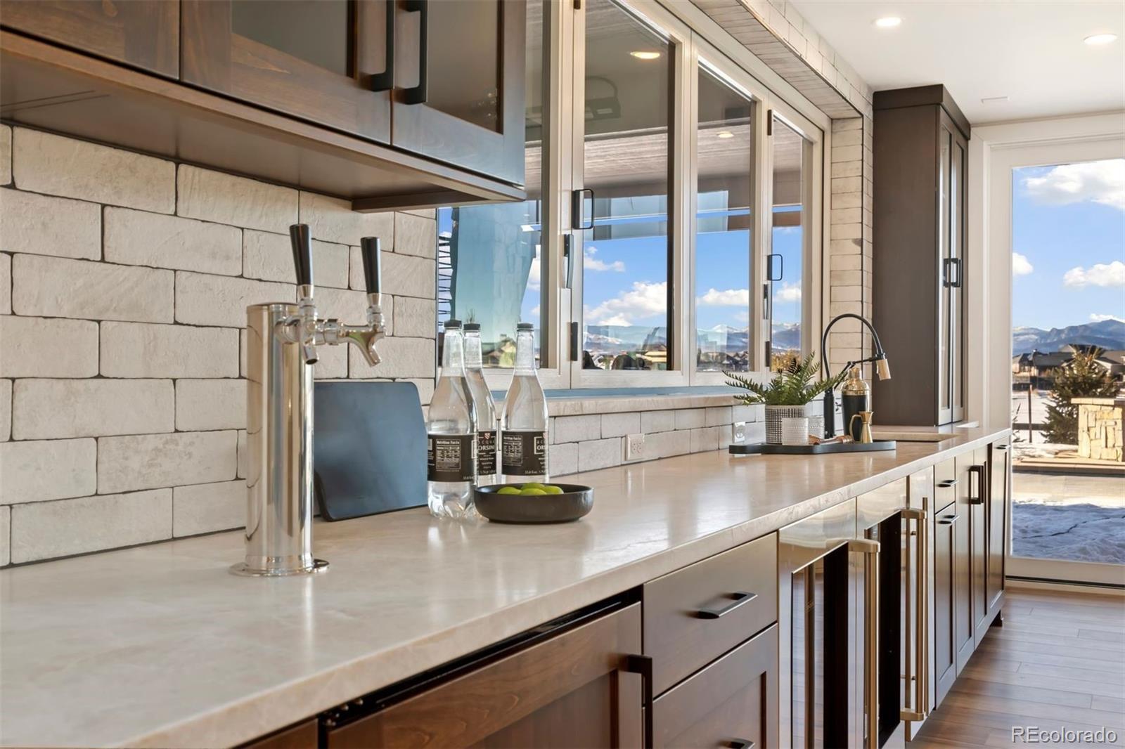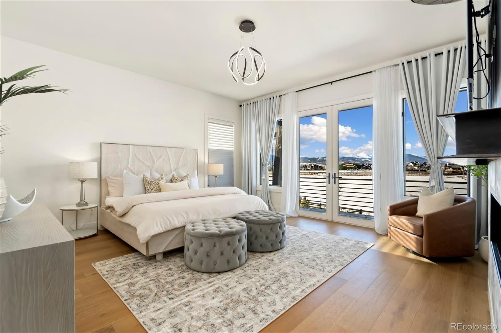 MOUNTAIN VIEWS, SUMMER VIBES AROUND THE POOL & FIRE PIT, GOLF COURSE COMMUNITY Nestled in the prestigious Heron Lakes community, renowned for its luxury living and featured on HGTV's "Rock the Block.” The sophisticated design seamlessly integrates indoor and outdoor spaces, perfect for Colorado living and ideal for entertaining or enjoying the serene surroundings of this location. The Grand room impresses with 20-foot ceilings adorned with beautiful architectural beams & an abundance of natural light from sun filled picture windows. The gourmet kitchen features a butler’s kitchen for discrete storage & appliances, integrated SubZero refrigeration system, Wolf gas stove, dual Cove dishwashers and a custom dining table. SPA INSPIRED PRIMARY with private balcony showcasing some of the best views in the community. The primary bath is a true oasis, Whirlpool tub, beautifully appointed walk-in shower system, Taj Mahal stone, premier Toto bidet tucked in water closet. 4 additional bedrooms & 4 well-appointed bathrooms provide ample space for family and guests. The second-floor loft, enhanced by unique skylights, serves as an ideal retreat for a home office, au pair suite, or mother-in-law suite, ensuring privacy and comfort. Step outside to your personal paradise: a heated outdoor living room with glass accordion doors that open to a stunning entertainment area. Enjoy the heated pool and spa, roast marshmallows around the Delta 10-person gas fire pit, or host unforgettable gatherings in your private backyard oasis. Situated just moments from the premier TPC Colorado Golf Course, residents enjoy access to world-class amenities, including fine dining, café, lap and splash pools, swim-up bar, cabanas, state-of-the-art fitness center, and massage treatments. Optional lake membership offers exclusive opportunities for fishing, boating, kayaking, and paddleboarding—embracing the ultimate Colorado lifestyle.