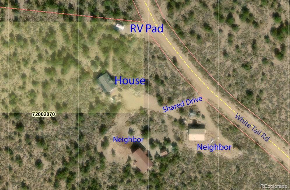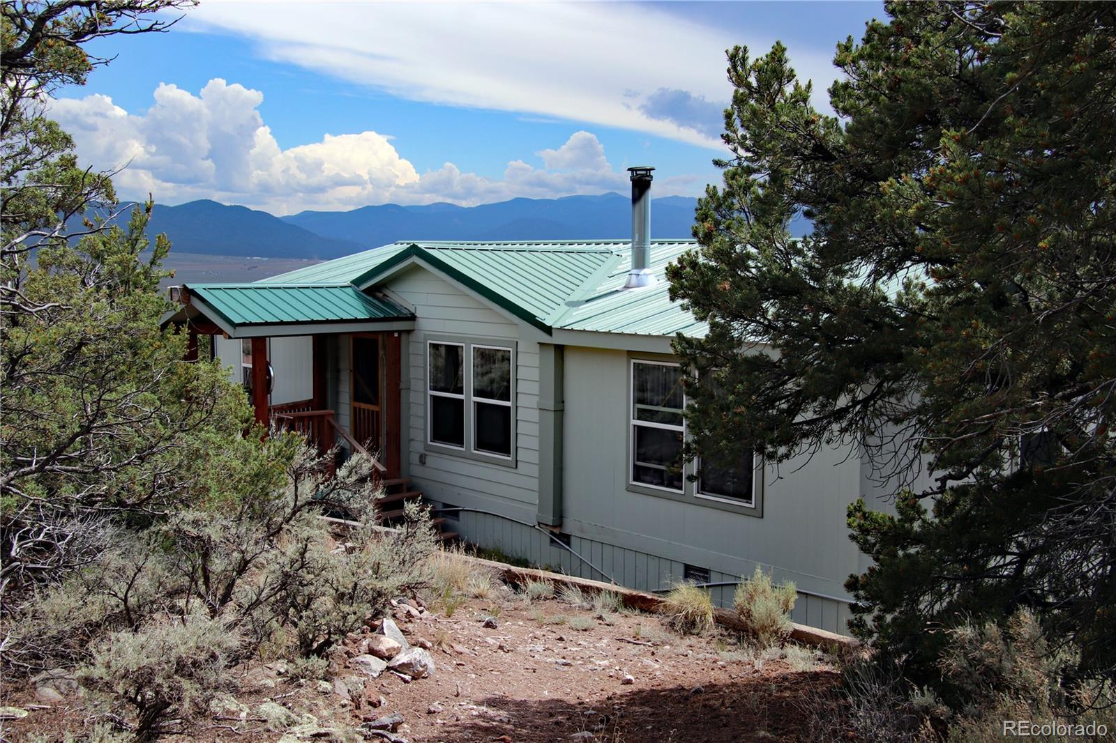 In the Wild Horse Mesa Canyon, only a small handful of homes exist, and all properties here are larger 35+ acres. At this home, you can sit on your 8' x 40' back porch like you never before dreamed to do, overlooking the Sangre de Cristo Mountains and the vast valley below as you sip your beverage and just breathe. The windows and doors in this home are set across from one another to allow the cooler summer breezes to waft through the house for that peaceful mountain living feel. This is a one owner home, utilizing off-grid features such as a solar energy system, septic system and buried cistern. A 12KW generator will ensure the batteries can still receive a charge when the sun has a less than accommodating. An RV pad exists at the NE edge of the property with its own drive way. Winter nights can get chilly, in addition to the forced air furnace, the wood burning stove in the living room can generate enough heat to keep you toasty and a Rinnai heater in the primary bathroom can utilized there as well. This home shares the acreage with two other homes as tenants in common, meaning your property tax on the acreage is only 33% of the norm. Being at the northern edge of the property, it is considered that there are about 10 acres attributed to this home. Though it is rare to actually see them, larger animals in the area include mule deer, elk and black bear. The seller is offering a $5k carpet allowance to have the carpets stretched or replaced.