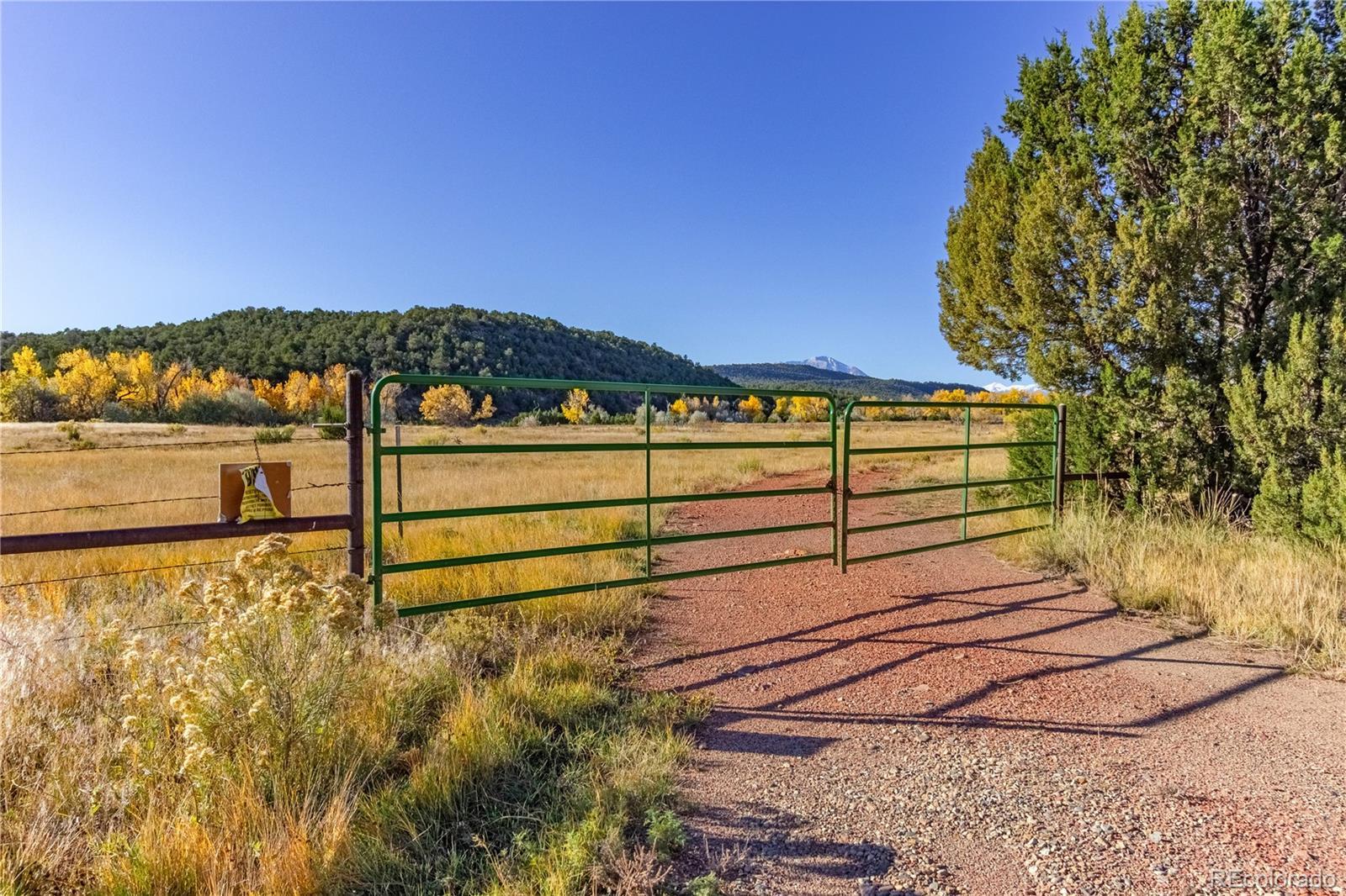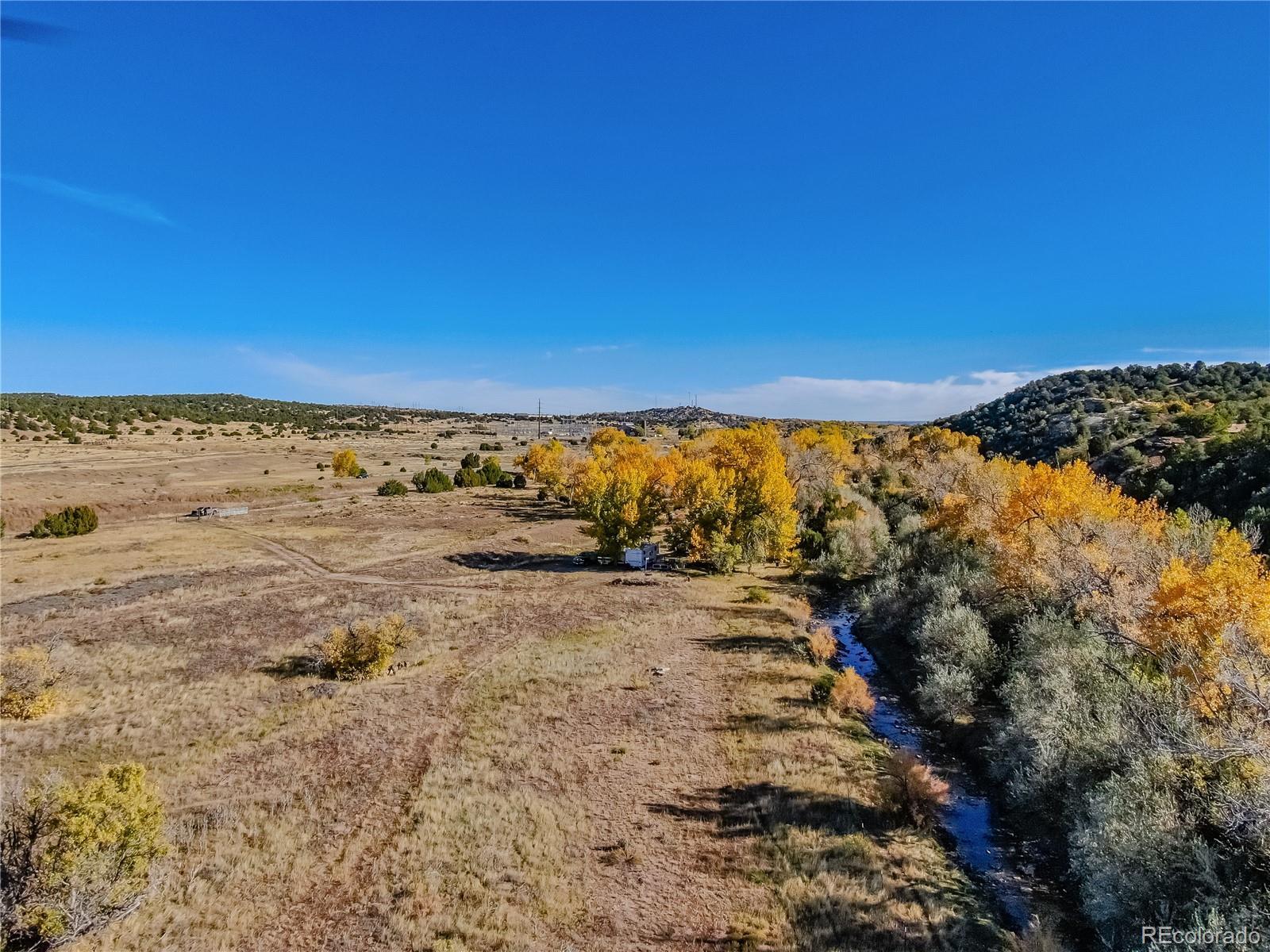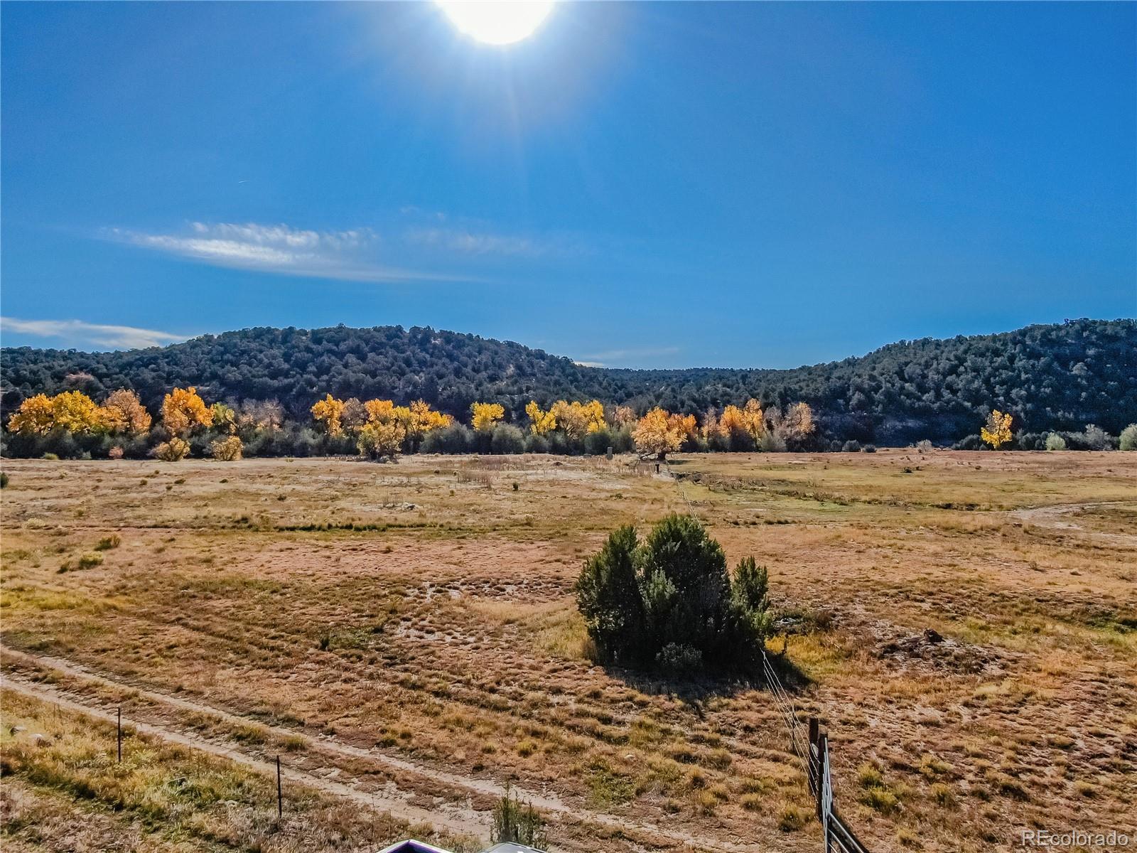 Truly rare City Ranch parcel with live water on the Cucharas River. Diverse 35.06 acres, with a lower portion accessed off US Hwy 160, and an upper portion accessed off Bear Creek Road. The fully fenced lower parcel runs across the meadow to a shady treed site along the river with gorgeous valley views. Camper, solar system, back up generator, cistern on trailer, shed and boat available. Just bring your coffee to enjoy on the deck listening to the river and watching for wildlife, or planning your day of boating minutes away at Lathrop State Park. The upper parcel sits above the river, a separate larger area treed with pinon and juniper, and offering sweeping views of the surrounding mountains. No HOA or covenants, just essential Colorado ready for your recreational getaways, or build to suit.