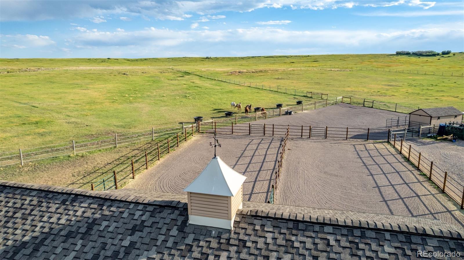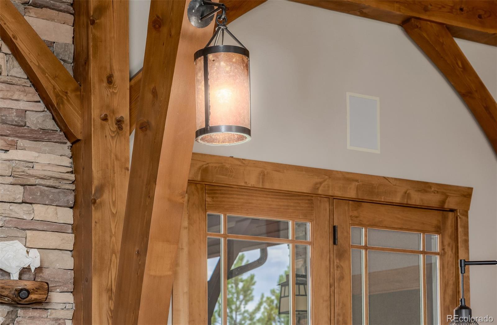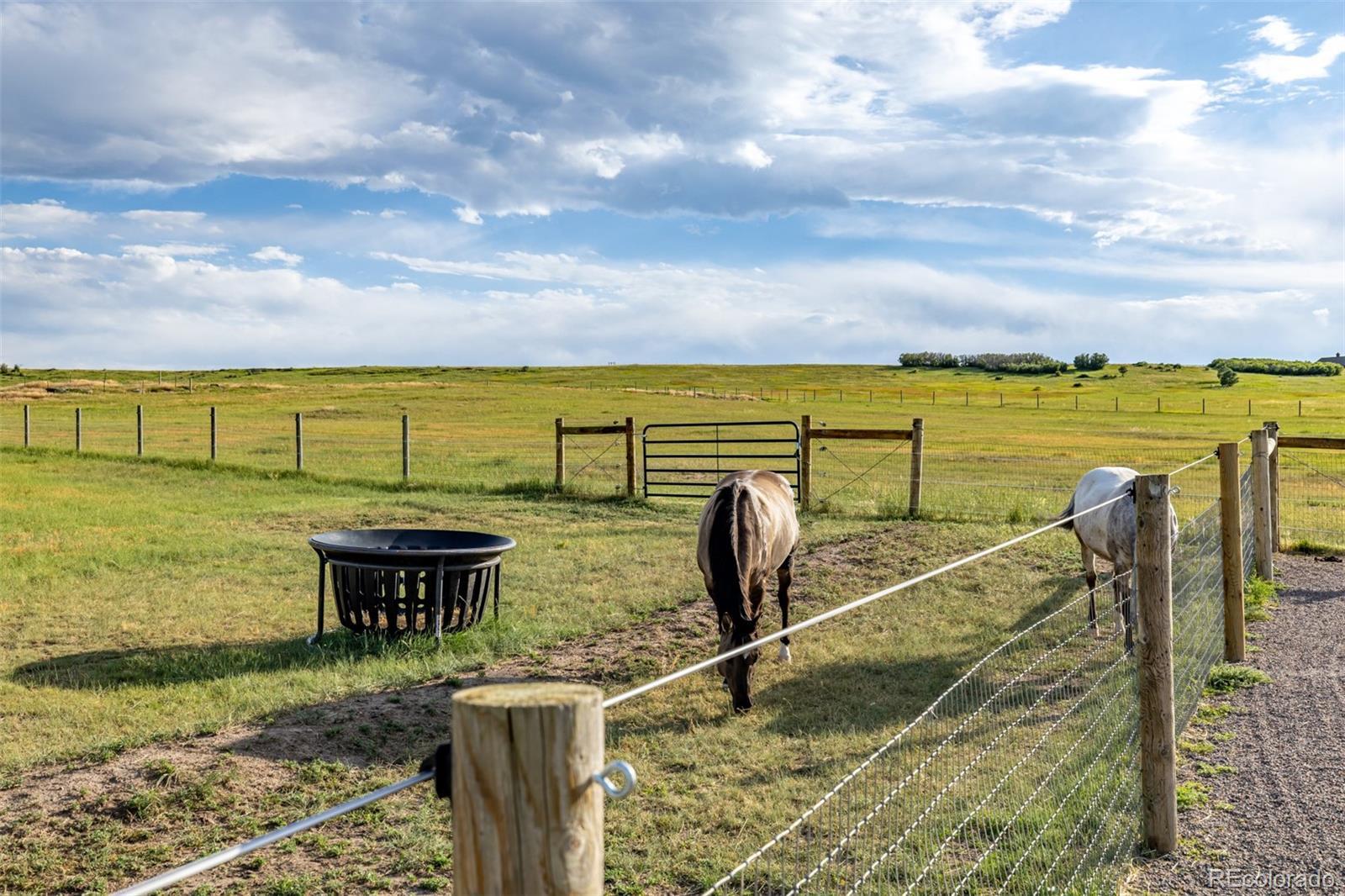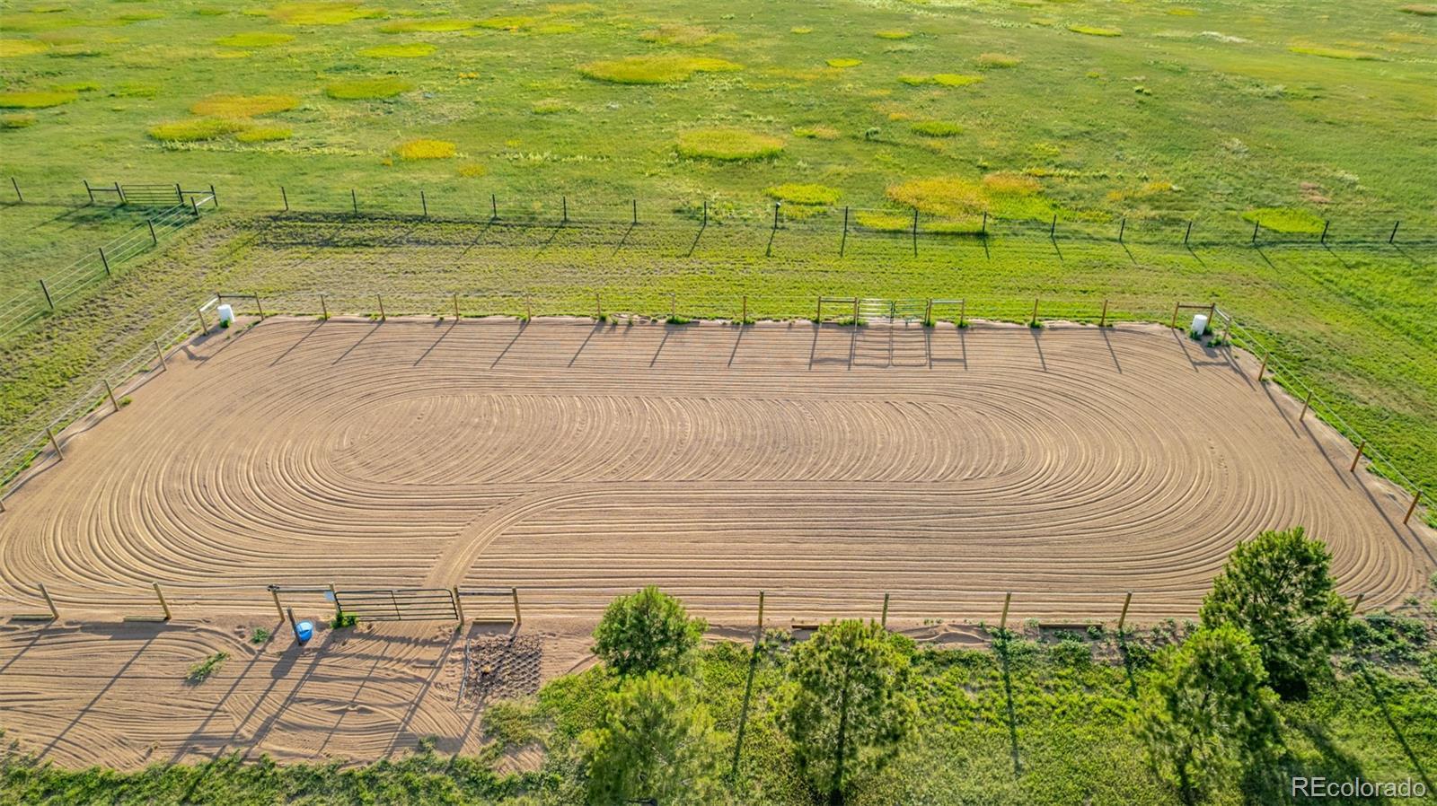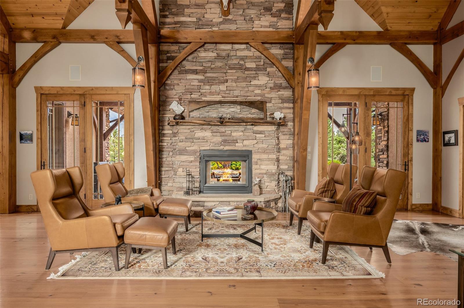 An exceptional equestrian estate on 35 acres in the gated Meadows at Castlewood, bordering Castlewood Canyon State Park and minutes from the Colorado Horse Park. This custom timber-frame home showcases mortise and tenon joinery, soaring beams, tongue-and-groove ceilings, wide plank flooring, and exquisite millwork. The great room rises to 18 feet with a full-height double-sided stone fireplace shared with the outdoor patio, while the chef’s kitchen offers a massive granite and soapstone island, dual sinks, built-in appliances, a six-burner Wolf range with double ovens, and a spacious walk-in pantry with additional freezer. The main-level primary suite includes an antique fireplace surround, wet bar, etched-glass shower, soaking tub, and a private patio with water feature and pond. A secondary ensuite bedroom and a bonus office/flex suite above the garage provide versatility for family, guests, or caretakers. The finished basement expands livability with two bedrooms, Jack & Jill baths, a bonus room, exercise space, pub-style bar, rec room, roughed-in theater, and a secure concrete vault with steel door. Radiant floor heating, buried propane tanks, a heated four-car garage, and refined finishes throughout ensure both comfort and durability. Equestrian facilities are thoughtfully designed for safety and ease of use: a six-stall barn with custom StableMaster doors and Dutch doors from each stall to the exterior, outdoor wash area, a Chaparral round pen, two-stall pony barn with 10x10 stalls, and a double hay barn. Horse-safe fencing, dry paddocks, multiple dry lots, and rotating pastures with excellent drainage provide year-round usability and peace of mind. Professional arena footing and double-gated access—from the community entrance and private drive—create a secure, horse-friendly environment. Every detail reflects a commitment to equestrian excellence combined with luxury living, offering a rare opportunity in one of Colorado’s most exclusive settings.