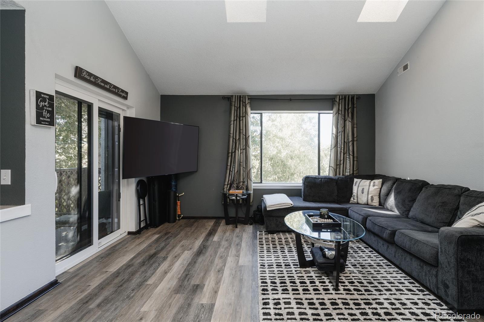 Welcome to Spanish Oaks, where classic design meets modern convenience! This beautifully updated split-level condo offers vaulted ceilings with recently cased skylights, an open floor plan, and a private deck, ideal for morning coffee or evening relaxation. The newly remodeled kitchen features brand-new soft-close cabinets, granite countertops, stainless steel appliances, and a cozy dining area. The spacious primary suite includes ample closet space and an en-suite bath, while the den provides a versatile space for an office, reading nook, or nonconforming second bedroom. Recent updates include newer flooring, light fixtures, AC, electrical, and hot water tank, providing both style and peace of mind. The open living and dining areas flow seamlessly, creating a bright, welcoming atmosphere perfect for entertaining or everyday living. Enjoy all the amenities of the sought-after Spanish Oaks community, including a pool, spa, and beautifully landscaped grounds. Conveniently located near shopping, dining, and entertainment, this condo offers both comfort and convenience in a desirable setting. Hurry and schedule a showing today!