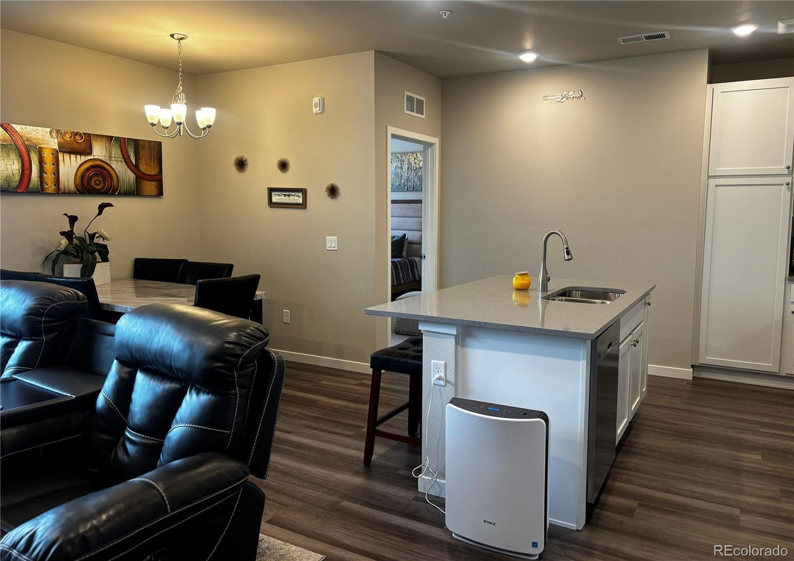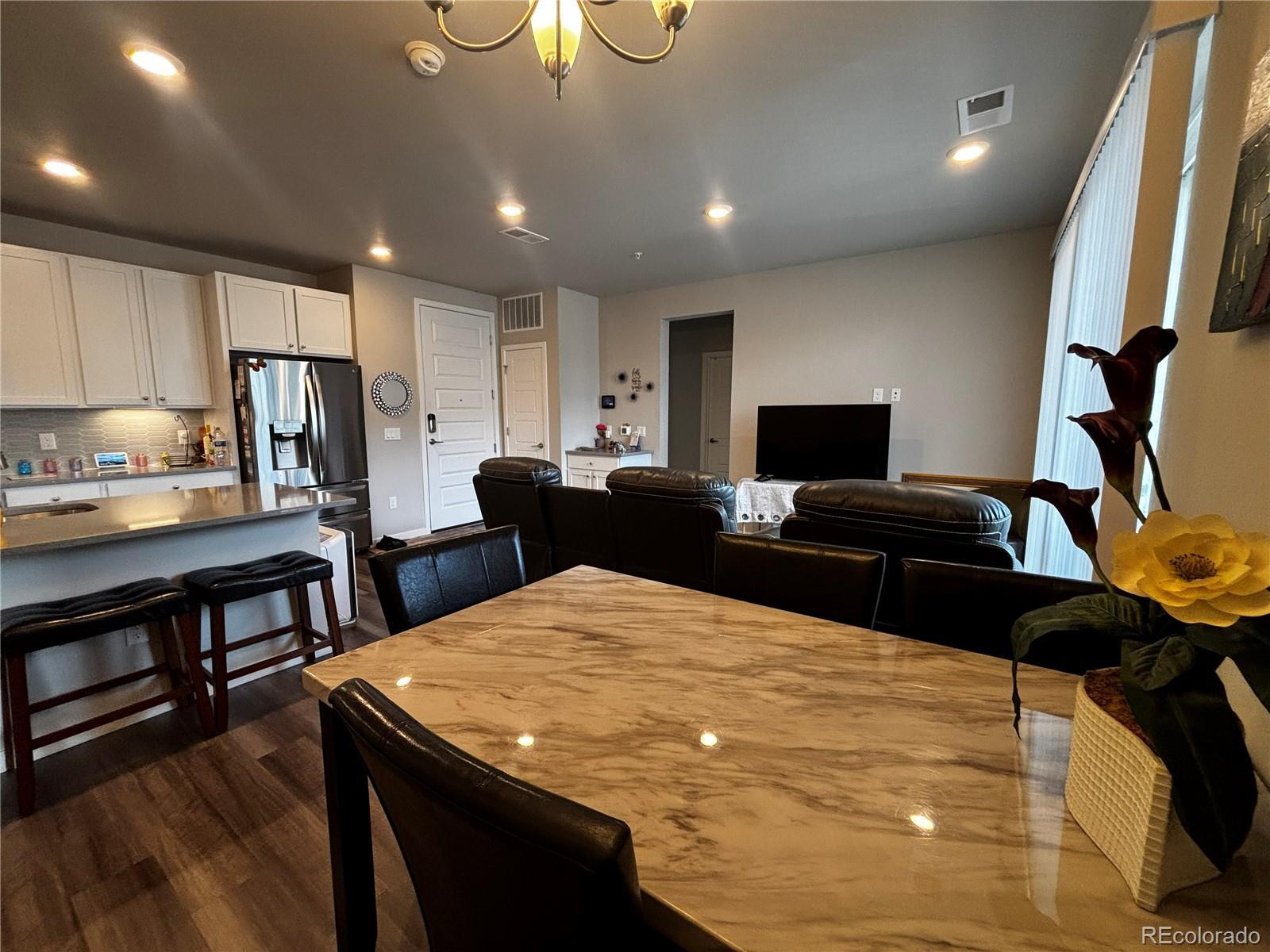 Welcome to this beautifully maintained 2-bedroom, 2-bathroom, 3rd-floor condo unit, offering 1,123 square feet of bright and modern living space. Located in the incredible Westcreek Parker community. This home features an open-concept layout with tons of natural light. The kitchen boasts sleek granite countertops, ample cabinetry, and a large island with a breakfast bar, creating the ideal space for cooking and gathering. The primary suite includes a walk-in closet and an ensuite bath, providing a private retreat. A generously sized second bedroom and additional full bath offer comfort and flexibility for guests or a home office. Step outside to a private balcony where you can enjoy your relaxation. This unit also includes an attached one-car garage on the first floor. Located just minutes from shopping, dining, parks, and top-rated schools, this condo offers both comfort and accessibility. Don't miss your chance to own this stunning home. Schedule your showing today!
