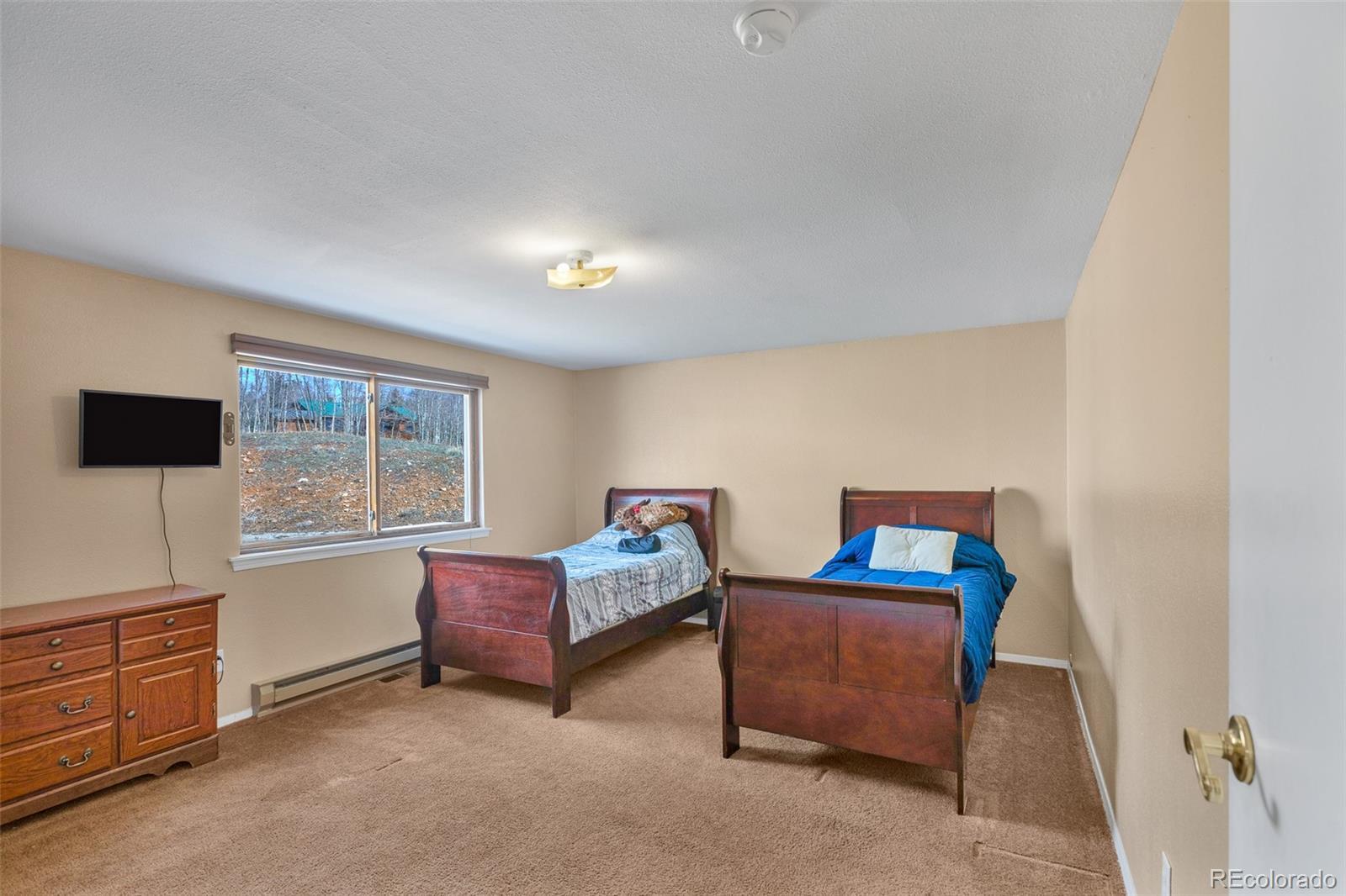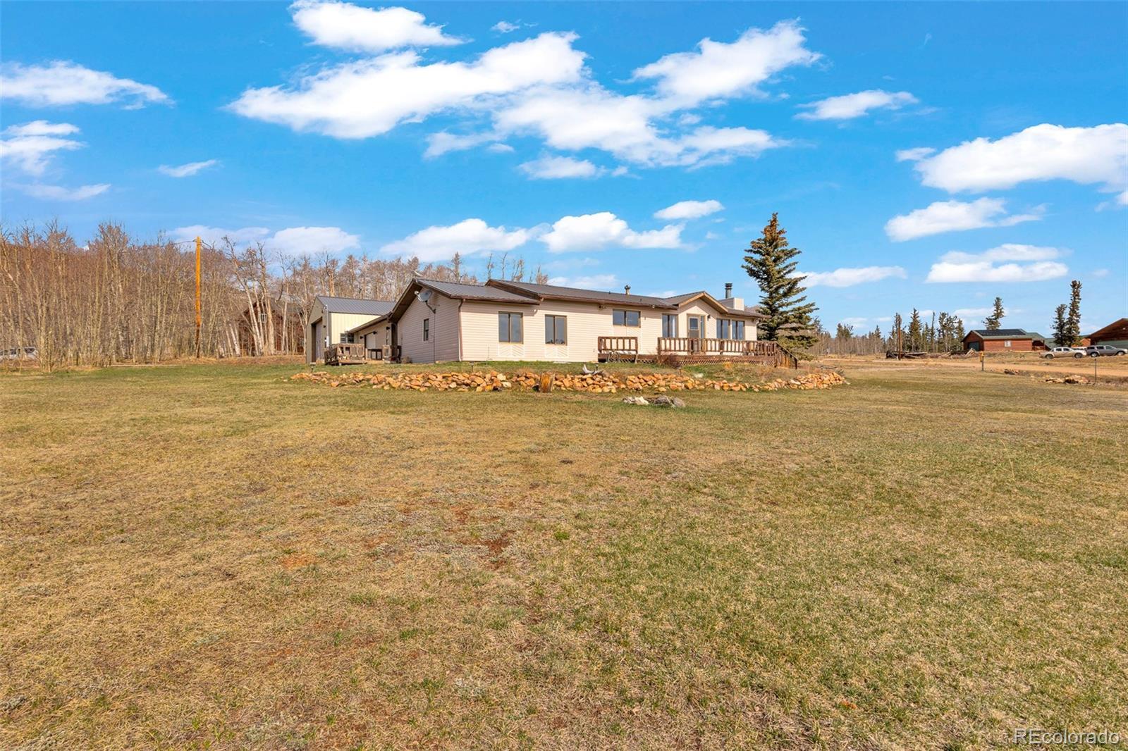 Welcome home to Warm Springs Ranch, this private, gated community is home to private, stocked fishing ponds, a large center swath of dedicated Nature preserve and miles of exclusive access to the National Forest. Founded in the mining days, remnants of old miner cabins dot the ranch and speak of when the property was a mecca for soaking in the "warm springs". Today it's a vibrant community of locals, investment properties and vacation homes. A clubhouse provides year-round events for community connections, tennis courts for pickleball, basketball and summer activities, a trash compactor and picnic area are just a few of the amenities unique to the Ranch. Embraced by National Forest to the West, owners have private access trails running through the neighborhood and many lots abut BLM and Conservation lands. This home is perched on a hillside above the largest pond with views that extend to Pike Peak, Mount Silverheels and endless plains. Home to moose, elk, deer, antelope and an array of wild birds, it's a nature lovers paradise. This ranch-style home is thoughtfully designed with the primary suite at one end and the other bedrooms on the other side of the kitchen/living area, for separation and privacy. A spacious dining room lends itself as a movie/game/theater space, office, home gym or a dining room for gatherings. The kitchen features a bar, laundry steps away and a window overlooking the private pond. Bedrooms are bright with big closets. The spacious living room features a wood fireplace and front deck access to the expansive front yard. A foyer with a freestanding gas woodstove connects to the attached 2 car garage. Just beyond that, the 30'x40' pass-through, heated garage makes the perfect expansive storage area for all your toys as well as a workspace for all your projects and hobbies. Short term rentals are allowed. Make plans to tour this affordable home in the Rocky Mountains.