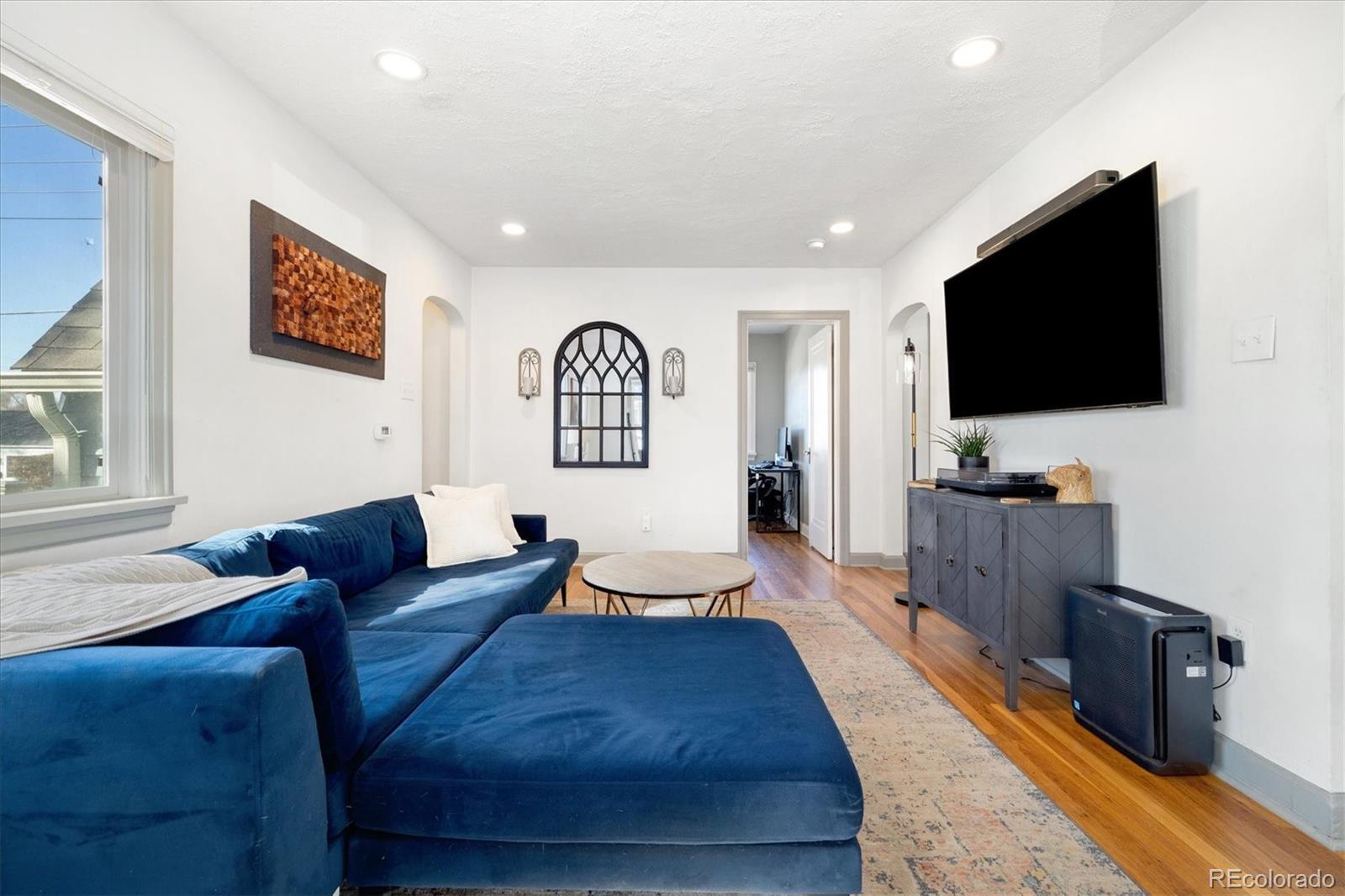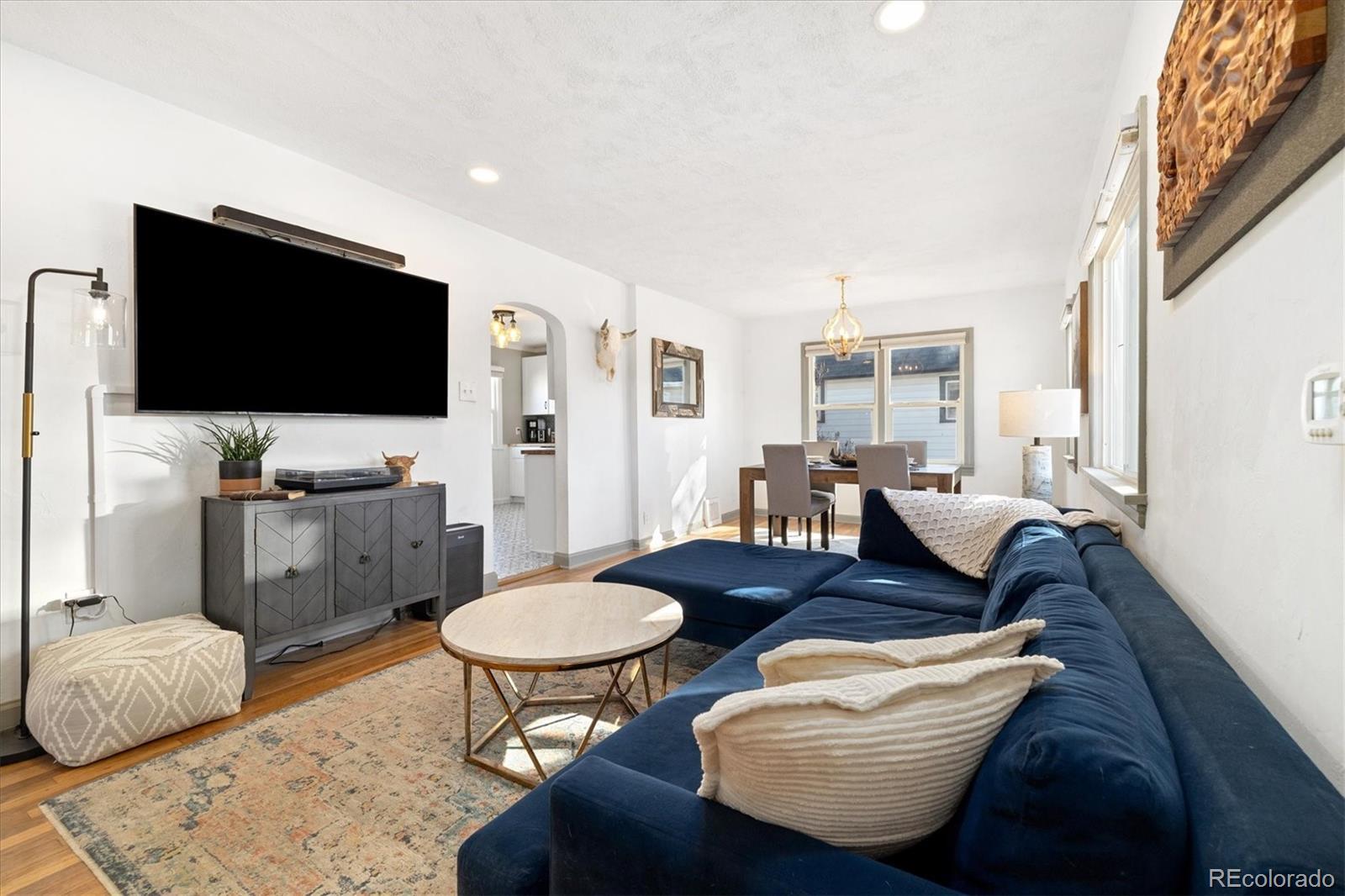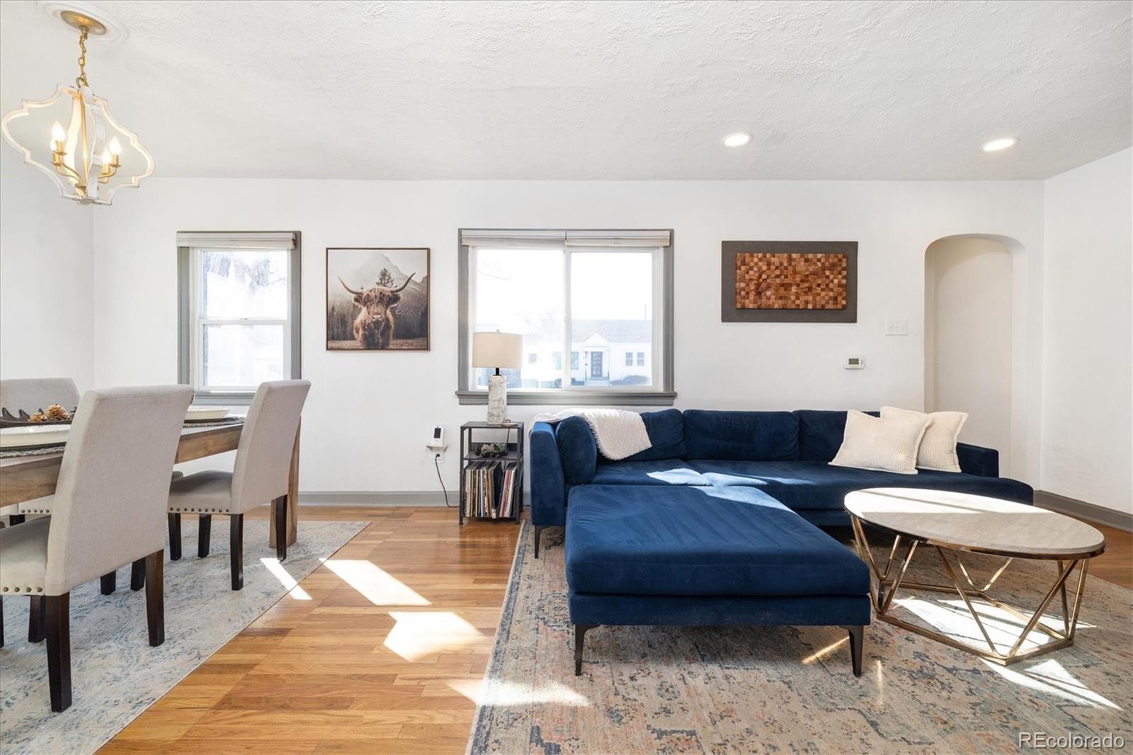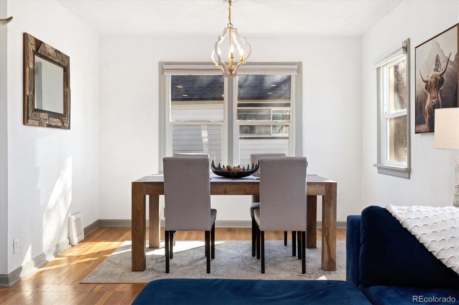 Step into the warmth and character of this beautifully updated 3-bedroom, 1-bath home, perfectly blending vintage charm with modern comfort. Original hardwood floors flow throughout the open-concept living and dining areas, creating a welcoming space for gatherings. The spacious kitchen is a true standout, featuring unique touches that add personality and charm, along with ample storage and prep space for all your culinary needs. The updated bathroom exudes elegance while maintaining the home's classic appeal. All plumbing in the home was replaced in 2022. Enjoy outdoor living in the large backyard—ideal for entertaining, gardening, or relaxing under the stars. With plenty of room to build a larger garage or an ADU, the possibilities are endless! Nestled on a desirable corner lot, this home offers both privacy and convenience, with easy access to local shops, dining, and dog parks. Don’t miss your chance to own this delightful gem only a 15 minute walk from Tennyson. Discover this incredible opportunity to own a home in Denver with an assumable FHA loan—take advantage of a low-interest rate and save thousands compared to today’s rates!
