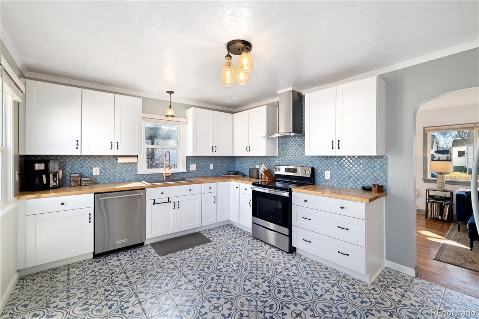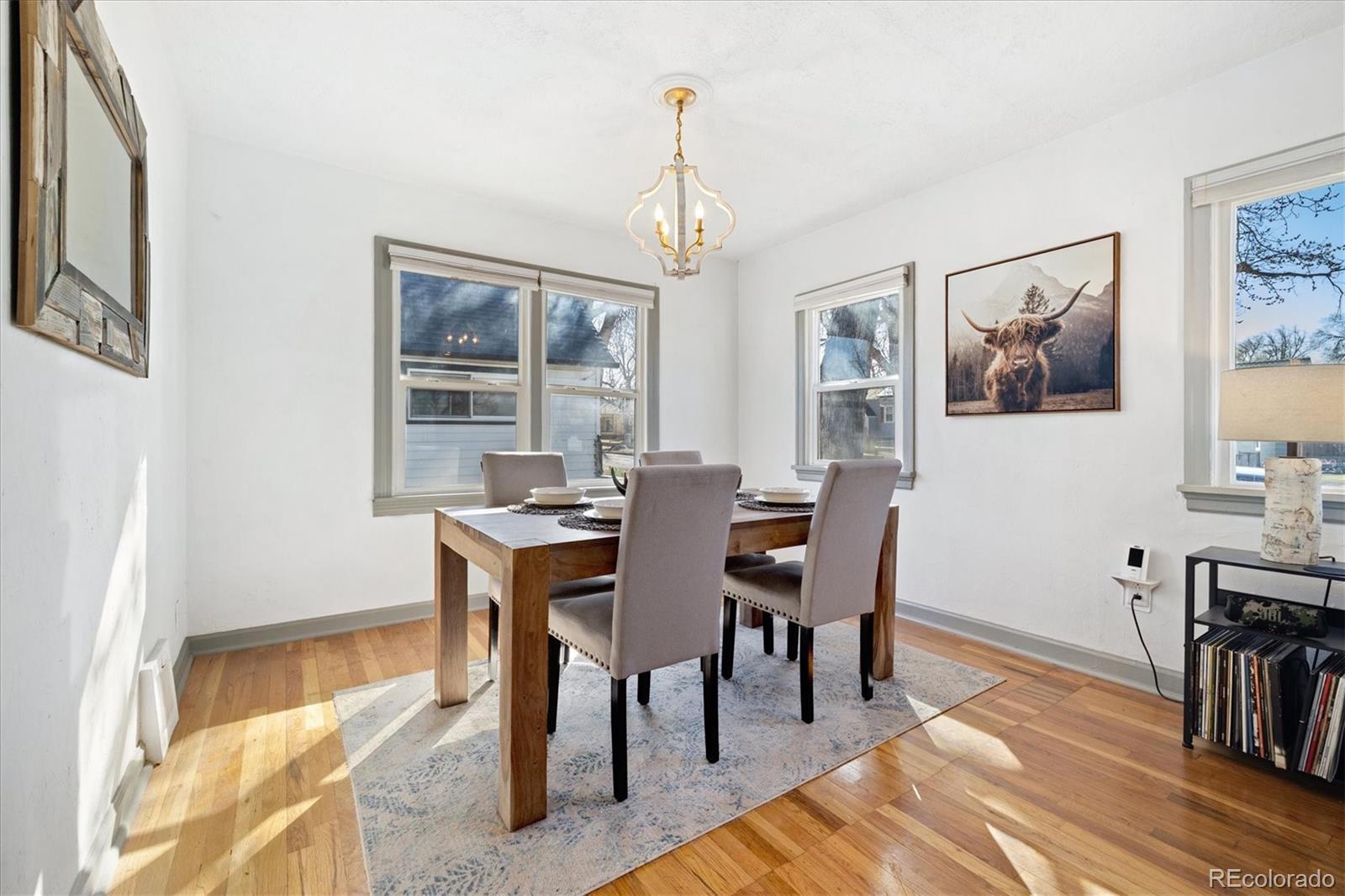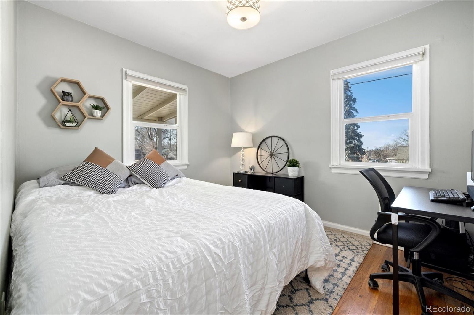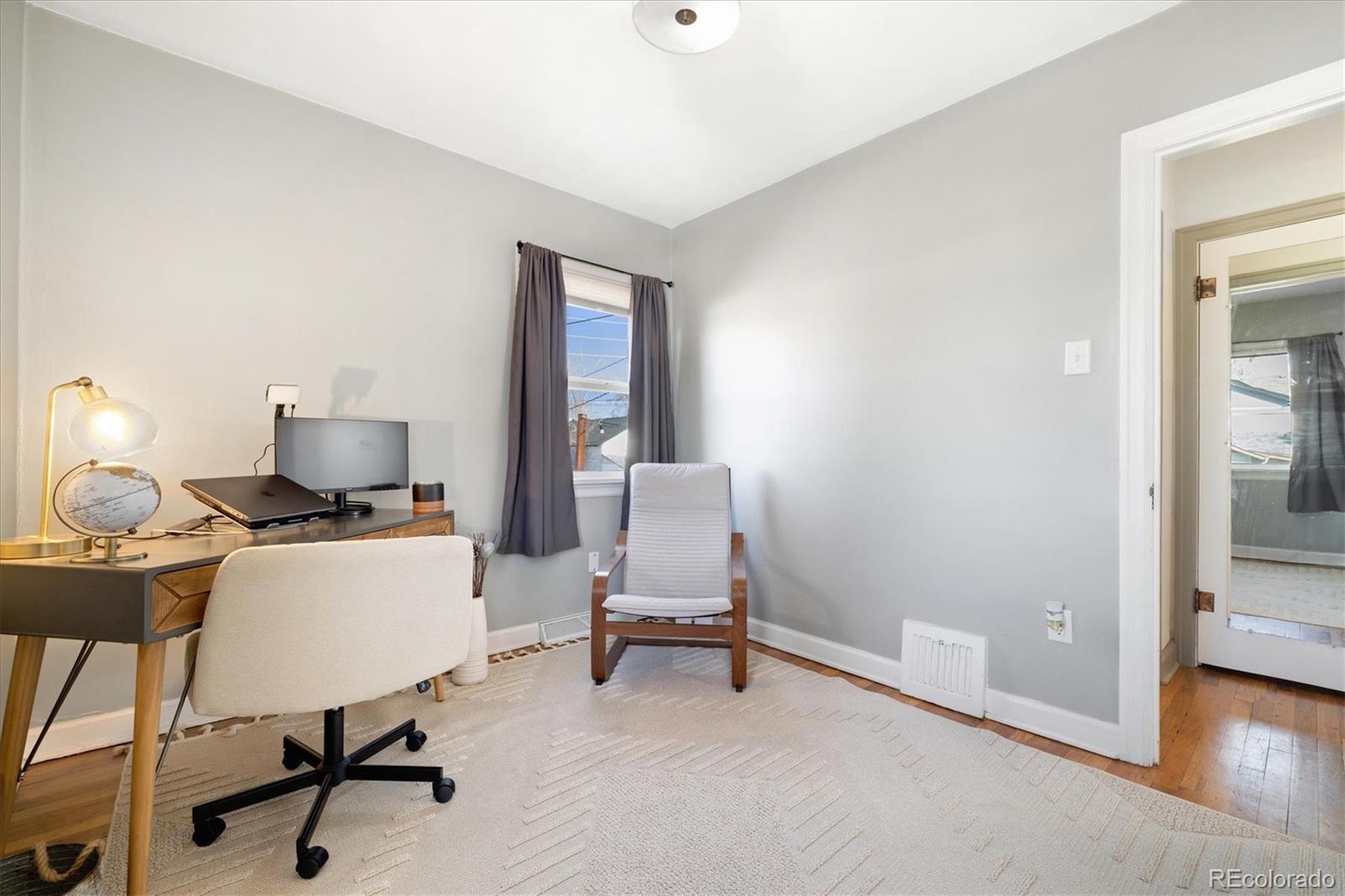 Step into the warmth and character of this beautifully updated 3-bedroom, 1-bath home, perfectly blending vintage charm with modern comfort. Original hardwood floors flow throughout the open-concept living and dining areas, creating a welcoming space for gatherings. The spacious kitchen is a true standout, featuring unique touches that add personality and charm, along with ample storage and prep space for all your culinary needs. The updated bathroom exudes elegance while maintaining the home's classic appeal. All plumbing in the home was replaced in 2022. Enjoy outdoor living in the large backyard—ideal for entertaining, gardening, or relaxing under the stars. With plenty of room to build a larger garage or an ADU, the possibilities are endless! Nestled on a desirable corner lot, this home offers both privacy and convenience, with easy access to local shops, dining, and dog parks. Don’t miss your chance to own this delightful gem only a 15 minute walk from Tennyson. Discover this incredible opportunity to own a home in Denver with an assumable FHA loan—take advantage of a low-interest rate and save thousands compared to today’s rates!