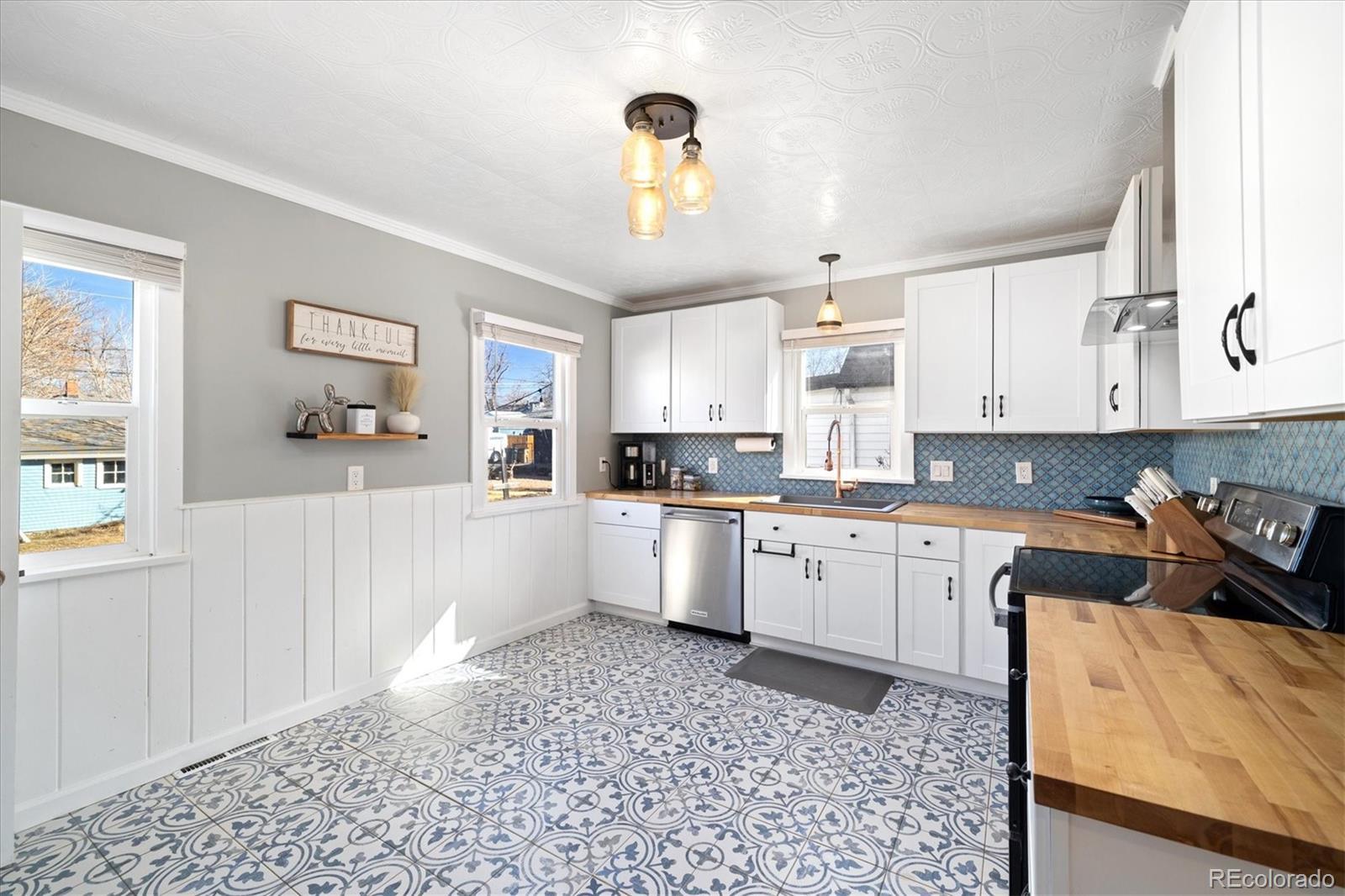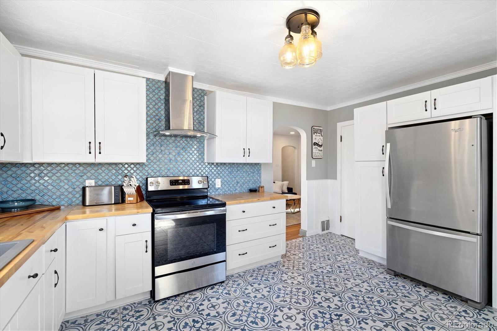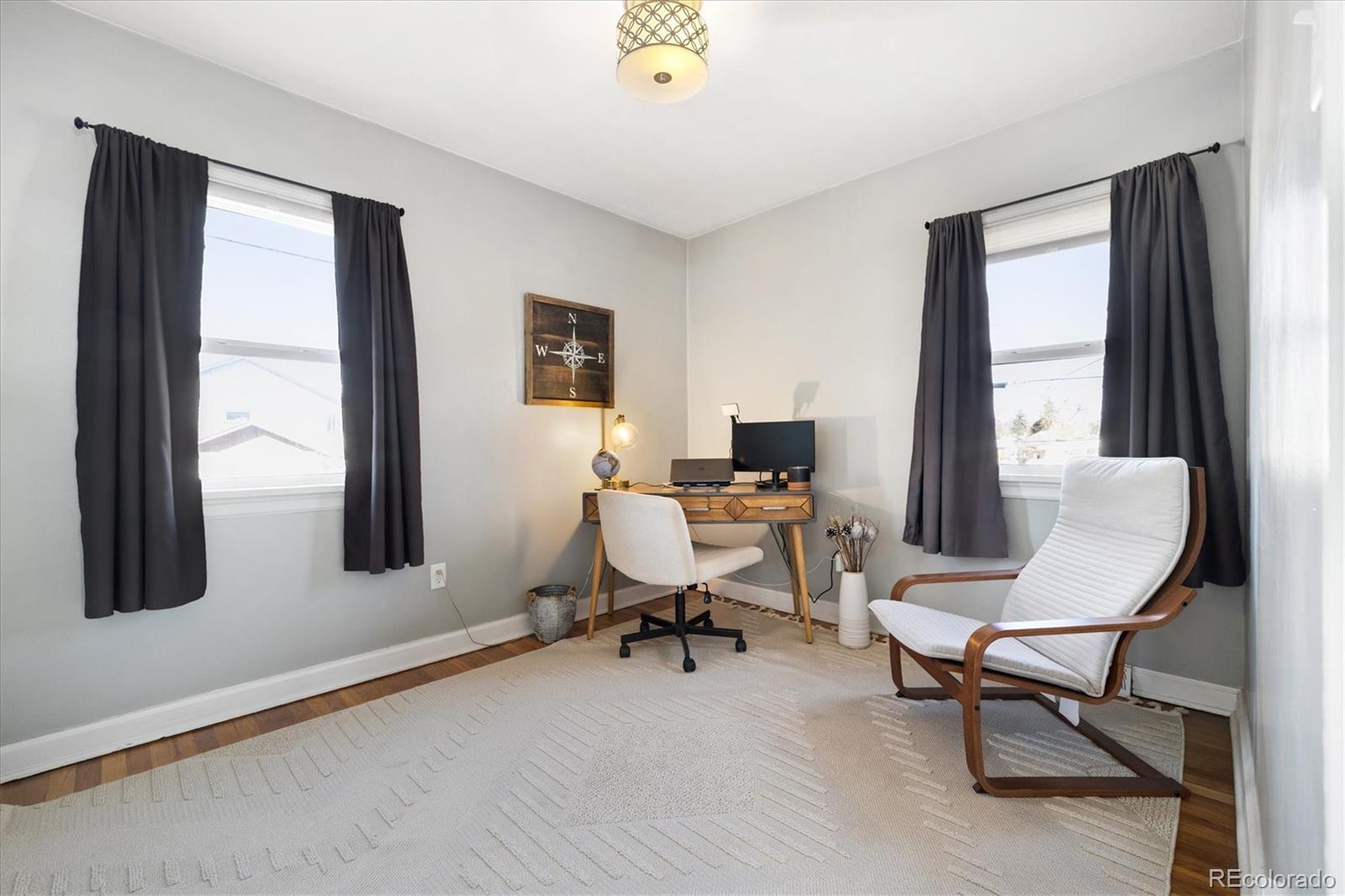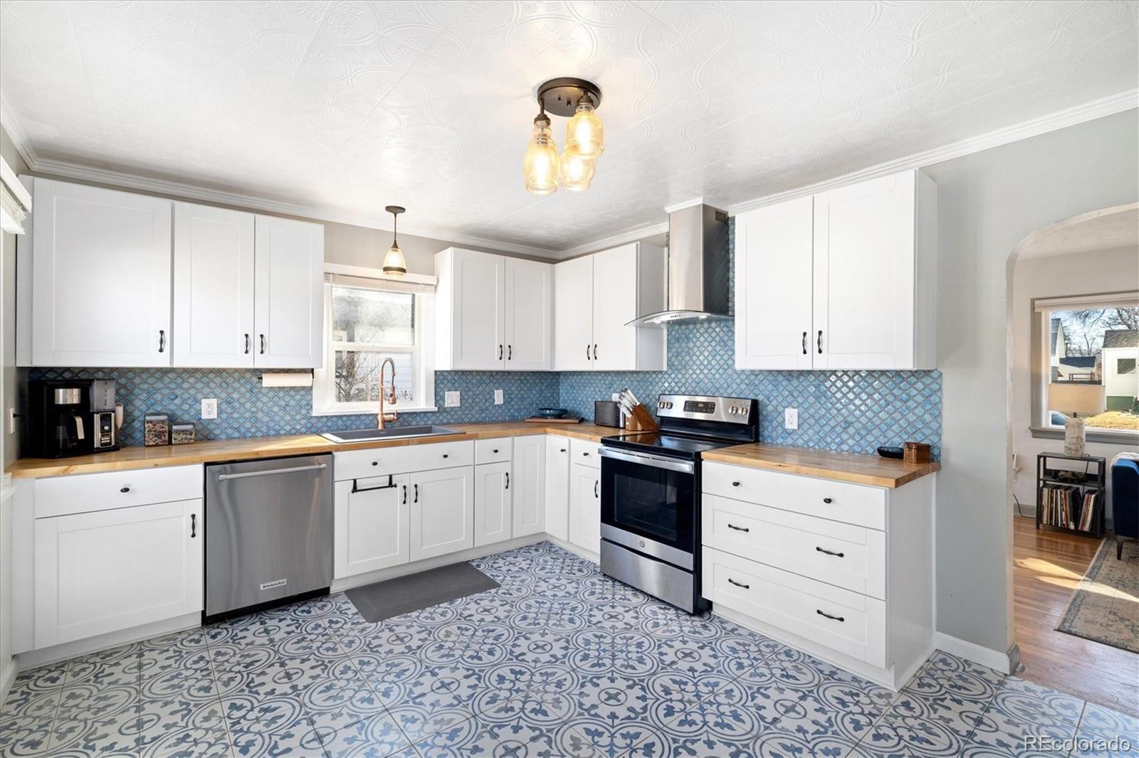 Step into the warmth and character of this beautifully updated 3-bedroom, 1-bath home, perfectly blending vintage charm with modern comfort. Original hardwood floors flow throughout the open-concept living and dining areas, creating a welcoming space for gatherings. The spacious kitchen is a true standout, featuring unique touches that add personality and charm, along with ample storage and prep space for all your culinary needs. The updated bathroom exudes elegance while maintaining the home's classic appeal. All plumbing in the home was replaced in 2022. Enjoy outdoor living in the large backyard—ideal for entertaining, gardening, or relaxing under the stars. With plenty of room to build a larger garage or an ADU, the possibilities are endless! Nestled on a desirable corner lot, this home offers both privacy and convenience, with easy access to local shops, dining, and dog parks. Don’t miss your chance to own this delightful gem only a 15 minute walk from Tennyson. Discover this incredible opportunity to own a home in Denver with an assumable FHA loan—take advantage of a low-interest rate and save thousands compared to today’s rates!