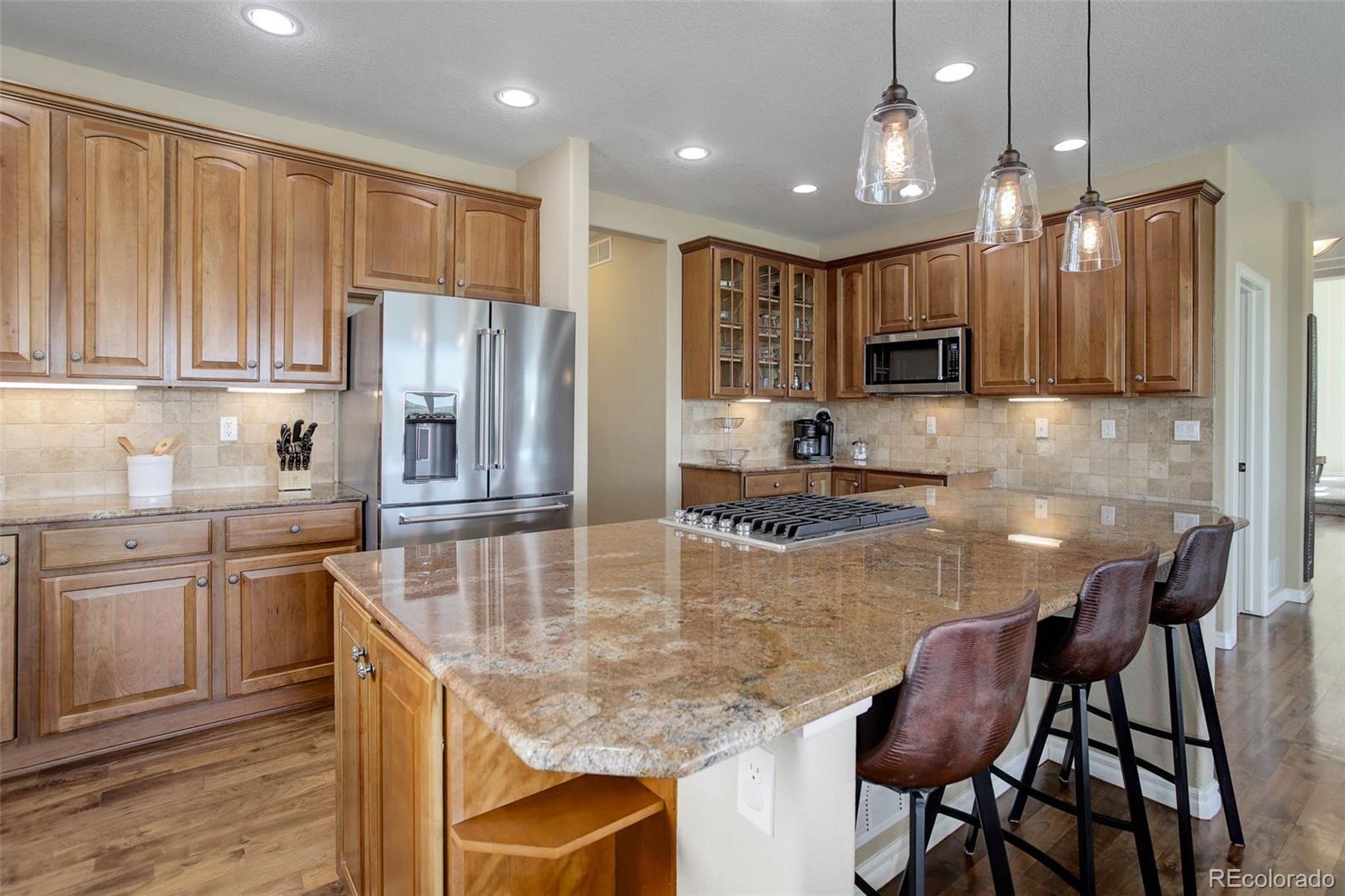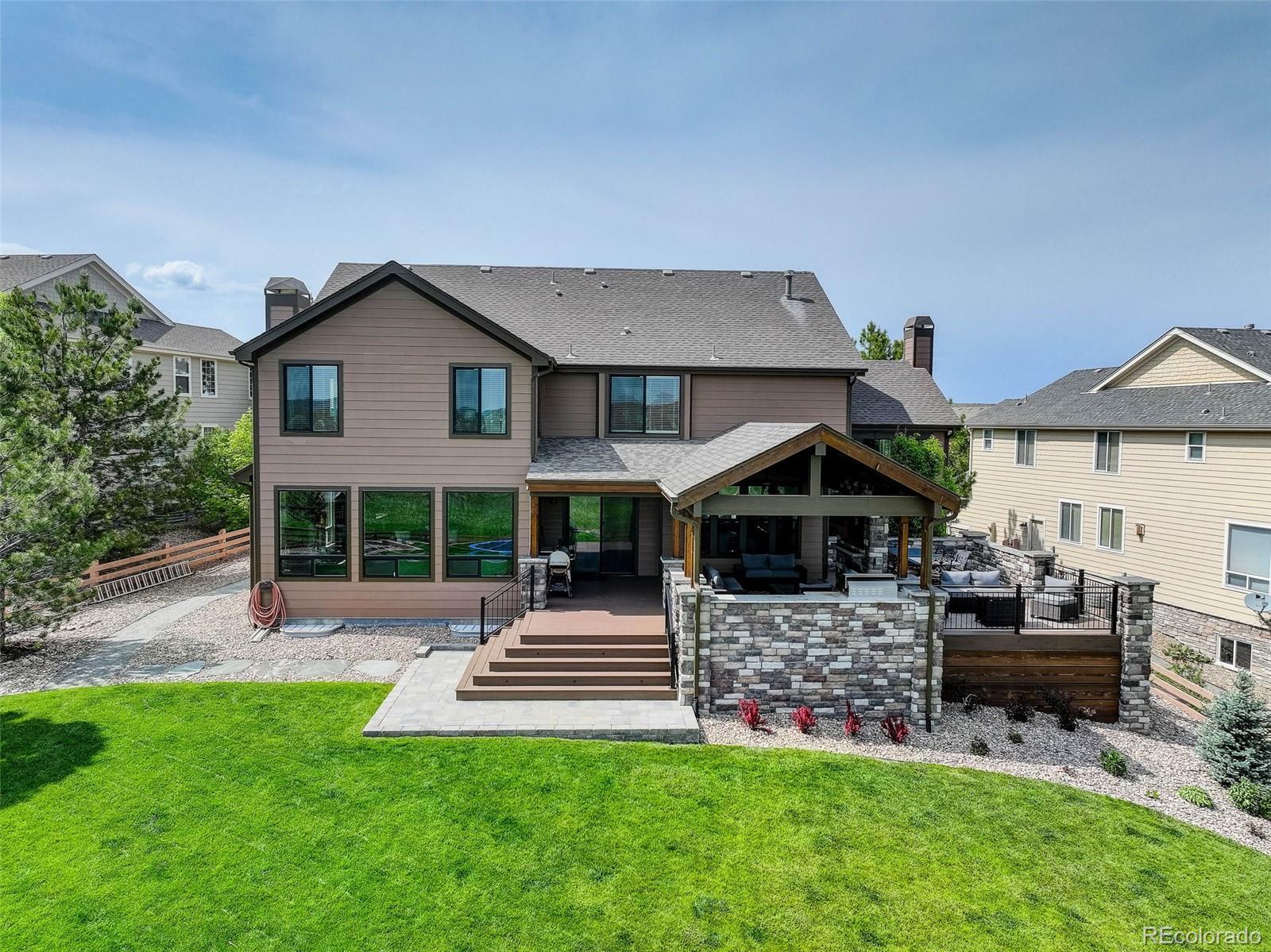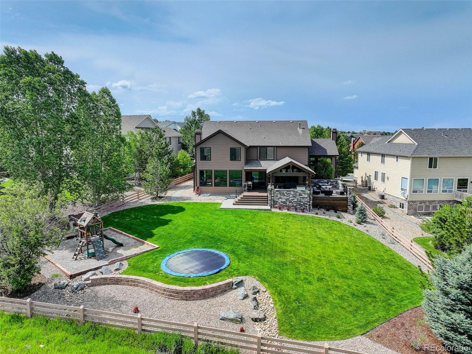 Back on the market through no fault of the seller or home. Take advantage of dropping interest rates! *Stunning Home with Unobstructed Open Space Views* Now offered at $1,345,000, this beautifully updated home in Pradera delivers exceptional value; offering high-end finishes, modern amenities, and an incredible outdoor living space with miles of unobstructed open space views and Cherry Creek Trail. The kitchen was upgraded in October 2024 with all new KitchenAid stainless steel appliances - a chef’s delight. The fully finished basement (completed Fall 2021) adds impressive living space, including two bedrooms and two bathrooms, one of which features a luxurious steam shower with Bluetooth connectivity. The wet bar with hardwood floors is perfect for entertaining, featuring TV hookups for your sports enthusiast and room for a poker table. The family movie/media room boasts a lighted coffered ceiling, an electric fireplace, and offers ample space for a pool table or shuffleboard. The basement also includes all-new windows and carpet for a fresh, modern feel. Throughout the main and upper floors, you'll find all new carpet along with all new energy efficient windows installed this spring, enhancing comfort and efficiency. Additional upgrades include a new hot water heater (Summer 2021). Step outside to an exceptional outdoor living area (completed May 2023), designed for year-round enjoyment. This space includes a built-in grill, TV hookup, outdoor heaters, gas fireplace, ceiling fan, lighting, and hot tub hookups. The professionally landscaped yard is a dream, featuring an inground trampoline, sprinkler system, and playground. The backyard is fully fenced (new paint this summer) and backs up to unobstructed open space, offering privacy, peace, and breathtaking views. Located in one of Parker’s most desirable neighborhoods, this home offers easy access to top-rated schools, parks, shopping, dining, and outdoor recreation. Schedule your showing today!
