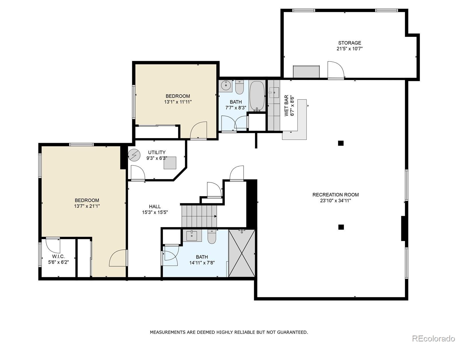 Concrete, Dry Walled, Exterior Access Door, Lighted