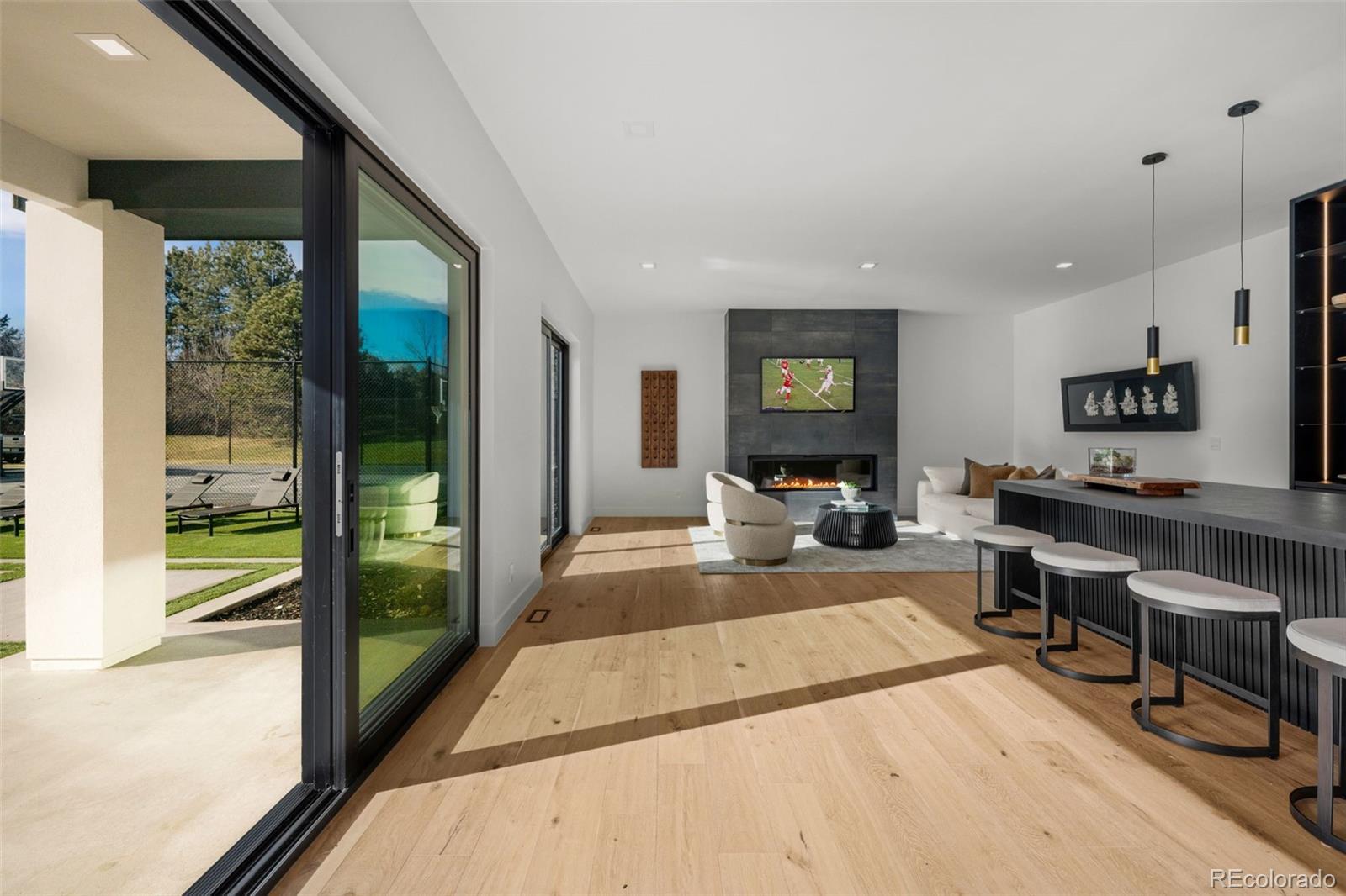 Set behind gates on more than three acres in one of Cherry Hills Village’s most coveted enclaves, this exceptional estate blends timeless architecture with modern sophistication. Completely reimagined through a meticulous studs-up renovation, the home showcases exceptional craftsmanship, quality, and effortless elegance throughout. Eight spacious bedrooms and ten beautifully appointed bathrooms offer refined comfort, while sun-filled living areas framed by walls of glass capture serene views of the lush, fully private grounds. Designed for both grand-scale entertaining and effortless everyday living, the residence strikes a rare balance between sophistication and warmth. A state-of-the-art chef’s kitchen with luxury appliances and exquisite stone surfaces anchors the main level, complemented by a separate butler’s kitchen ideal for seamless entertaining. Natural stone, bespoke finishes, and designer fixtures elevate every space, while a private elevator provides convenient access to all levels. The lower level is dedicated to recreation and relaxation, featuring a full bar, home theater, and golf simulator. Outdoors, a true resort-style oasis awaits with a pool and jacuzzi, sport court, golf practice area, and multiple outdoor living spaces—all completely shielded from neighboring views. A beautifully designed pool house with its own living area, bar, bedroom, and bath completes this one-of-a-kind retreat—offering unmatched privacy, craftsmanship, and resort-level living in the heart of Cherry Hills Village.