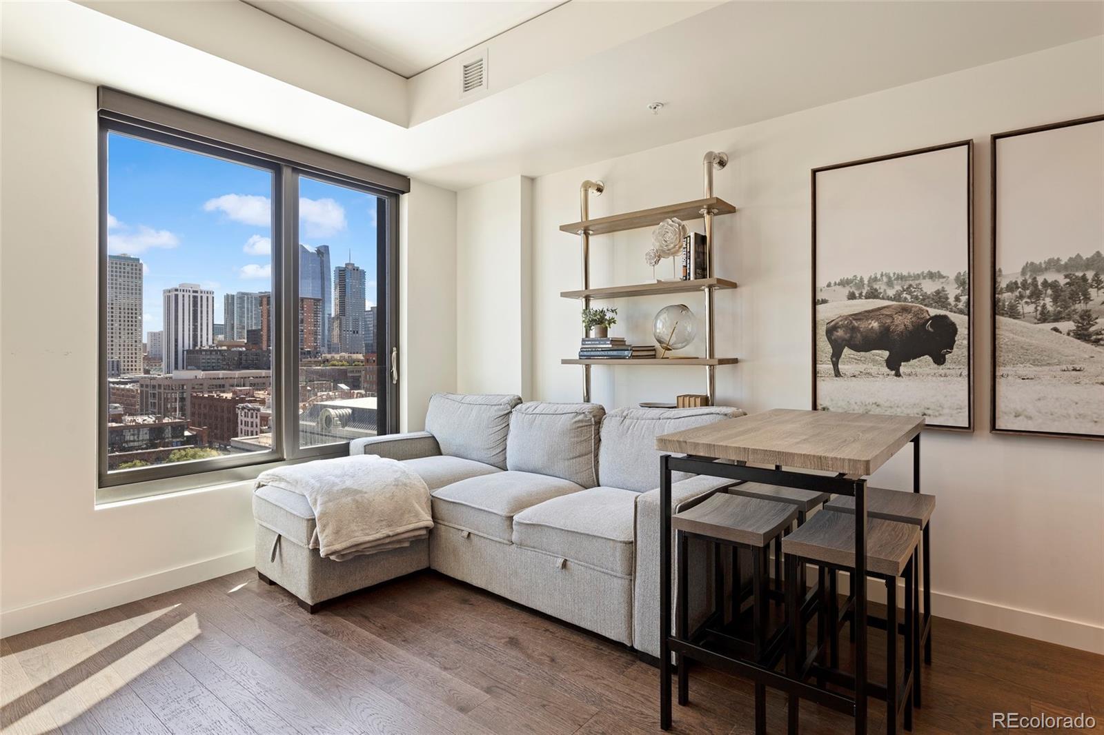 Special pricing available through March 31, 2026. Experience refined urban living at The Coloradan, one of Denver’s most sought-after high-rise residences, ideally situated in the heart of Union Station. This fully furnished home is thoughtfully designed and filled with natural light, offering expansive city views and automated window treatments for effortless daily living. The residence features a contemporary kitchen equipped with complete dishware, stainless steel appliances, a gas range, solid maple soft-close cabinetry, and quartz countertops—both functional and elegantly appointed. The spacious bedroom is furnished with a queen-size bed, fresh linens, and custom closets, while an in-unit high-efficiency washer and dryer add everyday convenience. The bathroom is finished with timeless, high-quality materials that create a calm, spa-like atmosphere. Residents enjoy an exceptional suite of amenities, including a 24-hour staffed front desk, a state-of-the-art fitness center, and an 18th-floor amenity level featuring an outdoor pool, hot tub, fire pit lounge, chef’s kitchen, and an elegant club room designed for entertaining. On the ground level, enjoy immediate access to Kaffe Are, Sweetgreen, Honey Tupelo, and additional curated retail and dining options. Located moments from Union Station, Whole Foods, light rail access, Commons Park, and Denver’s premier dining and cultural destinations, this residence offers unmatched walkability and connectivity. Utilities—including water, trash, gas, electricity, and internet—are included. Available for long-term or month-to-month lease options.