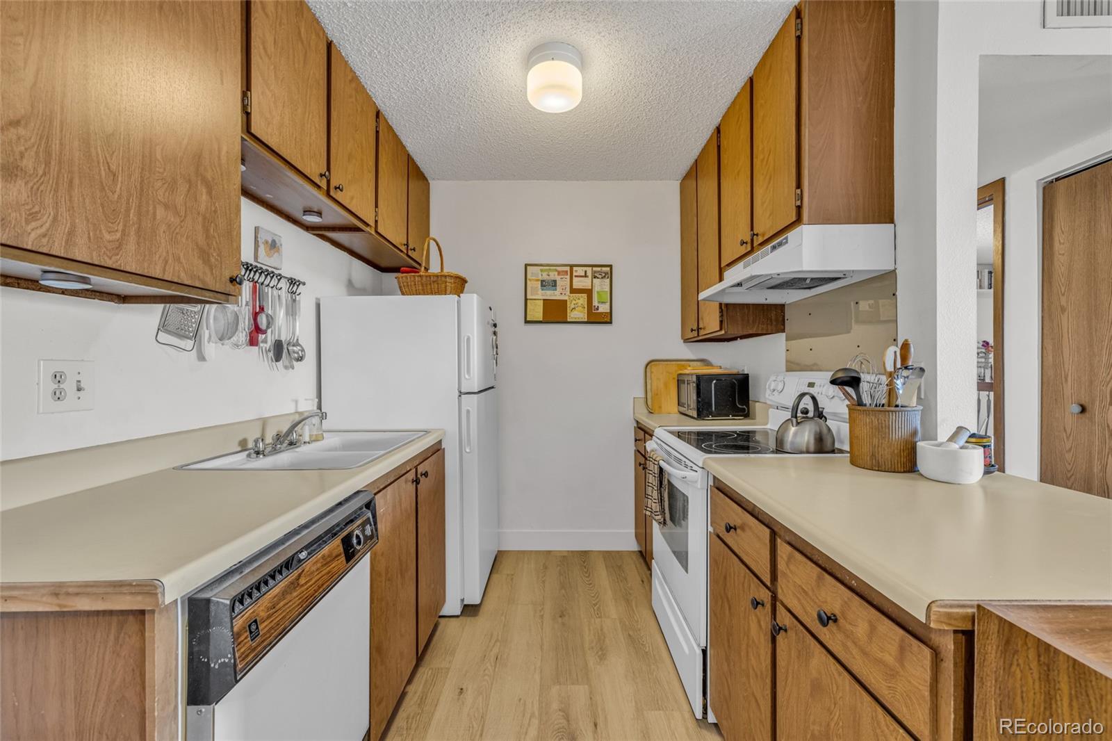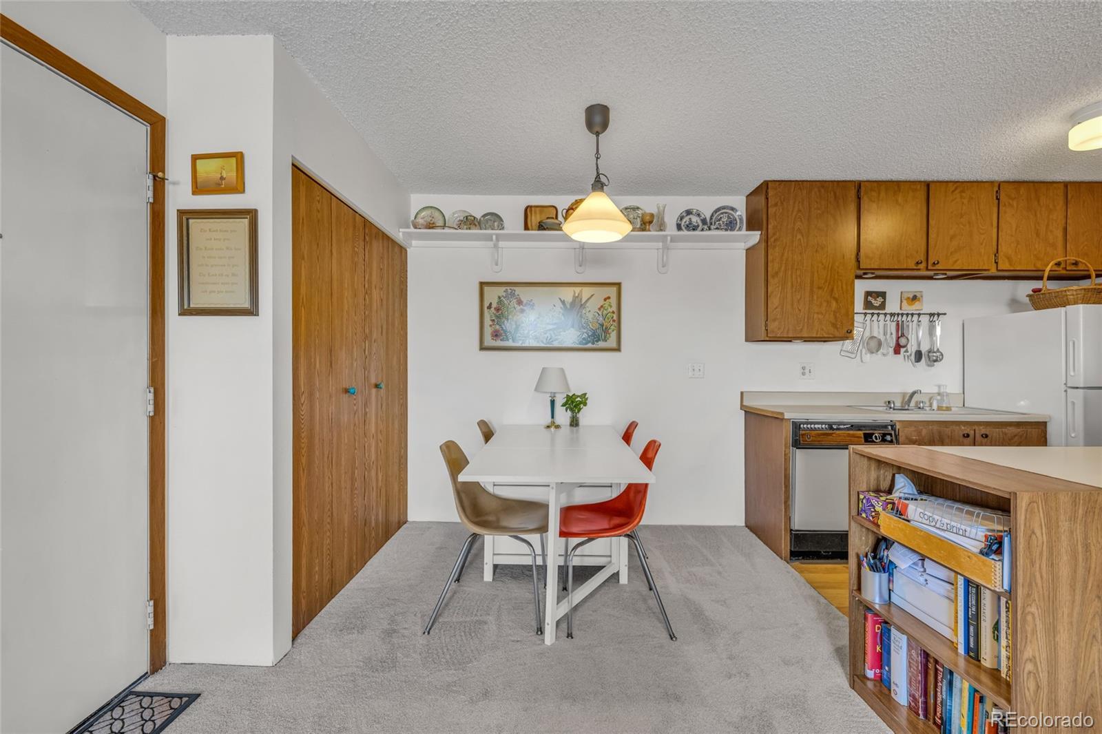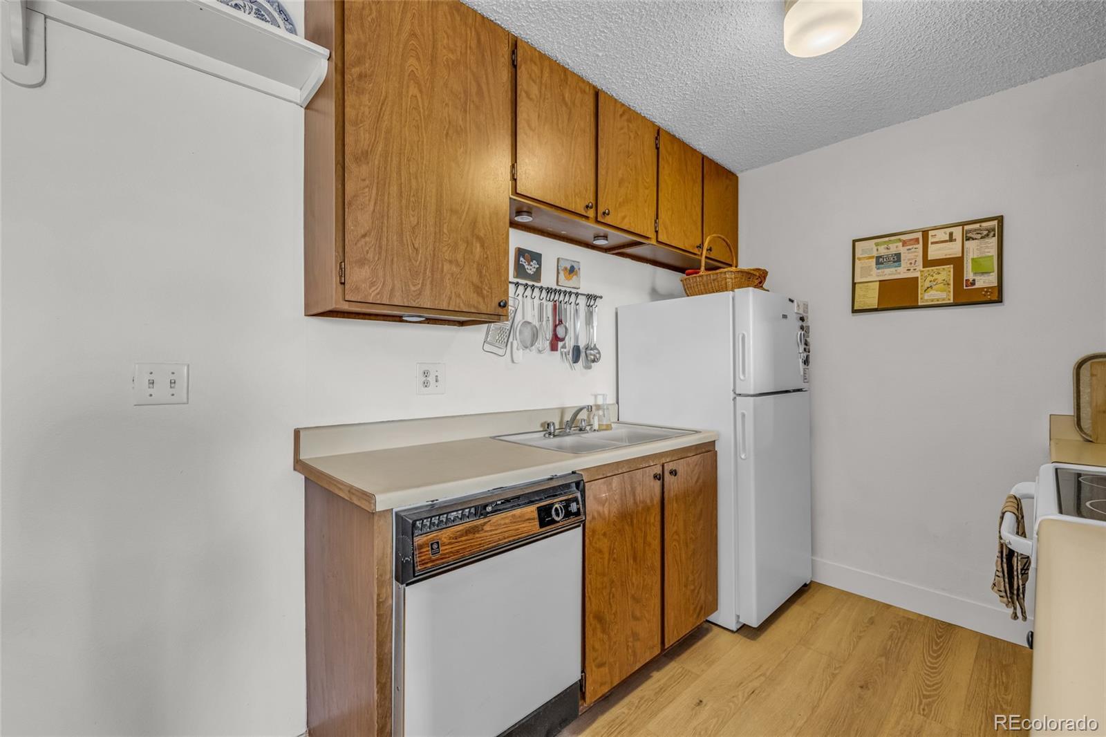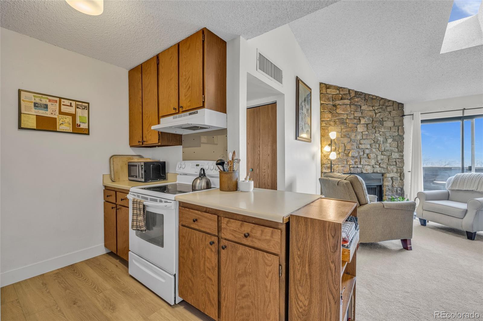 Welcome home to this light-filled 1-bedroom, 1-bath condo at Dartmouth Condominiums — an ideal retreat for first-time buyers, downsizers, or anyone craving low-maintenance living with comfort and style. Step inside to brand-new carpet and luxury vinyl plank flooring throughout, creating a fresh, modern feel. Vaulted ceilings and a skylight elevate the living space, while east-facing windows flood the home with beautiful morning light — perfect for both early risers and thriving houseplants. Cozy up by the stone, wood-burning fireplace on cool Colorado evenings. Enjoy everyday convenience with an in-unit stackable washer and dryer, a newer HVAC system (just 6 years old), and a refrigerator and water heater that are only 2 years old. The private balcony offers additional storage space for seasonal items and outdoor gear, plus a perfect spot to enjoy your morning coffee. This home includes one reserved parking space with access to an additional space when needed. During warmer months, unwind by the community pool and enjoy well-maintained grounds — all covered by the HOA, along with water, sewer, trash, and exterior maintenance. Location is everything, and this one delivers. You’re minutes from Hampden Avenue, Santa Fe Boulevard, downtown Englewood, and the Southwest Denver YMCA. River Point shopping center — featuring Costco, a Regal Theater, and a variety of dining and retail options — is just around the corner. Stylish, convenient, and move-in ready, this condo offers a fantastic opportunity to own in a vibrant and accessible Denver neighborhood. Don’t miss your chance to make it yours.