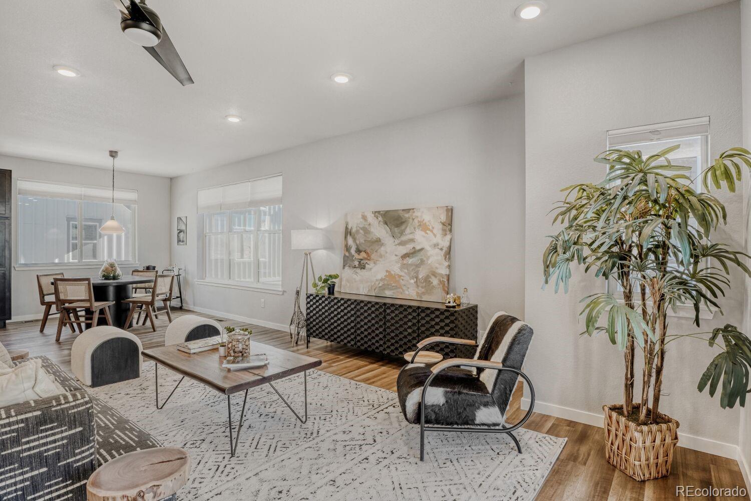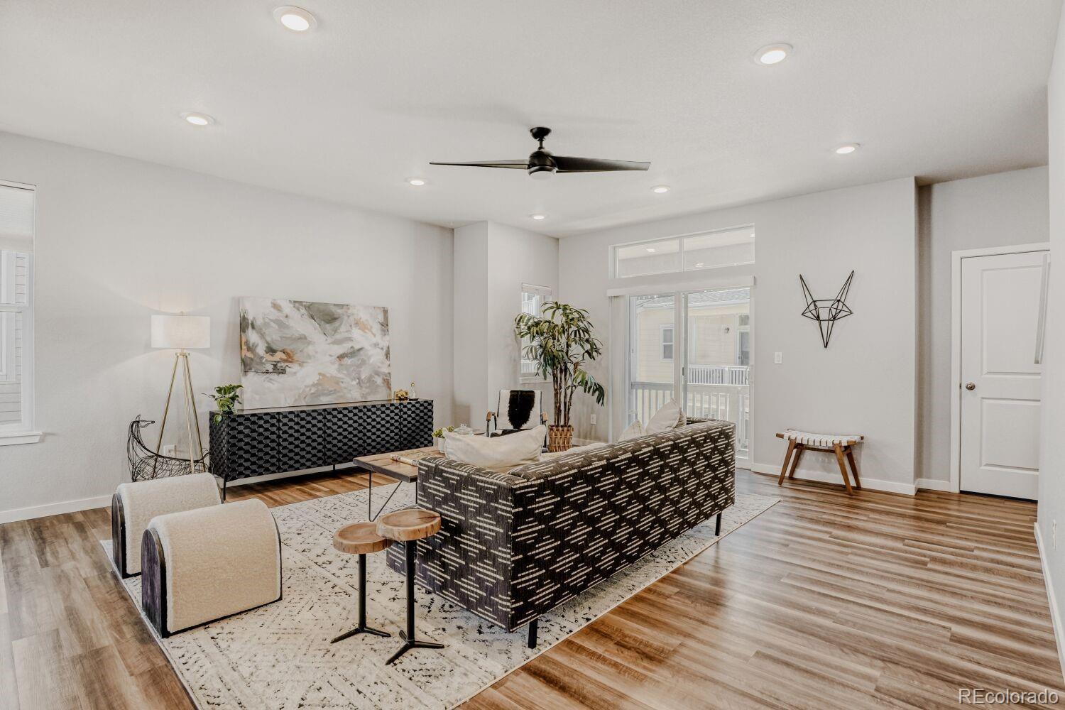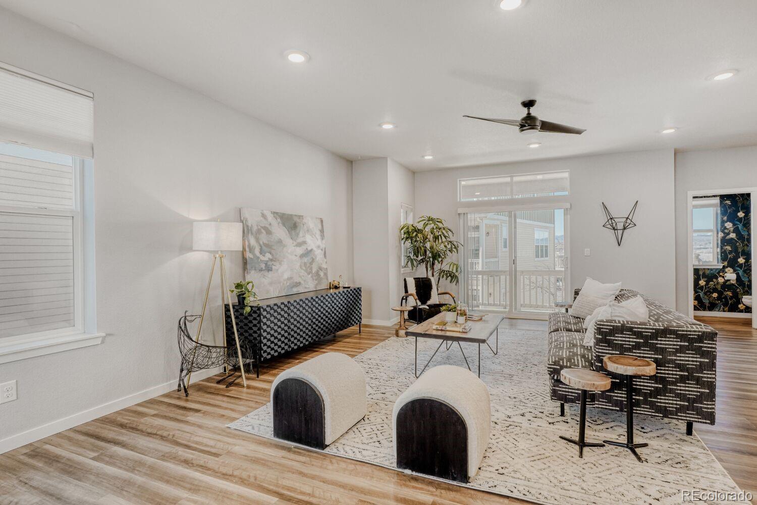 Welcome to this modern, light-filled townhouse in the heart of downtown Englewood, where sleek design meets everyday convenience. This 4-bedroom, 3-bathroom home features an open, airy layout with contemporary fixtures throughout, creating a clean, modern feel that’s both stylish and functional. The updated kitchen is a standout, centered around a huge island that’s perfect for gatherings, cooking, and casual dining. Enjoy mountain views from multiple vantage points, plus outdoor living with a welcoming front porch and a second-floor balcony, perfect for relaxing or hosting friends. Three bedrooms and the laundry closet are located on the top level, while custom closets add smart, functional storage throughout. The main-floor walk-out bedroom or office offers flexibility for remote work, a home gym, or a guest bedroom. With low HOA dues of just $70/month, this home delivers exceptional value in a prime location—just minutes from the Light Rail, the Gothic Theatre, shopping and dining galore, and an easy commute to downtown Denver or the Denver Tech Center. Modern, walkable, and perfectly situated, this spacious townhouse checks every box.