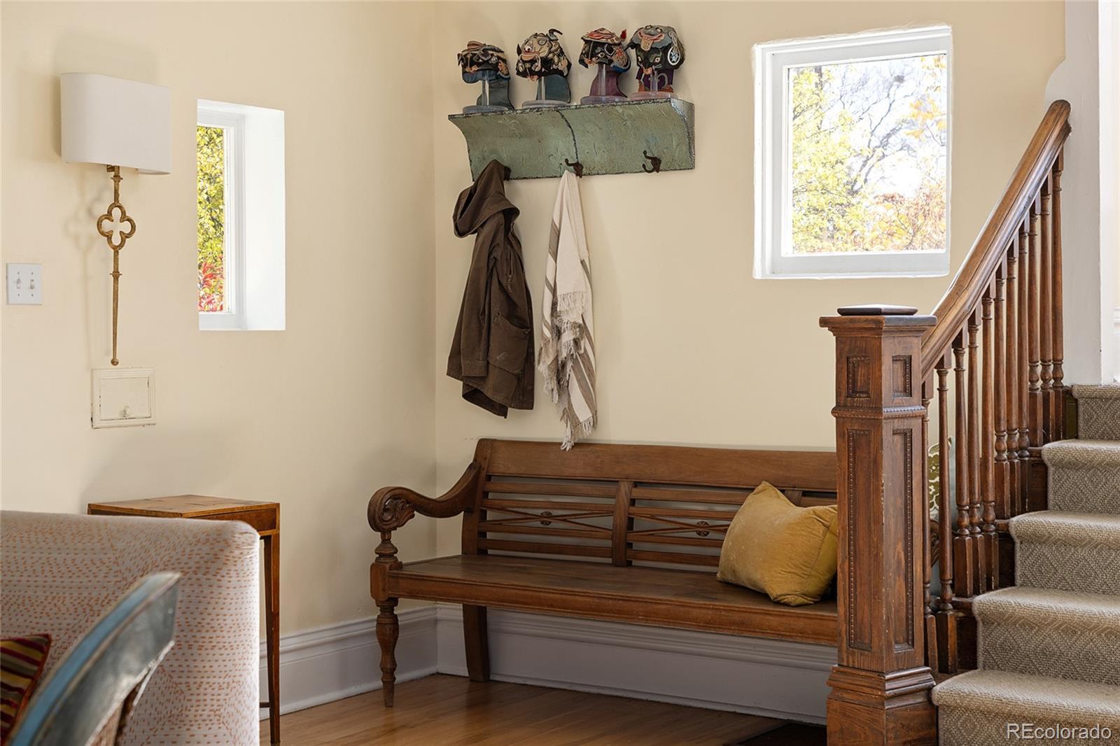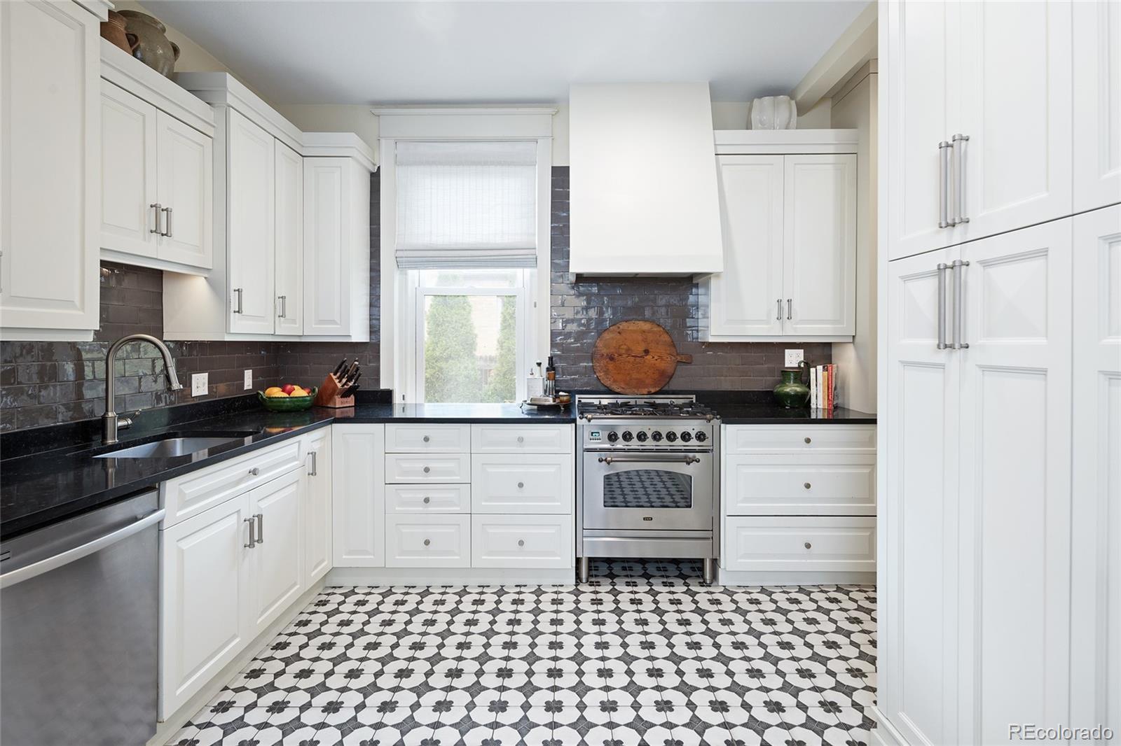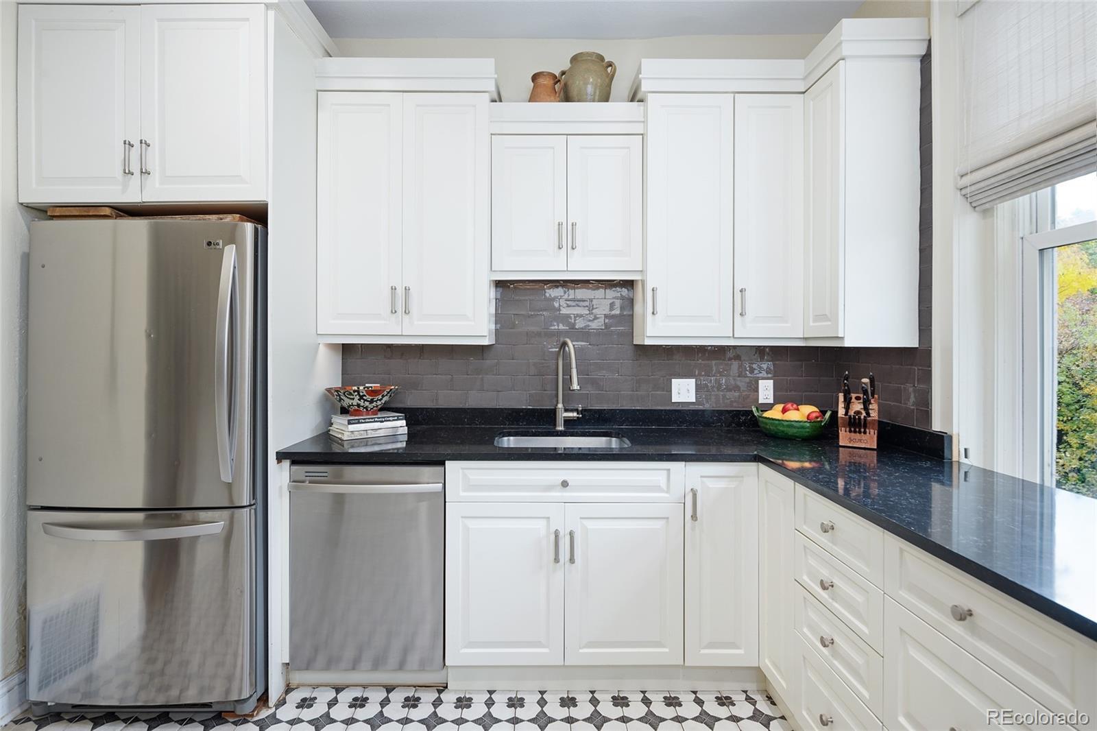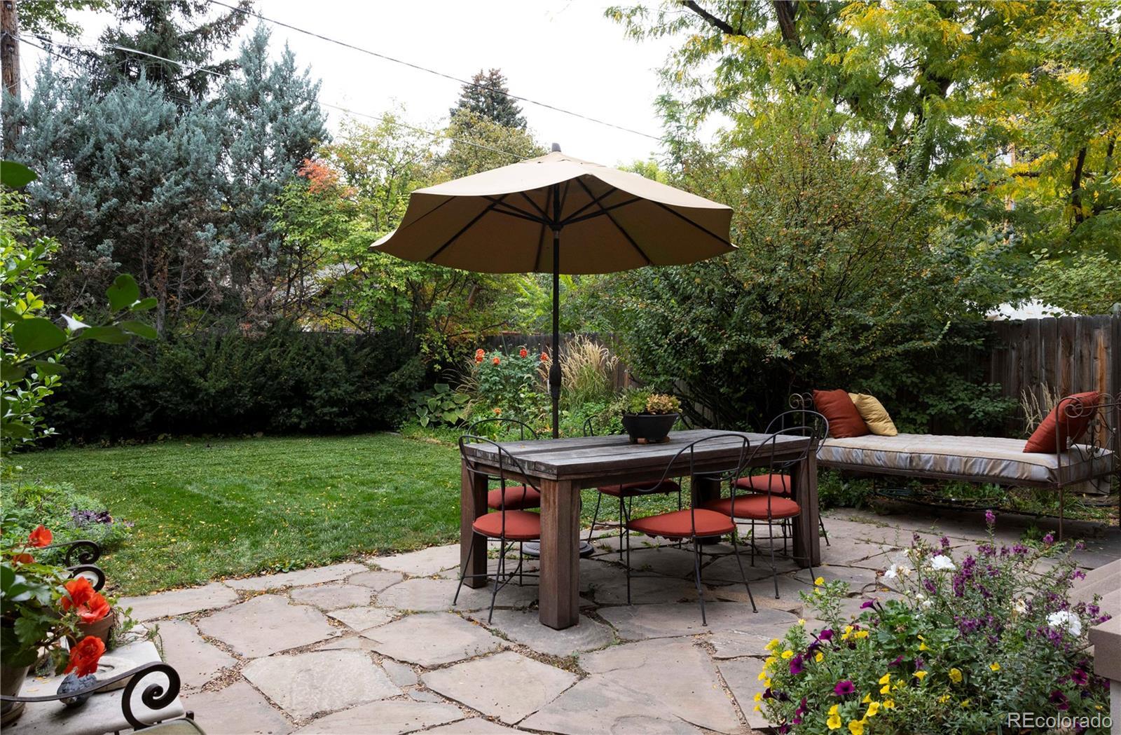 Exuding timeless elegance and modern sophistication, this beautifully restored 1910 Denver Square sits gracefully along a tree-lined street in the heart of Park Hill. Sunlight fills the inviting living room, where a classic wood-burning fireplace is flanked by custom built-ins — the perfect blend of charm and comfort. The elegant dining room flows seamlessly into a cozy family room and a recently renovated chef's kitchen. Designed for both beauty and function, the kitchen features exquisite tile flooring, stainless steel appliances, granite countertops, a new range, wine refrigerator, and appliance garage — all complemented by abundant storage. French doors open to a secluded backyard oasis with a newly built patio, perfect for quiet mornings or evening entertaining. Fully fenced backyard with doggie door. A designer powder room with striking wallpaper adds a touch of sophistication to the main level. Upstairs, a graceful staircase leads to four bedrooms and two baths. The primary suite is a serene retreat, complete with vaulted ceilings, a gas fireplace, and a spa-inspired bath showcasing designer wallpaper, a stunning vanity, travertine tile shower, and a walk-in closet. A versatile third-floor bedroom or flex space — ideal for a guest bedroom, playroom, or home office — offers a delightful surprise. The home also includes a partially finished basement with ample storage, a new roof (2024), and a new driveway. Featured in Colorado Homes & Lifestyles Magazine, this Park Hill treasure perfectly balances classic architecture with modern luxury.