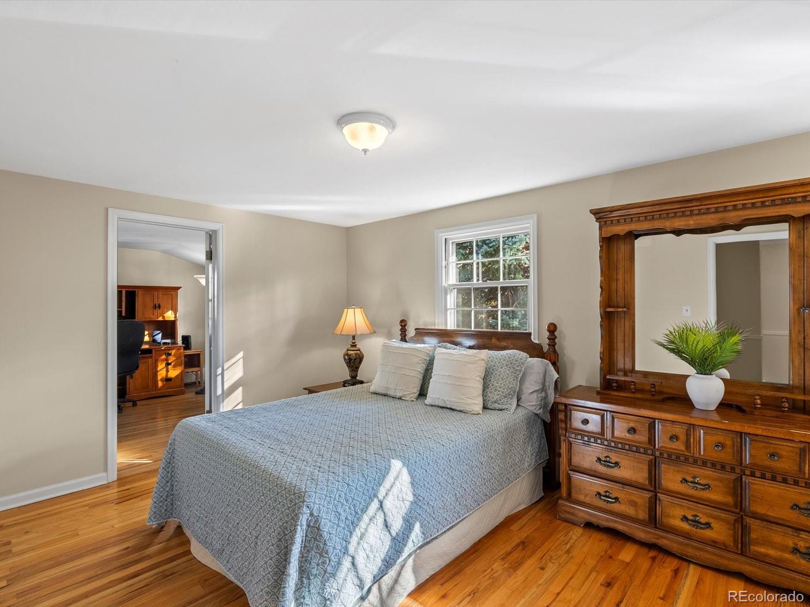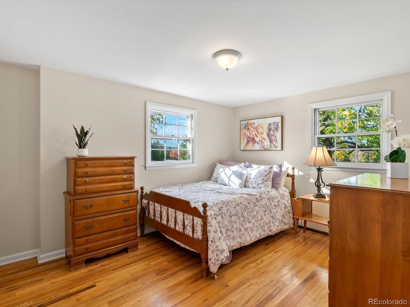 After 40 years in the same loving hands, this Pinehurst Estates beauty is ready for its next chapter. Set on a park-like, quarter acre lot, backing to Fort Logan National Cemetery, the backyard delivers rare serenity and privacy with mature trees, lush landscaping, and generous space to relax or entertain. Inside, classic character meets thoughtful updates. The main level features formal living and dining rooms plus a cozy family room with a wood-burning fireplace. Original hardwoods grace the main level and upstairs, complementing the updated kitchen and baths. The expansive primary suite is a true retreat with an en-suite bath and a versatile adjoining room—perfect for a nursery, office, sitting room, or dream walk-in closet—along with a fireplace for added warmth and ambiance. Three spacious secondary bedrooms and full hallway bath complete the upper level. The finished basement offers excellent flexibility with a 5th bedroom and en-suite bath, ideal for guests or multi-generational living, plus rec room, laundry, and storage. Fresh carpet and paint, refinished hardwoods, and pristine landscaping make this home move-in ready. With timeless style, room to grow, and a setting that feels like your own private park, this is a home where memories are made and generations thrive.