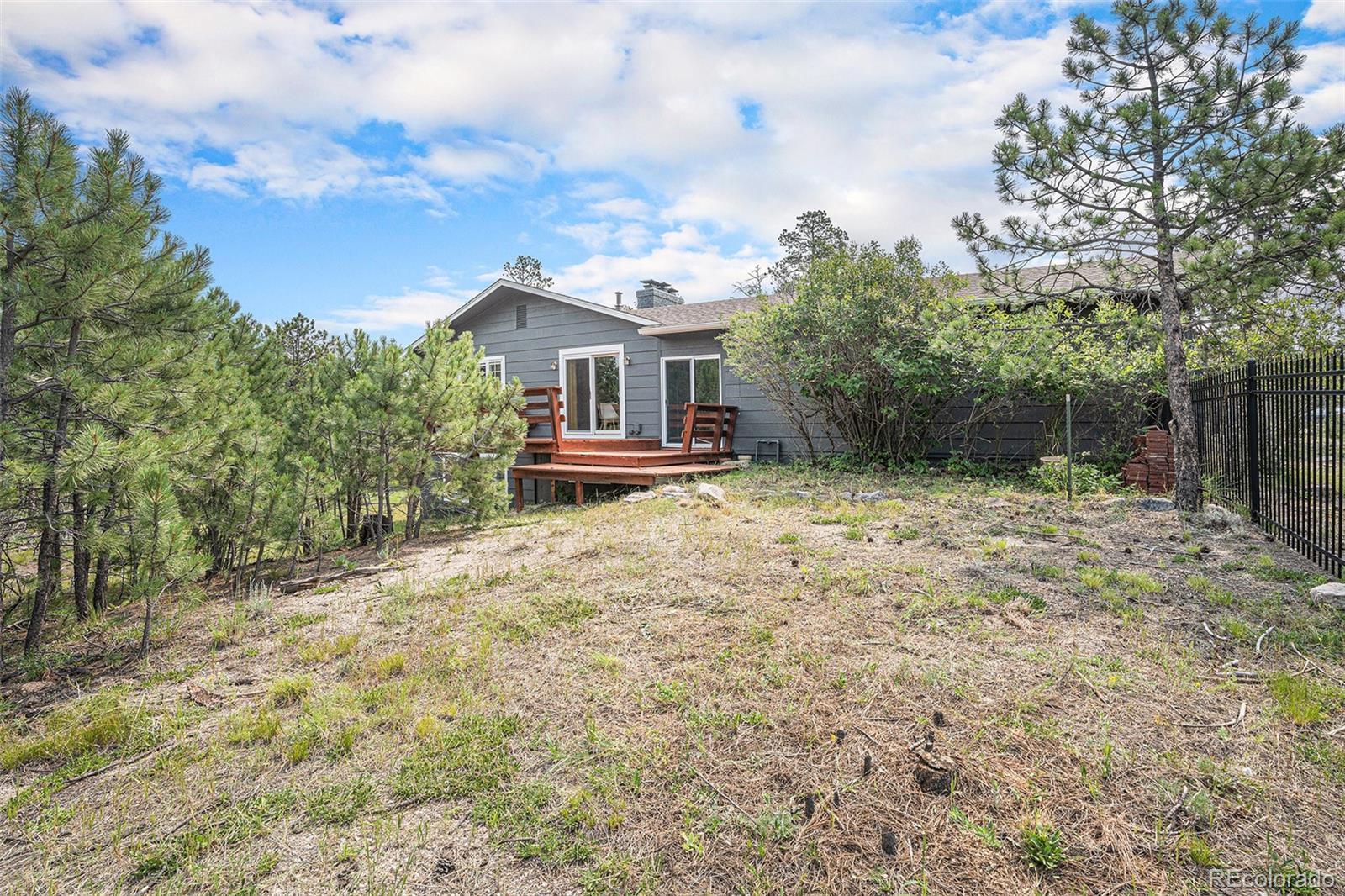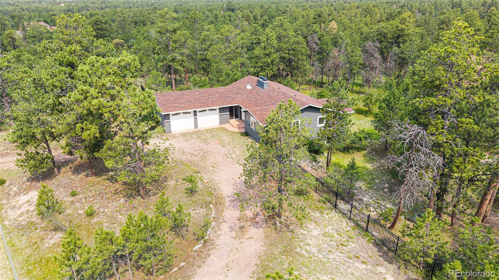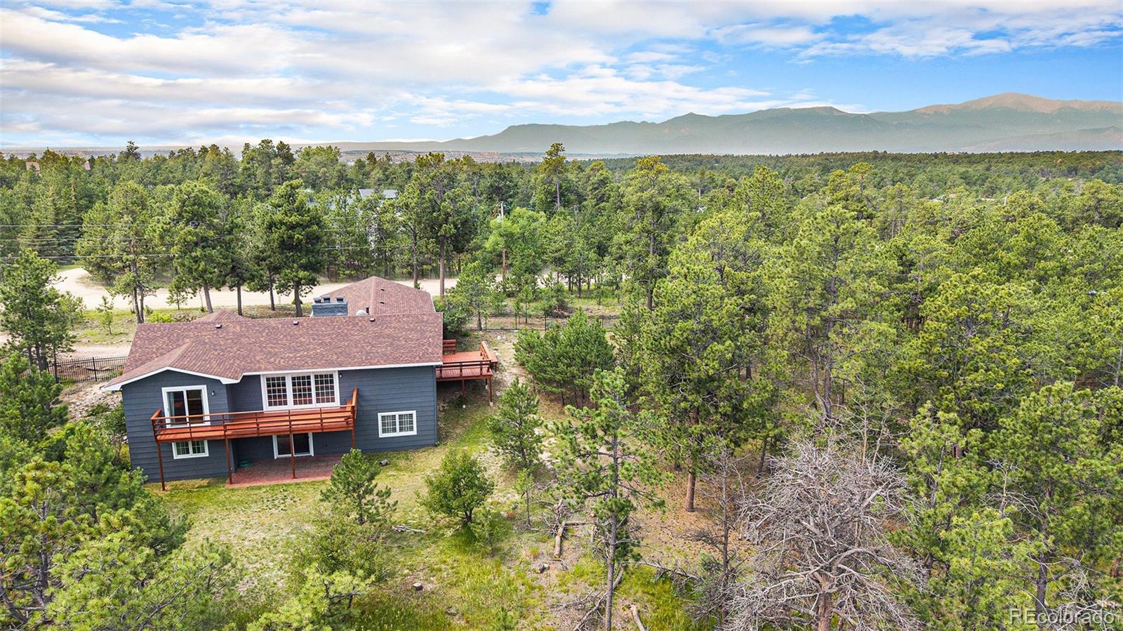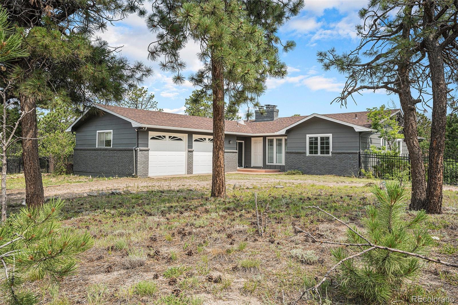 Location, location, location! Pikes Peak views and close in D20! Zoned for horses! Walkout rancher! Great opportunity on a beautifully treed, fully fenced lot! New roof and exterior paint! This house has amazing potential to personalize with your custom updates, and potentially open up the kitchen to make a fantastic great room! This is the handyman’s dream – put in some sweat equity to update and customize to your liking and tap into the full value of this property. This home has solid bones and will have fantastic potential equity even after the cost of some updates! Gorgeous Pike Peak views from kitchen and deck! Walkout basement. Real oak hardwood floors on the main floor that will look brand new with a little refurbishing with the stain color of your choosing. Walkout to the huge wood deck from the master bedroom, living room and kitchen. 2 beautiful brick fireplaces! Large master bedroom on the main, with dressing area, vanity, and walk-in closet. Additional bedroom on the main and 3 bedrooms and large family room in the basement! Create a fun indoor/outdoor space in the breezeway, or turn it into a sunroom. Oversized 2 car garage. Large homes on acreage surround. Enjoy the privacy, nature, and wildlife, all while being minutes away from stores, award winning schools, and amenities! This home is ready for you to move in and customize!