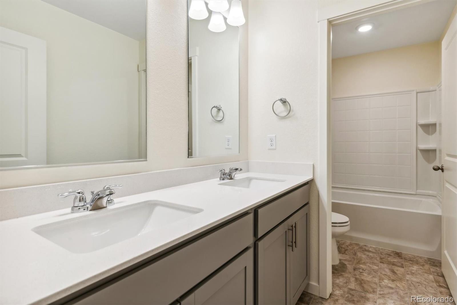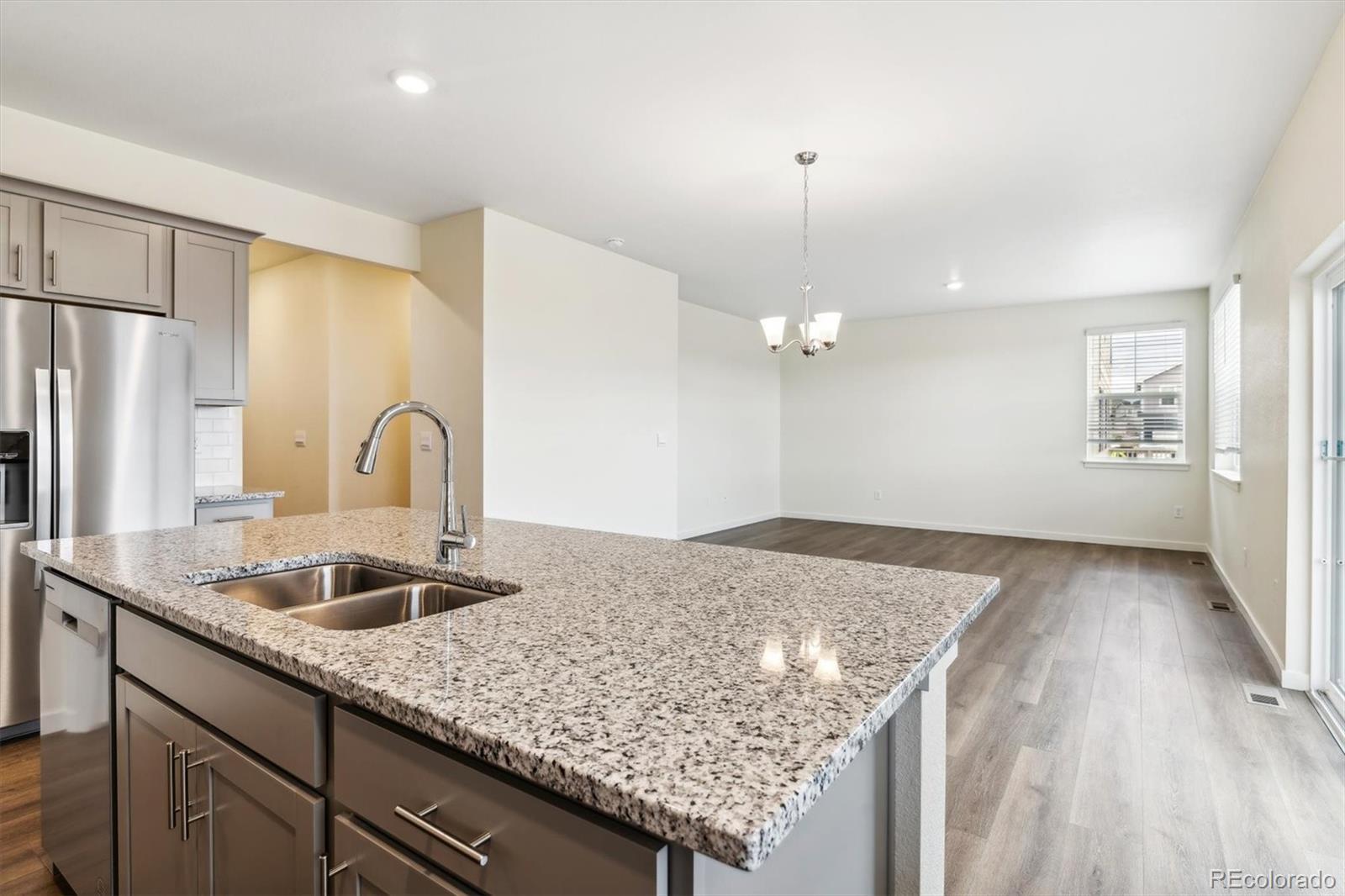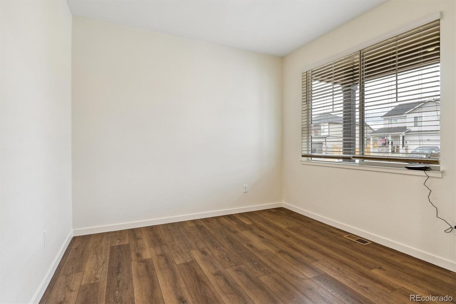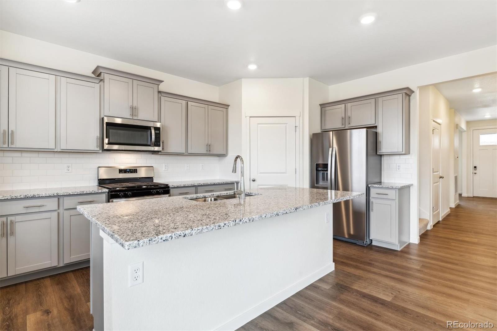 **Ready Now** Thoughtful design meets everyday living. This beautiful two-story home offers four spacious bedrooms, two and a half baths, and a two-car garage across 2,398 square feet of well-designed space. From the moment you step onto the inviting covered front porch, you'll feel the attention to detail and flow that makes the Holcombe the perfect place to call home. Just off the entry, a flexible study offers the perfect retreat for remote work, hobbies, or homework space. Further down the hall, a powder bath and coat closet provide everyday functionality before you enter the heart of the home - a bright and open great room, cozy dining nook, and a kitchen built for gathering. The chef's kitchen features shaker-style cabinetry, granite or quartz countertops, a stylish tile backsplash, a large walk-in pantry, and a convenient drop zone by the garage entry. Upstairs, you'll find four generous bedrooms, including a private primary suite with a spa-inspired bathroom featuring dual sinks, a stand-up shower, a private water closet, and a large walk-in closet. Bedrooms two, three, and four share a full bathroom with a tub-shower combination, and the upstairs laundry room makes everyday tasks easier and more convenient. The Holcombe is loaded with high-end finishes like luxury vinyl plank flooring throughout the main level, tile flooring in all wet areas, a tankless water heater, a radon mitigation system, a perimeter drain-tied sump pump, and a central air conditioning unit for year-round comfort. America's Smart Home technology is included, offering a video doorbell, smart thermostat, smart front door lock, smart light switch, and hands-free keyless entry for modern living made easy. Life at Settlers Crossing means enjoying community walking trails, a beautiful park, and an incredible location near Denver International Airport, shopping, dining, and future amenities. ***Photos are representative and not of actual property***
