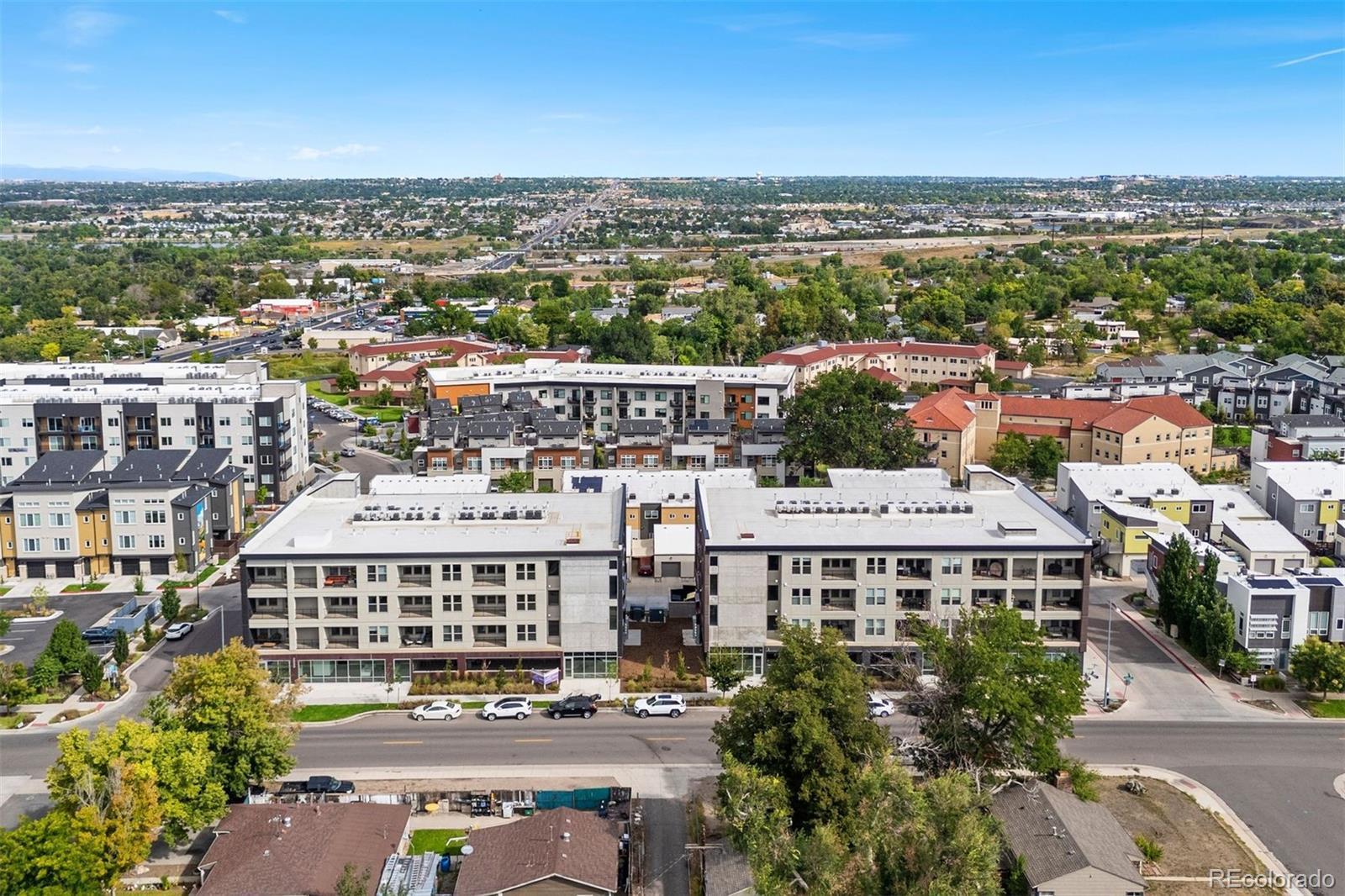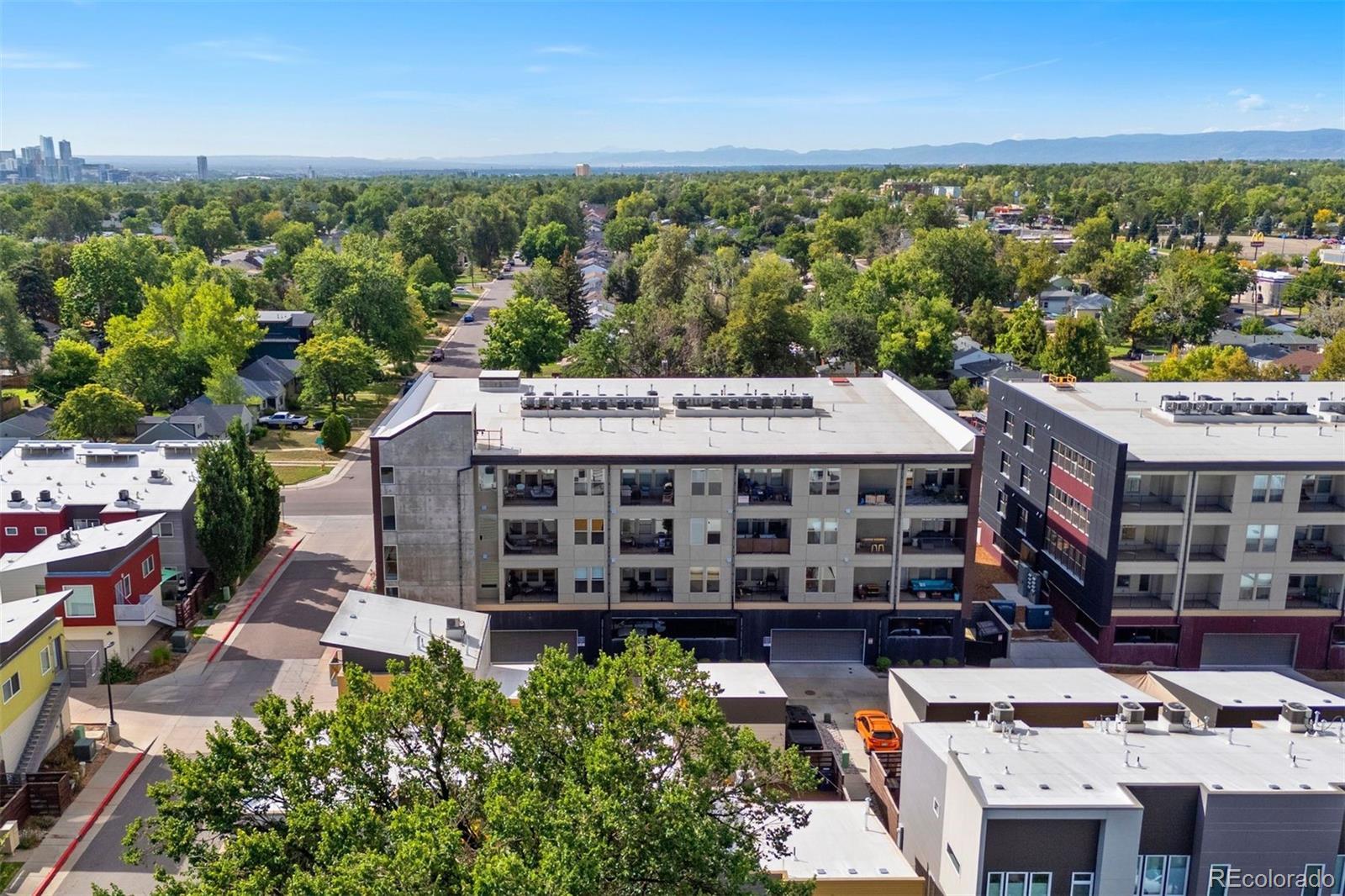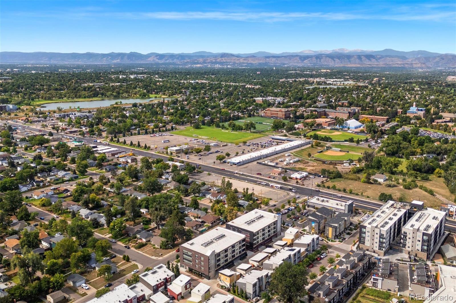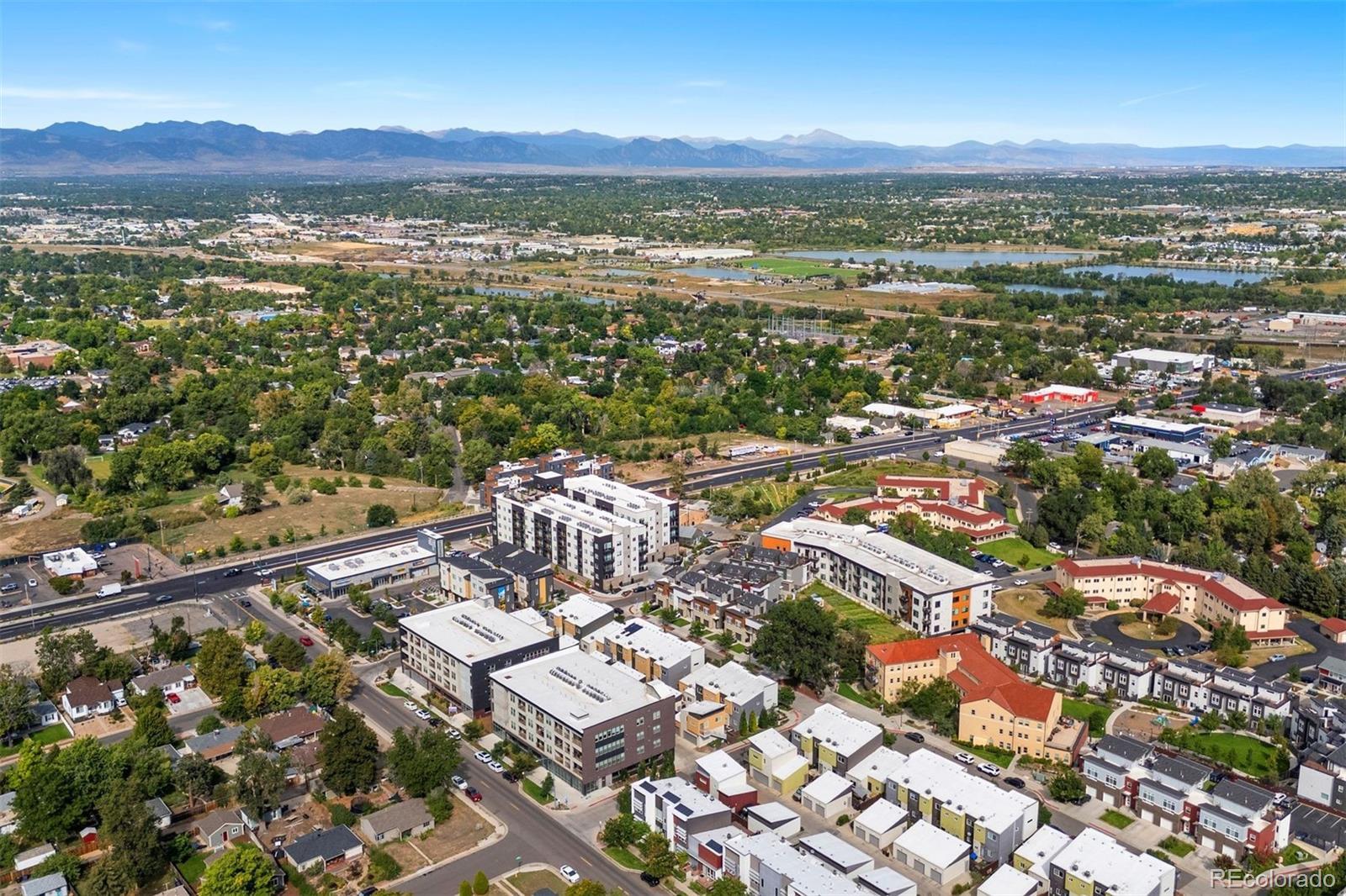 **A rare opportunity, available for a limited time, to purchase below the seller’s cost. Do not miss the deal you’ve been waiting for! Discover elevated living in this top-floor, end-unit condo offering a quiet retreat with just one shared wall. Built in 2022, this 1 bedroom home blends modern design, thoughtful upgrades, and sweeping mountain views, all in a location that balances convenience with serenity. Step inside to an inviting open-concept layout where the kitchen, dining, and living areas flow seamlessly, perfect for both everyday living and entertaining. Large windows frame the mountain views while filling the home with abundant natural light. Luxury vinyl plank flooring anchors the main spaces, while the bedroom offers plush carpet, sunlight, and a spacious walk-in closet. The kitchen shines with a premium appliance package, while Stoneside window treatments and dimmable lighting allow you to set the perfect mood day or night. An in-unit stacked washer and dryer provide everyday ease. Start your mornings with coffee or wind down in the evenings on your private balcony, enjoying northwest facing views of Colorado’s stunning mountain backdrop and Jim Baker Reservior. Building amenities include secure garage parking, a welcoming lobby, community gardens, and even a Little Free Library. With Regis University just across the street, quick access to I-70 and I-76, public transportation one block away, and Starbucks around the corner, this home offers effortless urban connectivity with a peaceful neighborhood feel. Whether you are a first-time buyer, investor, or looking for a low-maintenance lock-and-leave lifestyle, this condo is the perfect fit.