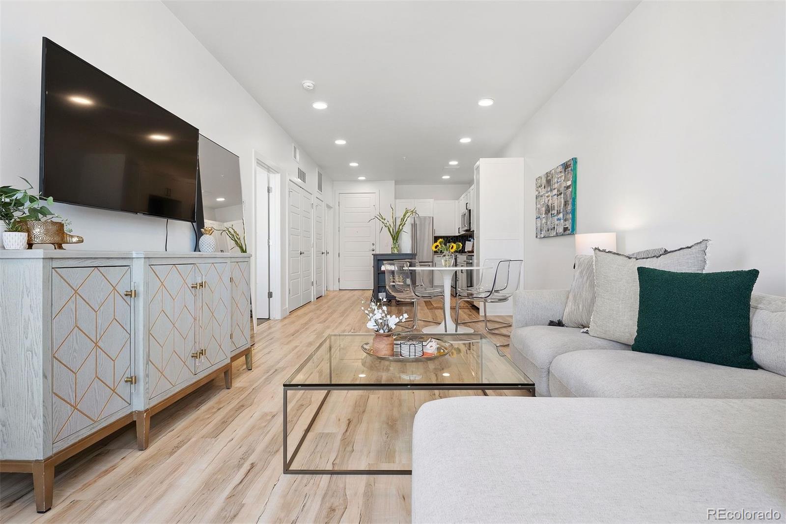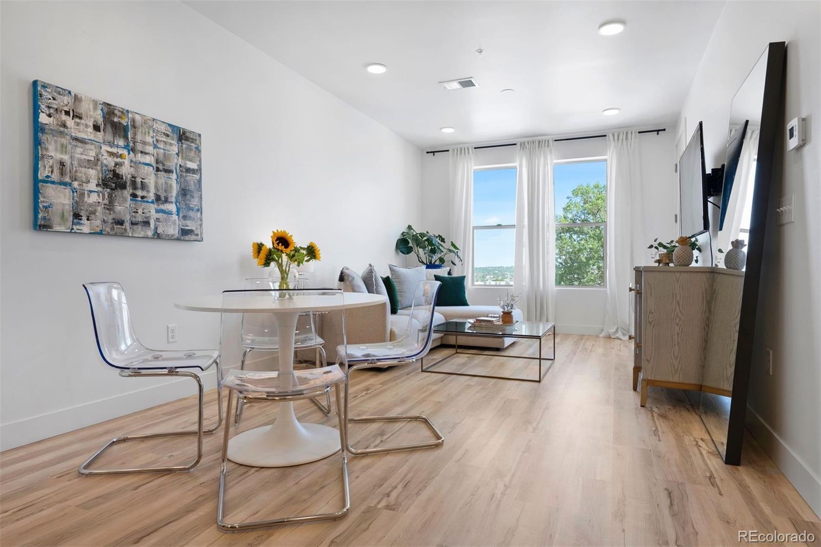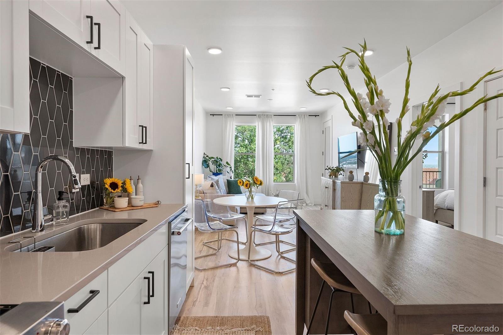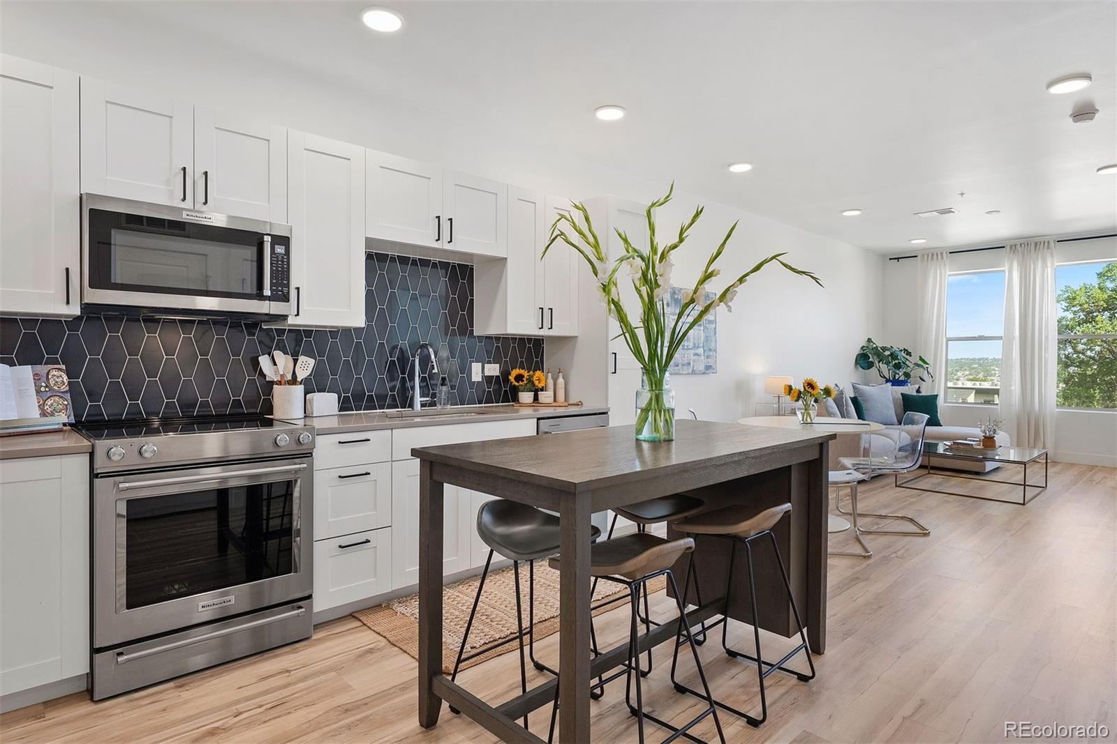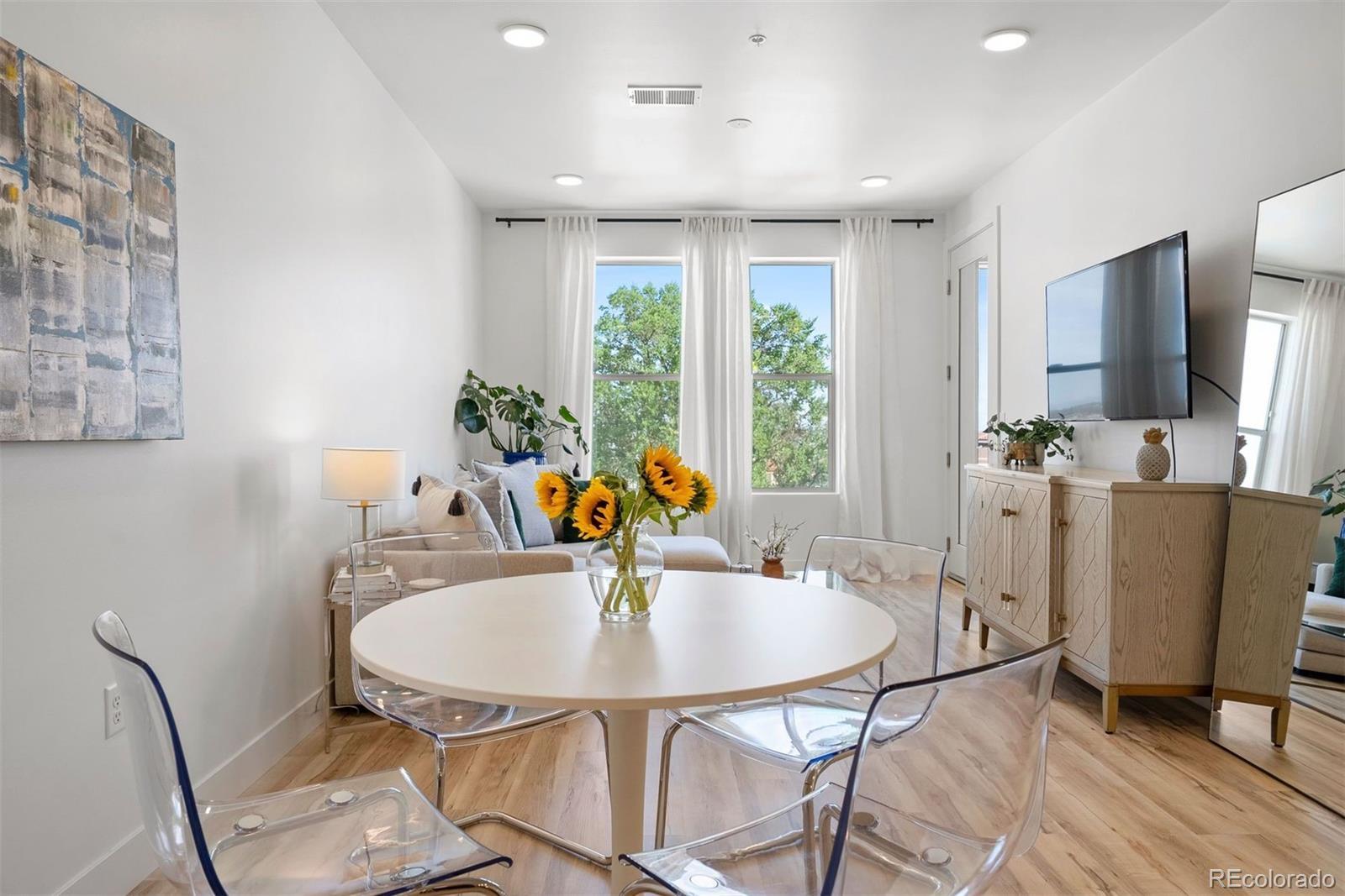 **A rare opportunity, available for a limited time, to purchase below the seller’s cost. Do not miss the deal you’ve been waiting for! Discover elevated living in this top-floor, end-unit condo offering a quiet retreat with just one shared wall. Built in 2022, this 1 bedroom home blends modern design, thoughtful upgrades, and sweeping mountain views, all in a location that balances convenience with serenity. Step inside to an inviting open-concept layout where the kitchen, dining, and living areas flow seamlessly, perfect for both everyday living and entertaining. Large windows frame the mountain views while filling the home with abundant natural light. Luxury vinyl plank flooring anchors the main spaces, while the bedroom offers plush carpet, sunlight, and a spacious walk-in closet. The kitchen shines with a premium appliance package, while Stoneside window treatments and dimmable lighting allow you to set the perfect mood day or night. An in-unit stacked washer and dryer provide everyday ease. Start your mornings with coffee or wind down in the evenings on your private balcony, enjoying northwest facing views of Colorado’s stunning mountain backdrop and Jim Baker Reservior. Building amenities include secure garage parking, a welcoming lobby, community gardens, and even a Little Free Library. With Regis University just across the street, quick access to I-70 and I-76, public transportation one block away, and Starbucks around the corner, this home offers effortless urban connectivity with a peaceful neighborhood feel. Whether you are a first-time buyer, investor, or looking for a low-maintenance lock-and-leave lifestyle, this condo is the perfect fit.