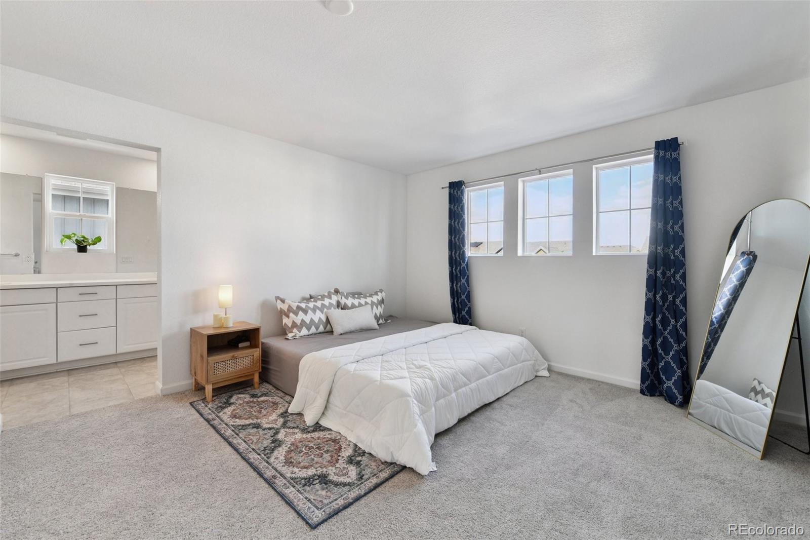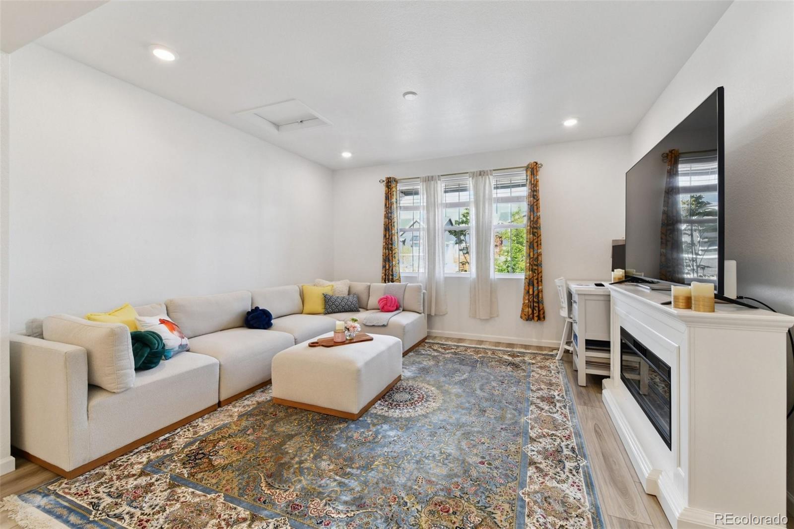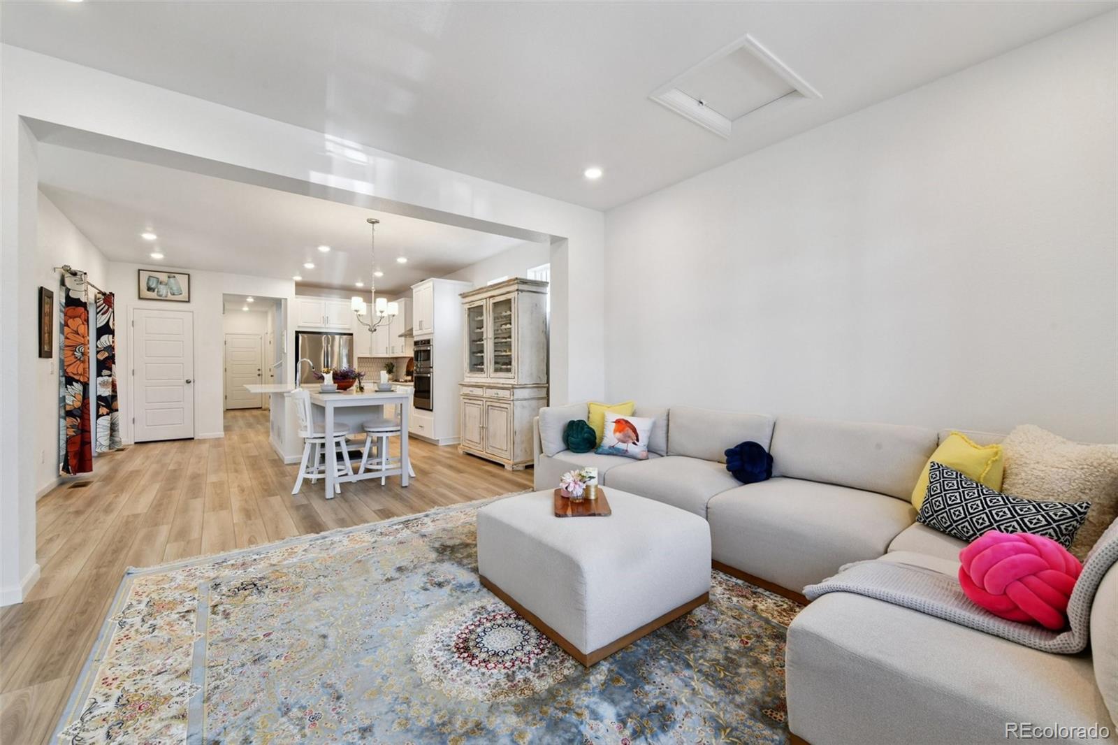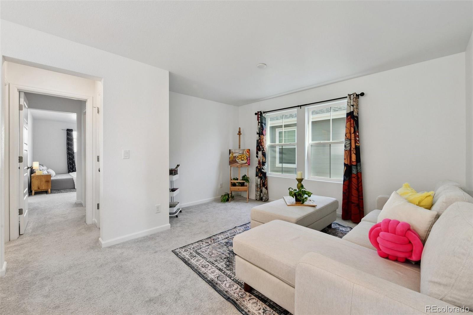 Welcome to this stunning 2024-built home in the desirable Aurora Highlands! This modern 3-bedroom, 2.5-bath residence offers an open, bright floor plan with plenty of space for comfortable living and entertaining. The main floor features a spacious living room that flows seamlessly into the dining area and contemporary kitchen, complete with a large island, stainless steel appliances, and a view of the patio—perfect for indoor-outdoor living. Down the hall, you’ll find a sun-filled office with double-door entry and a convenient half bathroom. Upstairs, enjoy a versatile loft area ideal for a hangout or study space, along with a thoughtfully designed layout featuring a spacious primary suite with walk-in closet and ensuite bathroom with dual sinks and walk-in shower. Two additional bedrooms and a full bathroom are positioned separately for privacy and convenience. The unfinished basement offers plenty of room to customize to your lifestyle. Additional highlights include an attached 2-car garage and location in a master-planned community with a park, pool, playground, and scenic trails. Commuting is a breeze with easy access to E-470 and I-70, and Denver International Airport is just 11 miles away. Modern, functional, and full of light—this home is ready to welcome its next owners!
