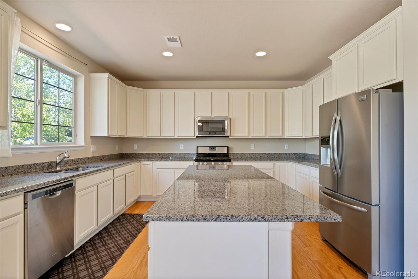 Gorgeous home with 4 beds and 3.5 baths located in the Lambertson Farms in Broomfield. Entrance foyer, Eat-in Kitchen with granite & island, Hardwood floors, Main floor study. High ceilings. The large primary bedroom has walk-in closet and 5-pc bathroom. Upper level offers two additional bedrooms, full bathroom and opens to family room below. Large laundry room w/matching cabinets on the first floor, New finished basement with huge recreation room, bedroom, bath and storage. 3 car garage and oversize driveway. Partial fenced landscaped backyard on 10778 sqf lot. Schedule showing today!