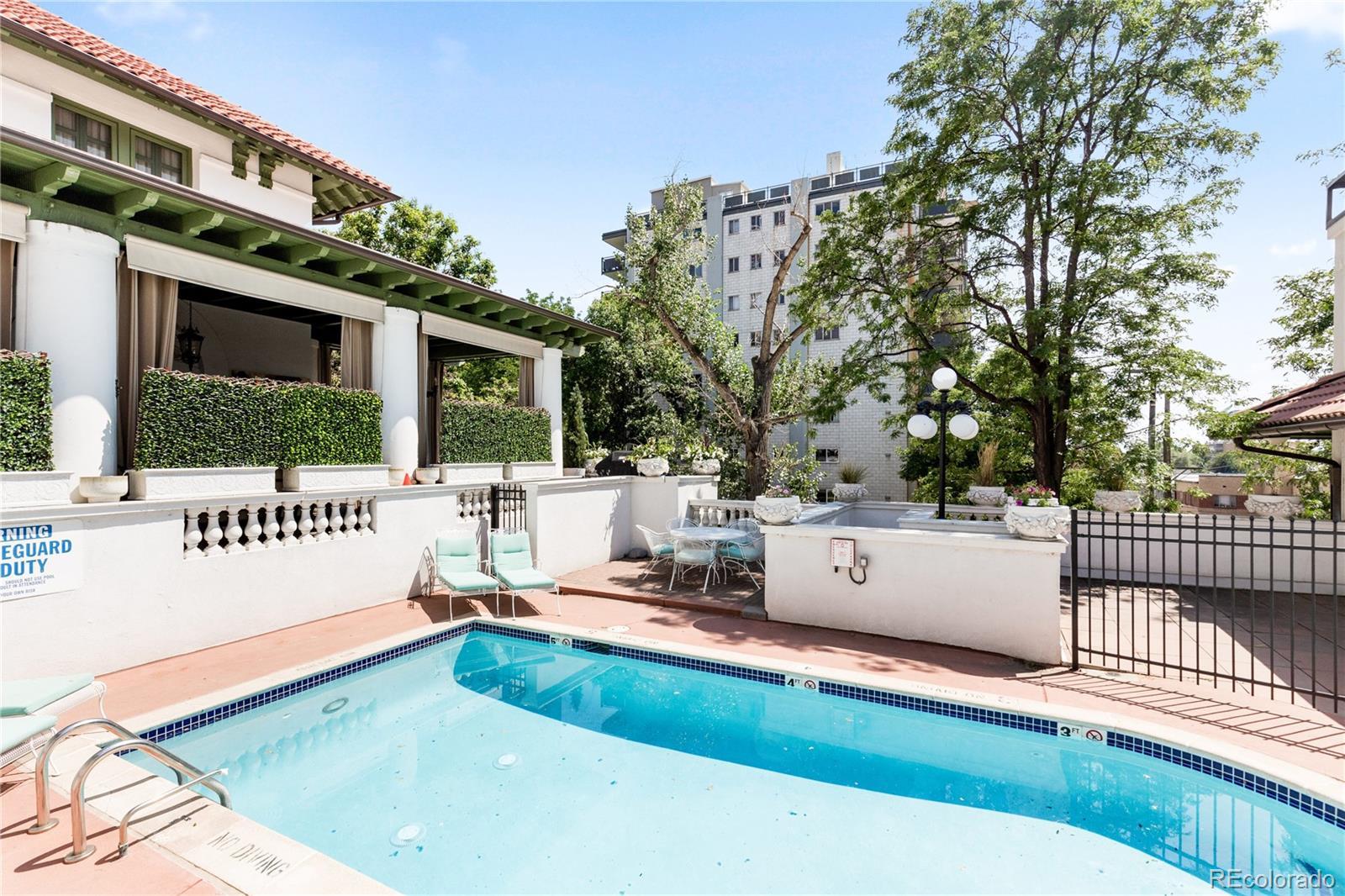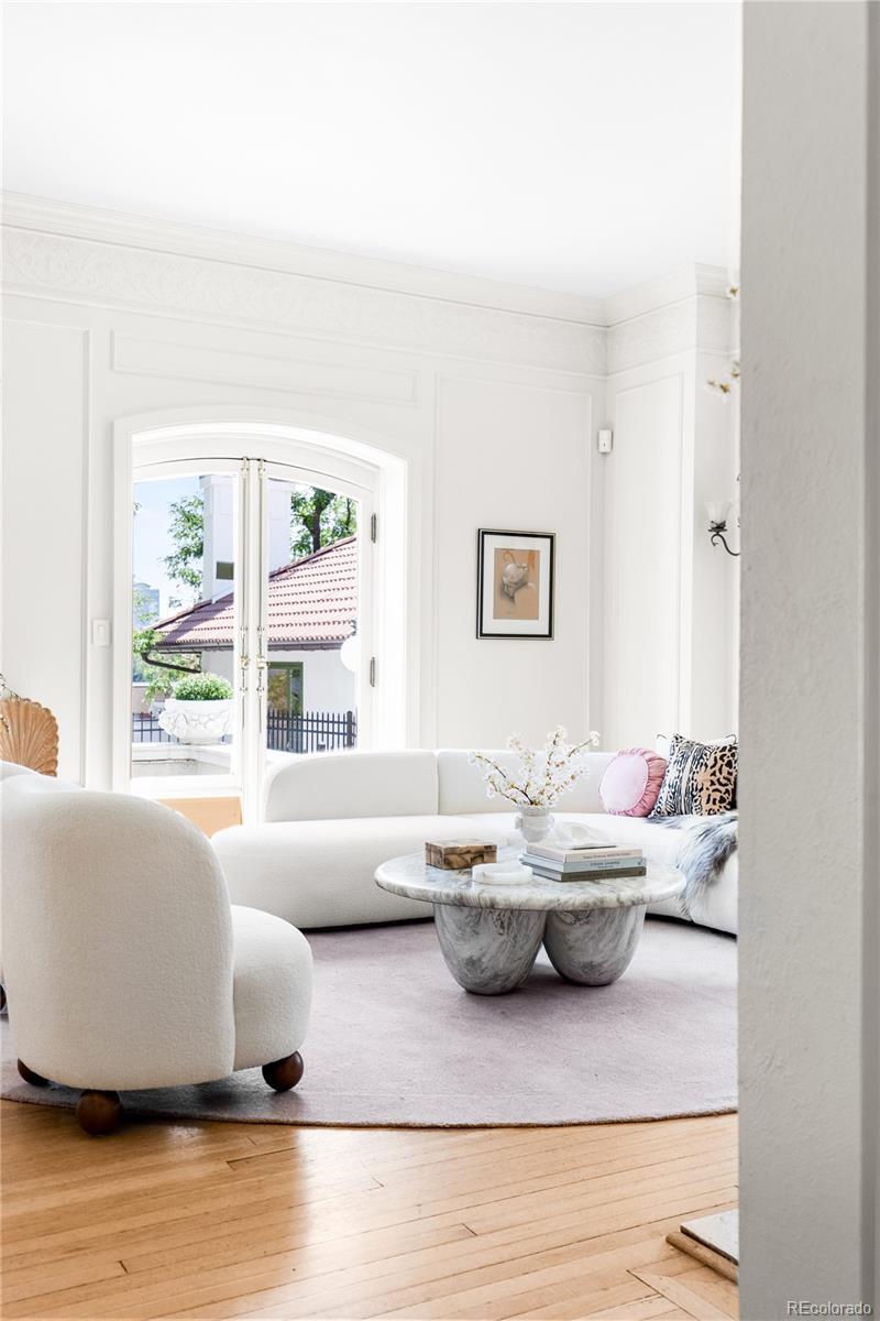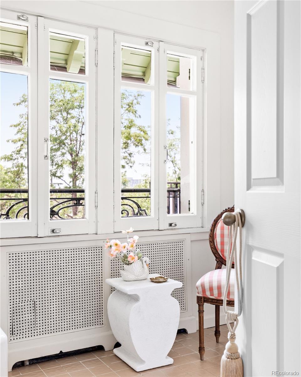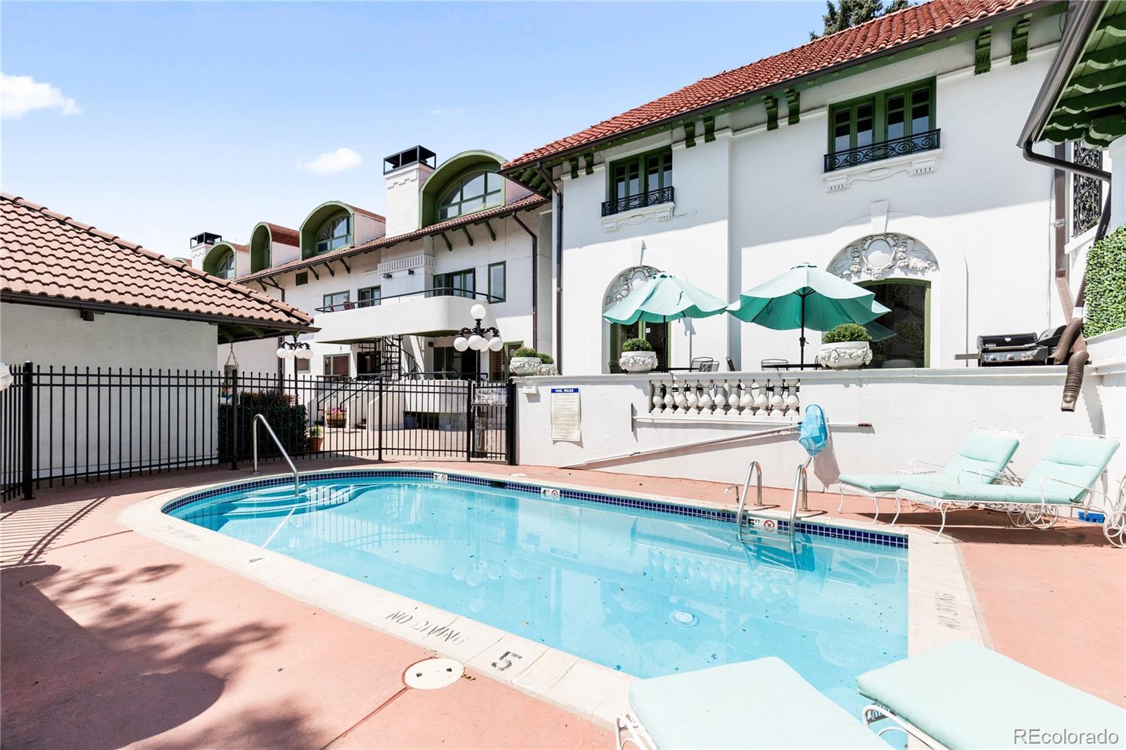 **Seller willing to pay up to 6 months of HOA Dues with full price offer** If Emily in Paris moved to Denver, she’d live here. Step into a mesmerizing blend of historic grandeur and effortlessly chic city living. Nestled within Denver’s iconic Bonfils Mansion—an elegant French Mediterranean Revival landmark designed by Biscoe & Hewitt and built in the early 1900s—this 3-bedroom, 2½-bath condo is the ultimate French pied-à-terre for those seeking low-maintenance living with a dash of Melrose Place glamour. Inside, the home preserves the mansion’s storied charm—arching lunettes, stucco walls, red-clay tile roof, and timeless French-inspired detailing—while integrating contemporary elegance. Refinished hardwood floors, sleek stainless-steel appliances, and Silestone counters create an atmosphere that is both refined and welcoming, perfect for stylish entertaining or intimate evenings at home. The spacious primary suite, complete with a fireplace and mountain views, invites lingering mornings and cozy nights. Two additional bedrooms offer flexibility for guests or a private home office, making it as practical as it is beautiful. Outside, a private, south-facing patio overlooks the serene courtyard and pool, creating a tranquil escape in the heart of the city. Central air, in-unit laundry, and two deeded garage spaces make daily living effortless, while the HOA takes care of the details so you can simply enjoy. Perfectly walkable to parks, dining, and Trader Joe’s, this rare find blends chic lifestyle with versatile function. Picture yourself sipping champagne on the terrace, sharing laughter with friends, or curling up by the fire after a night out. This isn’t just a home—it’s a scene, a feeling, and a dynamic way of life wrapped in historic elegance.