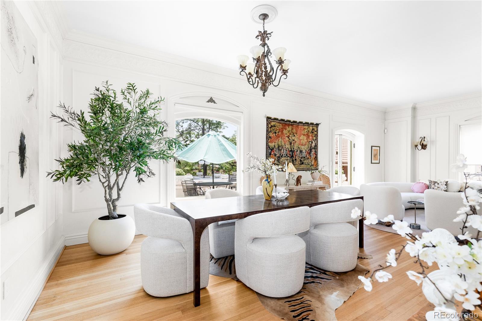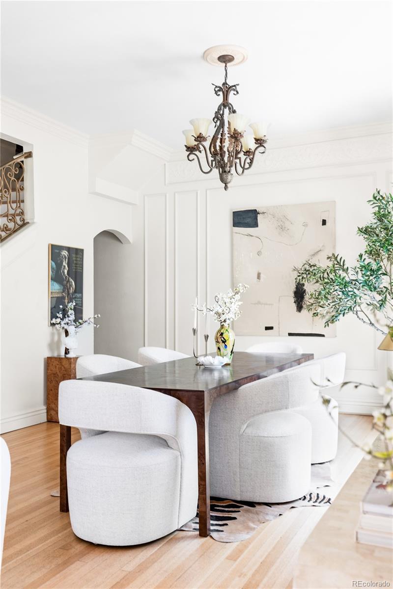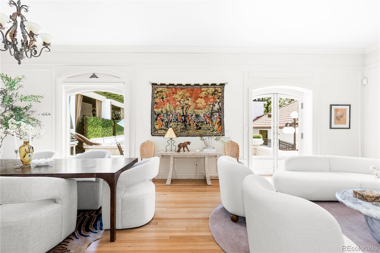 **Seller willing to pay up to 6 months of HOA Dues with full price offer** If Emily in Paris moved to Denver, she’d live here. Step into a mesmerizing blend of historic grandeur and effortlessly chic city living. Nestled within Denver’s iconic Bonfils Mansion—an elegant French Mediterranean Revival landmark designed by Biscoe & Hewitt and built in the early 1900s—this 3-bedroom, 2½-bath condo is the ultimate French pied-à-terre for those seeking low-maintenance living with a dash of Melrose Place glamour. Inside, the home preserves the mansion’s storied charm—arching lunettes, stucco walls, red-clay tile roof, and timeless French-inspired detailing—while integrating contemporary elegance. Refinished hardwood floors, sleek stainless-steel appliances, and Silestone counters create an atmosphere that is both refined and welcoming, perfect for stylish entertaining or intimate evenings at home. The spacious primary suite, complete with a fireplace and mountain views, invites lingering mornings and cozy nights. Two additional bedrooms offer flexibility for guests or a private home office, making it as practical as it is beautiful. Outside, a private, south-facing patio overlooks the serene courtyard and pool, creating a tranquil escape in the heart of the city. Central air, in-unit laundry, and two deeded garage spaces make daily living effortless, while the HOA takes care of the details so you can simply enjoy. Perfectly walkable to parks, dining, and Trader Joe’s, this rare find blends chic lifestyle with versatile function. Picture yourself sipping champagne on the terrace, sharing laughter with friends, or curling up by the fire after a night out. This isn’t just a home—it’s a scene, a feeling, and a dynamic way of life wrapped in historic elegance.