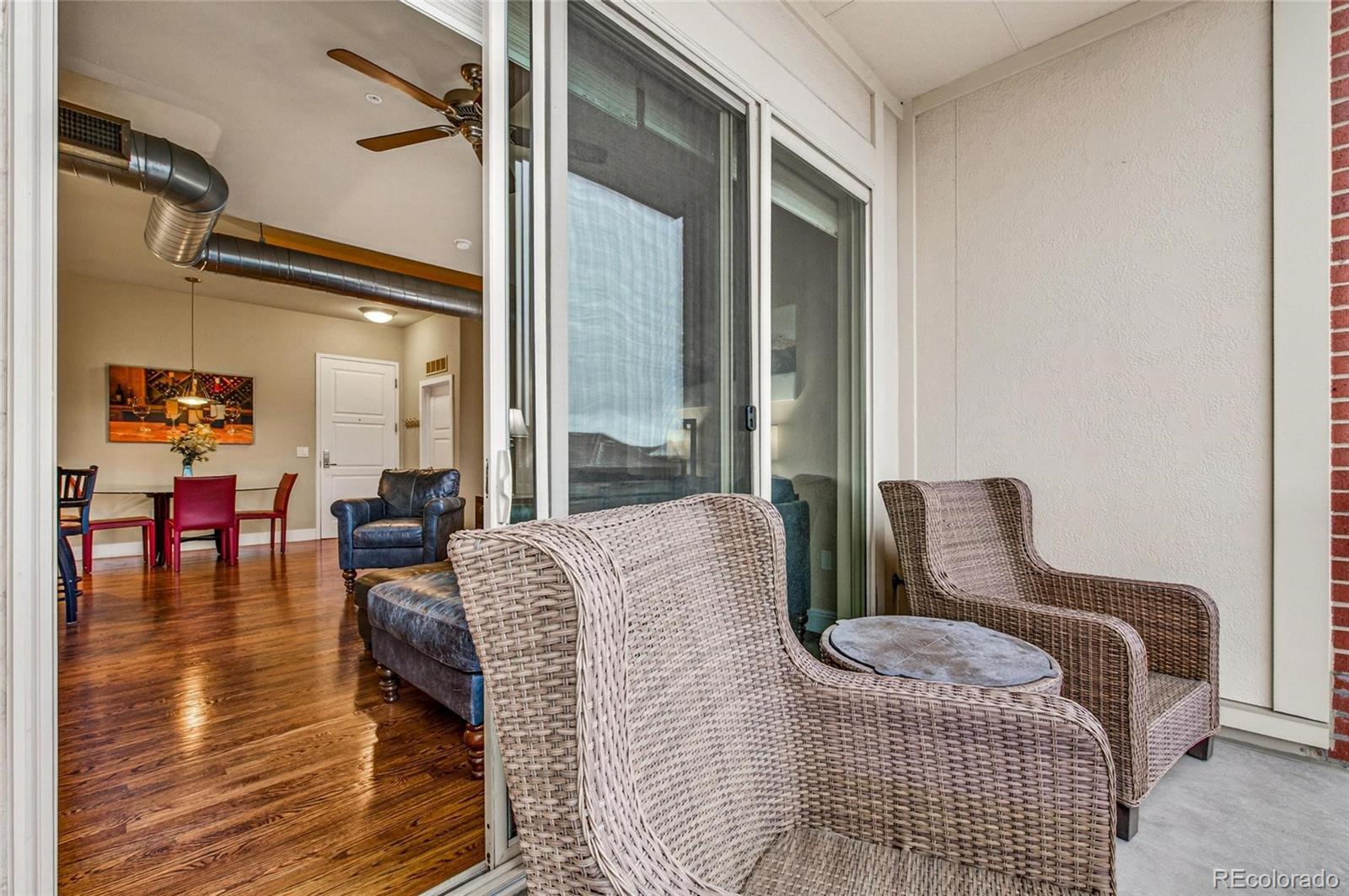Urban contemporary loft-style condo in DTC (Denver Tech Center) with an open floor plan, abundant natural light, gorgeous hardwood floors, and a cozy fireplace—perfect for chilly Colorado evenings. The granite kitchen features a large center island and a full appliance package, ideal for cooking and entertaining. The spacious primary suite offers an en-suite bath and large walk-in closet, while the separate guest suite is perfectly positioned for privacy—great for guests, a roommate setup, or a dedicated home office. Step onto the private balcony with views and enjoy the gas grill hookup for easy outdoor dining. Enjoy the convenience of a secure, elevator-access building with a fire suppression system and two side-by-side underground parking spaces. Even better—restaurants and shopping are right on the main floor of the building, making everyday errands and dinner plans incredibly convenient. Unbeatable location with easy access to I-25, minutes to fine dining and retail, and walking distance to light rail for a smooth commute to Downtown Denver and DIA. Low-maintenance, lock-and-leave living—move in and enjoy.