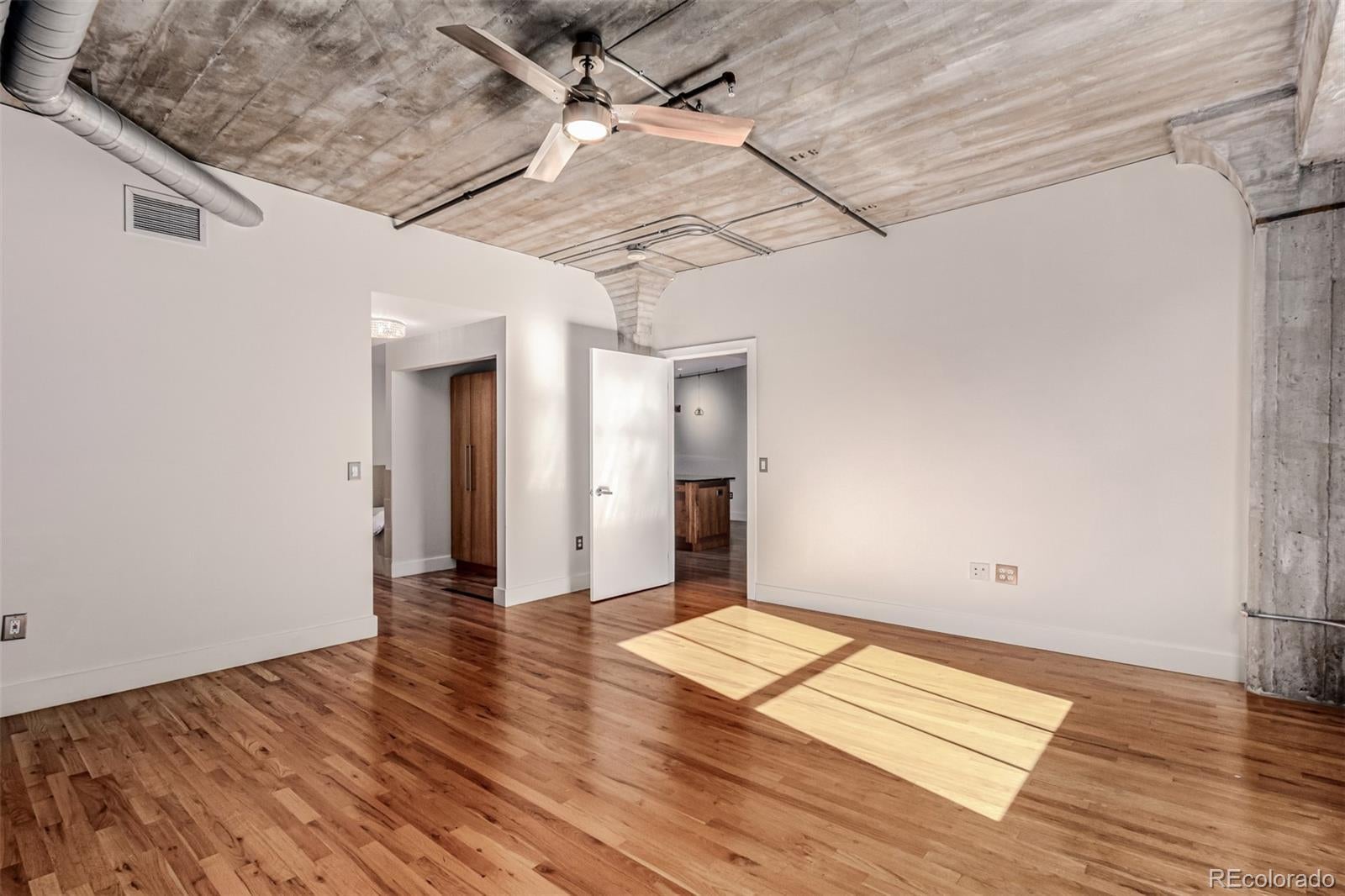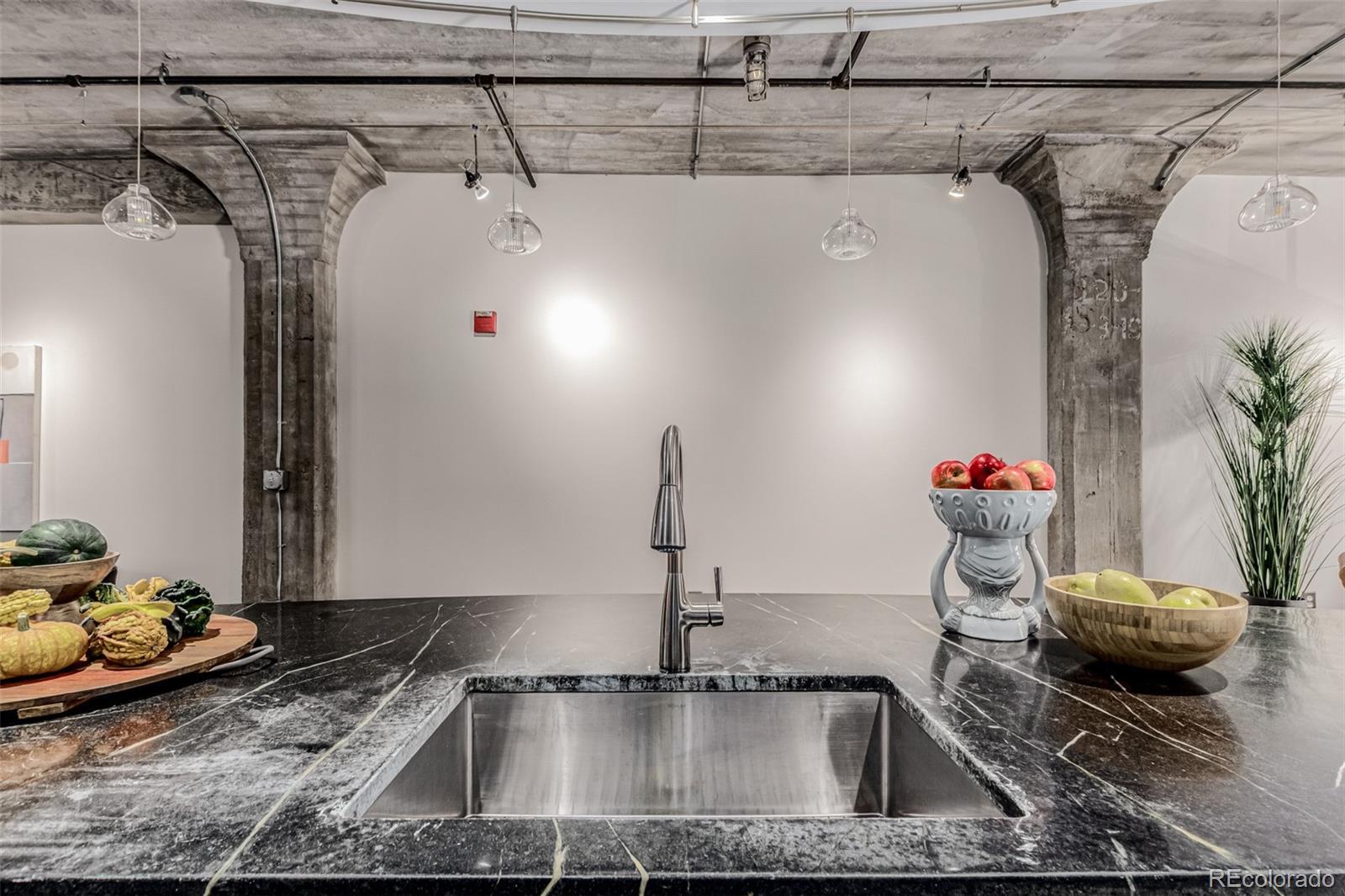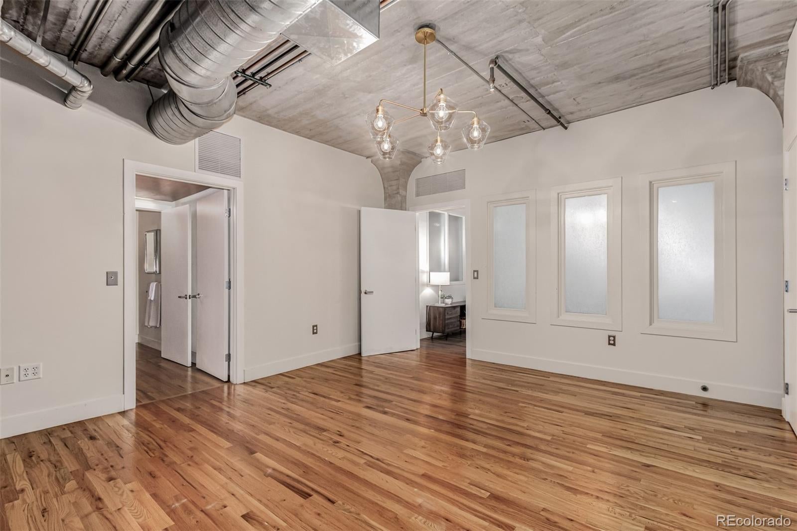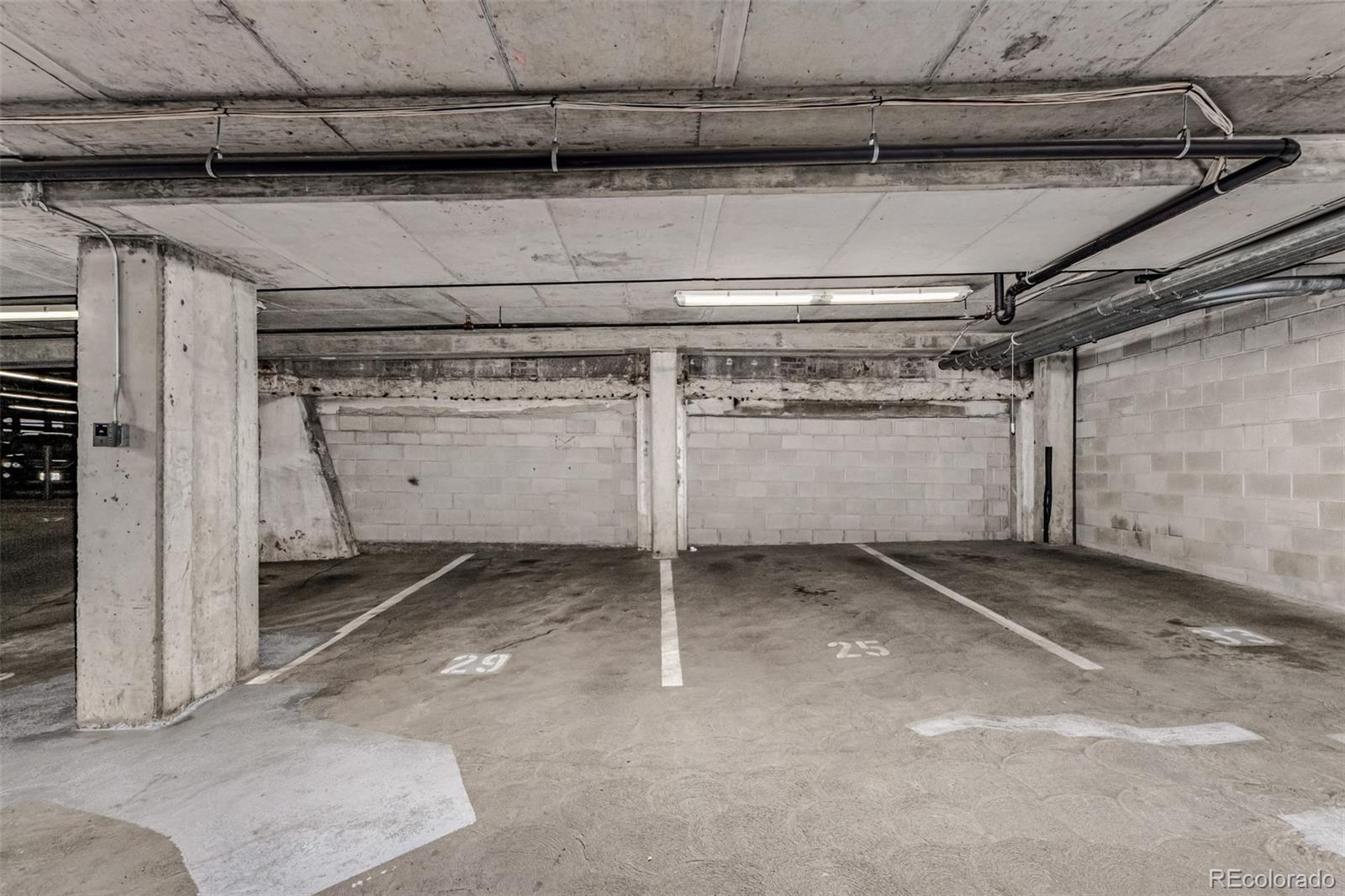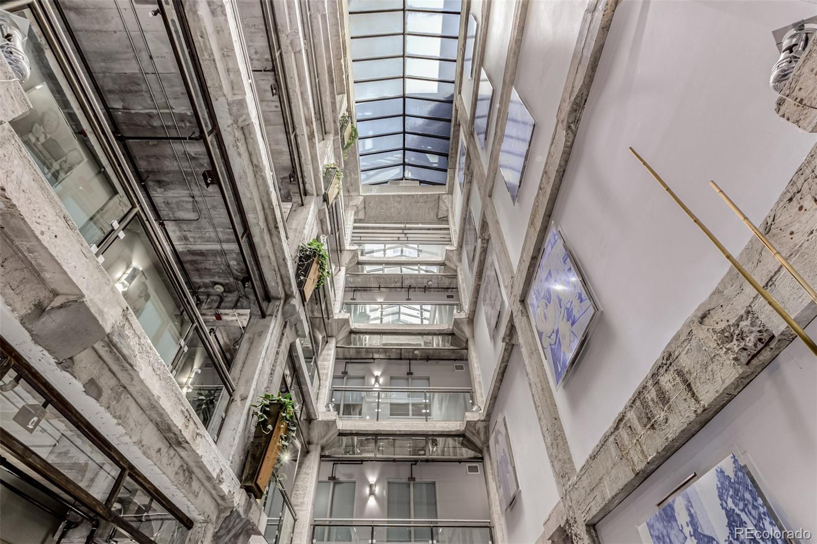 Stunning historic loft in the heart of LoDo! This residence combines character and modern comfort with exposed brick & concrete, high ceilings, and hardwood floors throughout. The spacious eat-in kitchen features a full subway tile backsplash, under-cabinet lighting, Soapstone countertops, and stainless-steel appliances including a refrigerator, gas range with hood, dishwasher, microwave, and beverage refrigerator. Enjoy both a casual dining area and a formal dining space ideal for entertaining. The living room showcases a custom contemporary metal and wood built-in entertainment center. Both bedrooms are fully enclosed — a rare feature in a loft — offering privacy and quiet. The primary suite includes a luxurious 5-piece bath and two closets, while the second bedroom suite is perfect for guests or a home office. Additional highlights include a side-by-side washer and dryer, two deeded parking spaces, and a personal storage unit. Amenities include central interior courtyard flooded with natural light and a common area roof top deck with BBQ grill, dining table and striking views! Experience the best of downtown living with this stylish and well-appointed LoDo loft in a prime location near Union Station, light rail, Riverfront Park, bike paths, restaurants, DCPA & more.