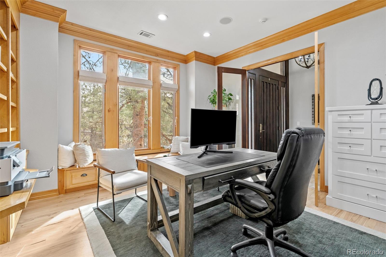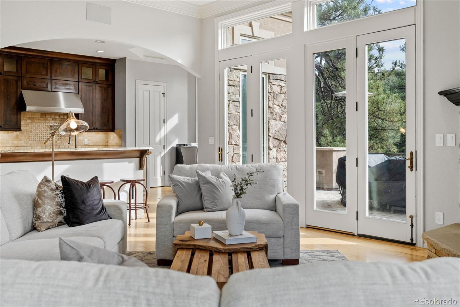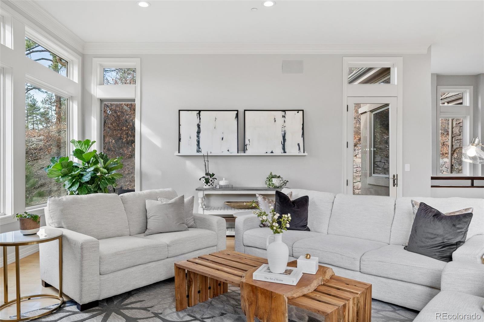 Tucked behind the private gates of The Village at Castle Pines, this extraordinary residence offers a rare combination of refined luxury and serene natural beauty. Surrounded by mature pines and framed by uninterrupted tree-lined views from every angle, the setting feels like a secluded mountain retreat — yet moments from everyday conveniences. Designed for elevated living at every turn, the home is appointed with radiant floor heating, a whole-house humidifier, water softener system, and central vacuum — thoughtful comforts that enhance daily life. Multiple fireplaces create warmth and architectural presence throughout, while expansive windows invite the outdoors in, showcasing peaceful forest vistas and the quiet movement of local wildlife. The chef’s kitchen is a statement in both form and function, featuring a Sub-Zero refrigerator, Wolf appliances, and a pot filler — seamlessly blending professional-grade performance with timeless elegance. Indoor living transitions effortlessly to two distinct outdoor living spaces, each generously scaled and intentionally designed for entertaining or private relaxation. Whether hosting under the Colorado sky or enjoying tranquil mornings surrounded by trees, these expansive outdoor retreats offer privacy, scale, and a rare connection to nature. Peace and quiet define this home — delivering a level of privacy that is increasingly uncommon. Residents of The Village enjoy a premier lifestyle with access to three pools, a state-of-the-art fitness facility, pickleball and tennis courts, sand volleyball and basketball courts, pocket parks, and over 13 miles of scenic walking trails. The community’s 24/7 gated entry with manned security and in-home EMT call system provide an added layer of comfort and confidence, while curated community events foster a true sense of connection. This is Colorado luxury living at its finest — sophisticated, secure, and immersed in natural beauty.