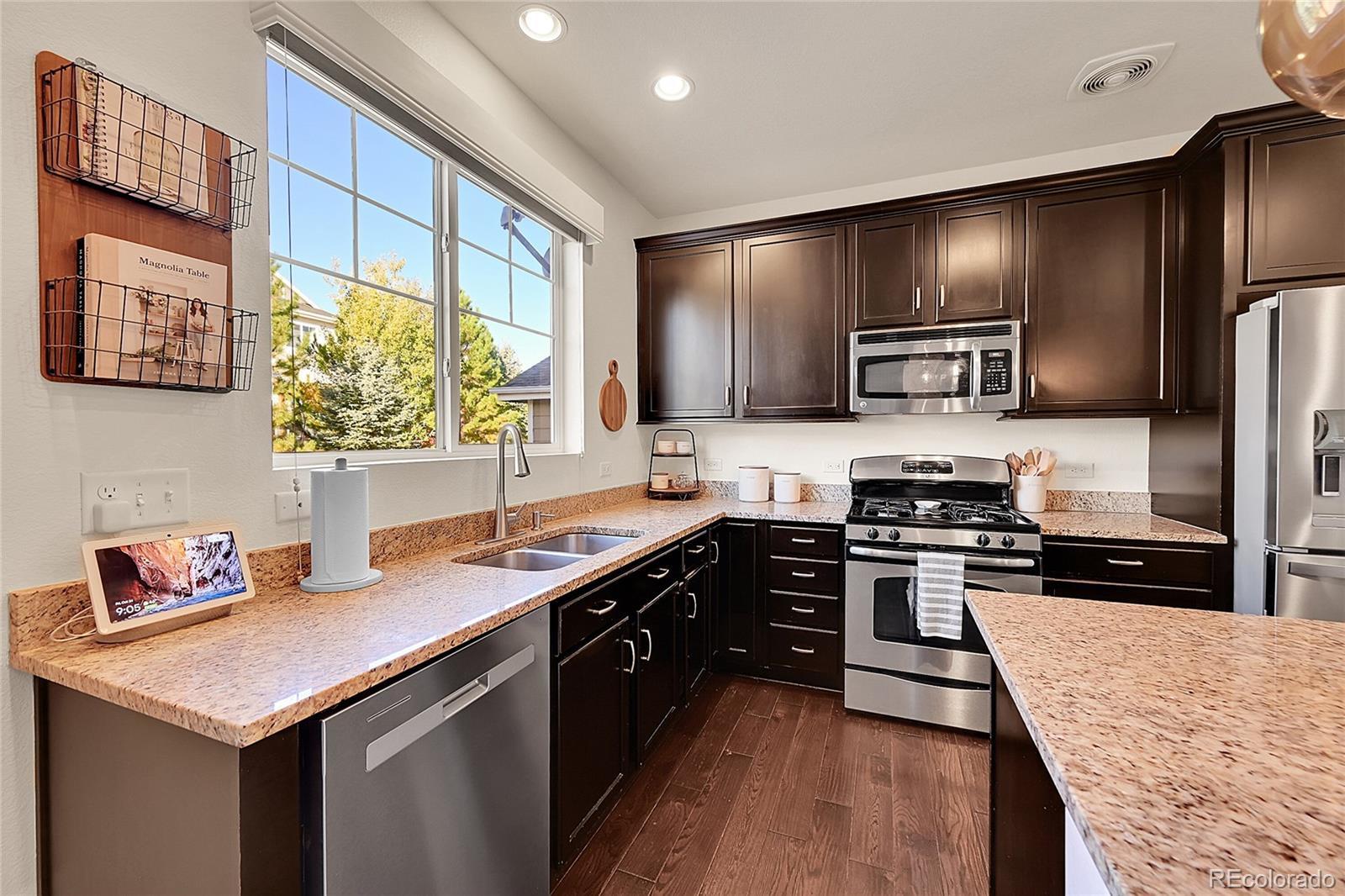 FOUR Bedrooms PLUS bonus room that is a GREAT guestroom/bedroom, workout space, office, the sky is the limit! This is a warm & inviting home that’s been thoughtfully designed for comfortable living & easy entertaining. With 4 bedrooms and 3.5 baths, there’s plenty of space for everyone to spread out and feel at home. The main level offers an open layout that flows naturally from the kitchen to the living and dining areas, making it perfect for gathering with family or friends. Upstairs, you’ll find spacious bedrooms, each with its own walk-in closet, plus a primary suite with a large closet and private bath, your perfect spot to unwind at the end of the day. Even the LAUNDRY is upstairs, exactly where you need it. The finished basement adds even more flexibility, featuring a cozy media room, a bedroom, and a bonus room that can be used as a home office, workout area, or playroom; whatever fits your lifestyle best. Step outside and enjoy the backyard made for Colorado living! The stamped concrete patio and built-in outdoor kitchen are ready for summer cookouts, while the Ozone WindRiver Spa (super low maintenance with no chemicals needed!) offers the perfect place to relax year-round. The professionally installed turf keeps your yard looking great with minimal upkeep. Located in the heart of The Meadows, you’ll love being close to parks, trails, pools, and top-rated schools—all while enjoying a true sense of community. This is more than just a house. It’s a place to make lasting memories. Come see what makes this like home! *** BRAND NEW ROOF & EXTERIOR PAINTING *** talk about a great deal!