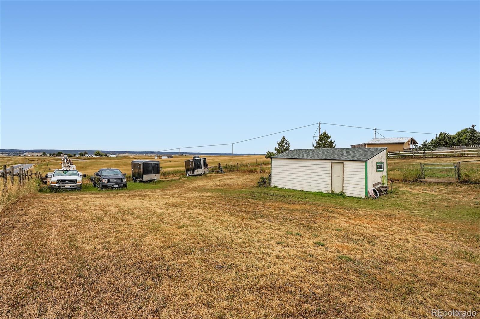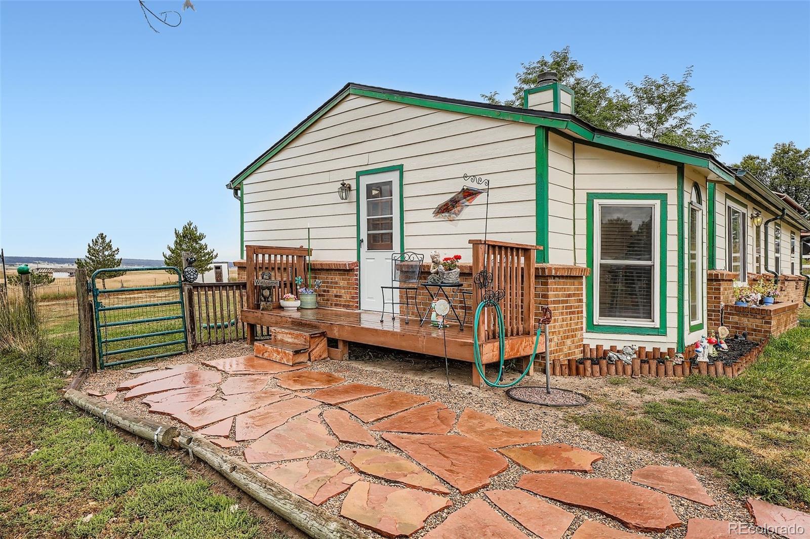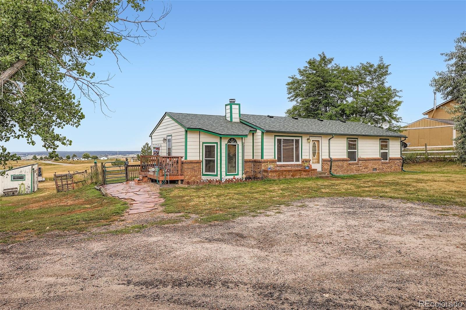 Spectacular big skies and beautiful panoramic views of the Eastern Colorado plains make your new home a wonderful Colorado destination! This inviting 3 bedroom, 2 bath home features a cozy wood-burning fireplace in the living room and a timeless design with plenty of opportunity to make it your own. Offering ample storage and a detached garage with additional parking, this property is both functional and versatile. The peaceful setting provides room for gardening, animals, relaxation, or entertaining, with a patio to enjoy the outdoors. Conveniently located for an easy commute to Elizabeth, Parker, or Castle Rock. Click the Virtual Tour link to view the 3D walkthrough. Discounted rate options and no lender fee future refinancing may be available for qualified buyers of this home.