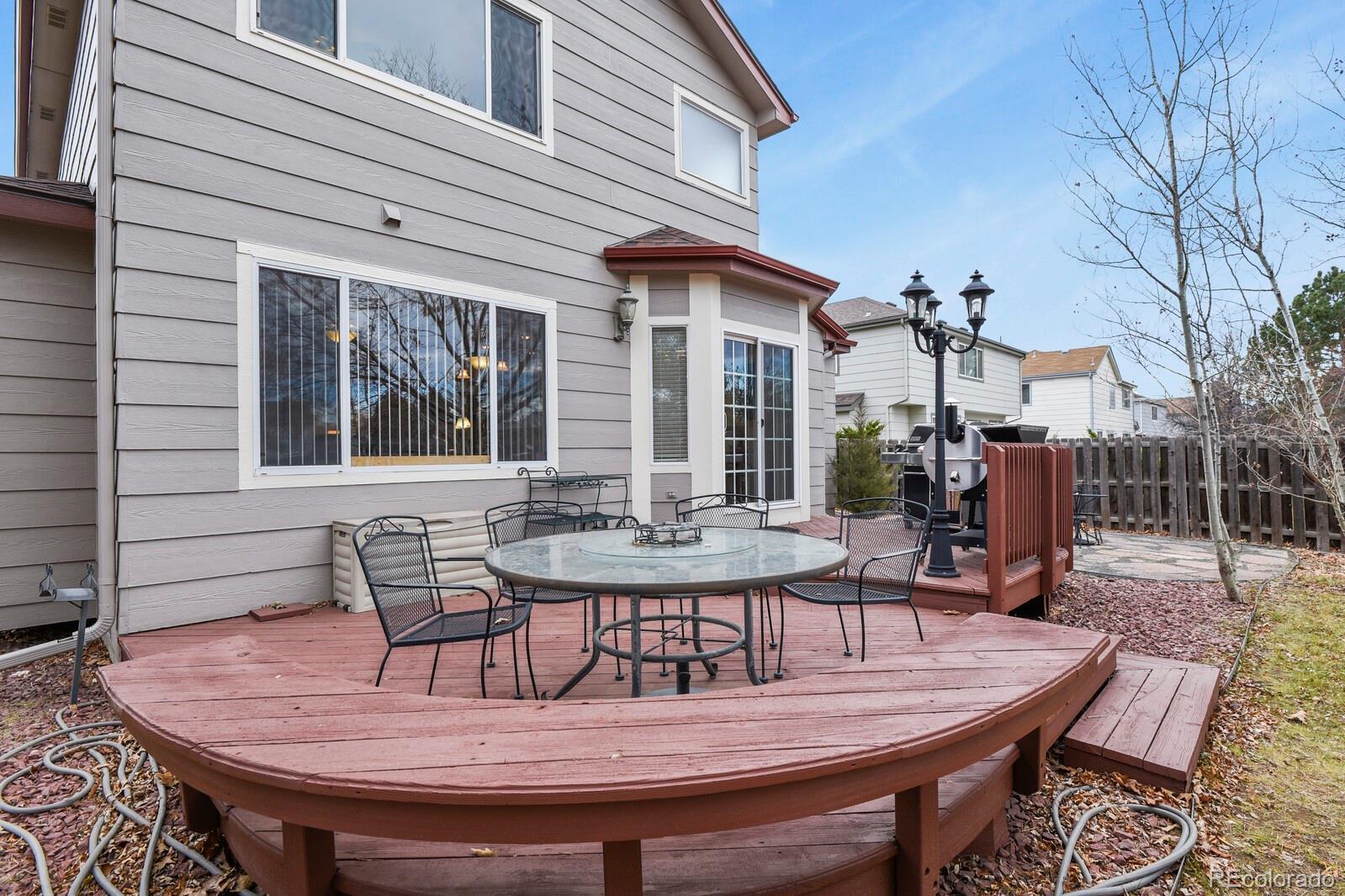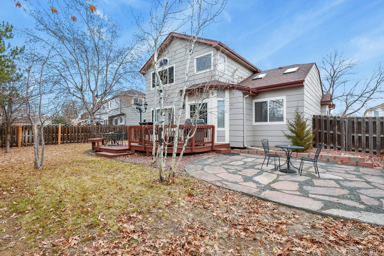 Welcome to this thoughtfully updated four-bedroom, four-bath home with a rare three-car garage, located in the desirable Lakeshore community of Aurora, Colorado. Upon entry, you’re greeted by soaring ceilings and hardwood floors throughout the main level, creating a bright and welcoming atmosphere. The open living and dining spaces flow effortlessly, offering both comfort for daily living and flexibility for entertaining. The updated kitchen features granite tile countertops, ample cabinetry, a pantry, and a charming eat-in area framed by a bay window/door overlooking the backyard. Just off the kitchen, the cozy family room with a fireplace provides the perfect setting for relaxing evenings and Colorado winters. A generously sized main-floor office, tucked away for privacy, makes an ideal work-from-home or study space. Upstairs, you’ll find three well-proportioned bedrooms, each equipped with ceiling fans and integrated lighting, along with a convenient linen closet. The primary suite showcases a custom oversized shower, designed for comfort and luxury. Bathrooms throughout the home are updated with granite countertops and tile flooring. The finished basement adds valuable living space and versatility, featuring luxury waterproof vinyl flooring, a spacious secondary family or game room, custom built-in cabinetry and storage, a full bathroom, and an additional bedroom—perfect for guests or extended living arrangements. Outdoor living is equally inviting with a finished deck featuring built-in seating, ideal for entertaining or enjoying outdoors. The home is ideally located just steps from the neighborhood lake and expansive park. Enjoy access to a private community pool. close proximity to shops, restaurants, I-225, E-470 and more. Don’t miss your chance to own this beautiful home —schedule your private showing today!