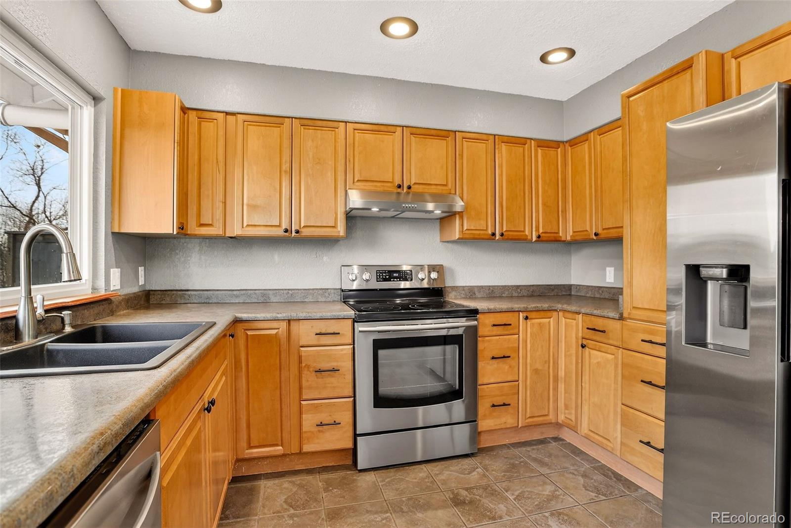 Home for the Holidays! This beautiful tri-level home is tucked into a quiet cul-de-sac on an oversized lot offering privacy, space, and flexibility. Start your mornings sipping coffee on the covered front porch, then step into a bright, open main level where vaulted ceilings and laminate flooring highlight the living room and flow effortlessly into the kitchen and dining area. The kitchen features stainless steel appliances, plenty of cabinet space, and easy access to a private, fully fenced backyard. Upstairs, you’ll find two spacious bedrooms with walk-in closets, a modern full bathroom, and a linen closet for extra storage. The lower level adds warmth and versatility with a generous family room featuring brand-new carpet and a cozy wood-burning fireplace—perfect for relaxing or entertainment area. A third bedroom and full bathroom make this level ideal for guests or multigenerational living. The basement expands your options even further with a non-conforming bedroom, bonus office/flex space, laundry room, and ample storage with shelving. Other features include brand-new carpet in all bedrooms, family room, and basement | newer water heater | radon mitigation system | double-pane windows | central air to keep you comfortable year-round. Outside, enjoy a large deck, concrete patio, dog run and expansive backyard at the end of the cul-de-sac—complete with a large storage shed, attached two-car garage, and room for RV parking. Conveniently located near Buckley Air Force Base, shopping, dining, and everyday amenities, this move-in-ready home is the perfect place to ring in the New Year.