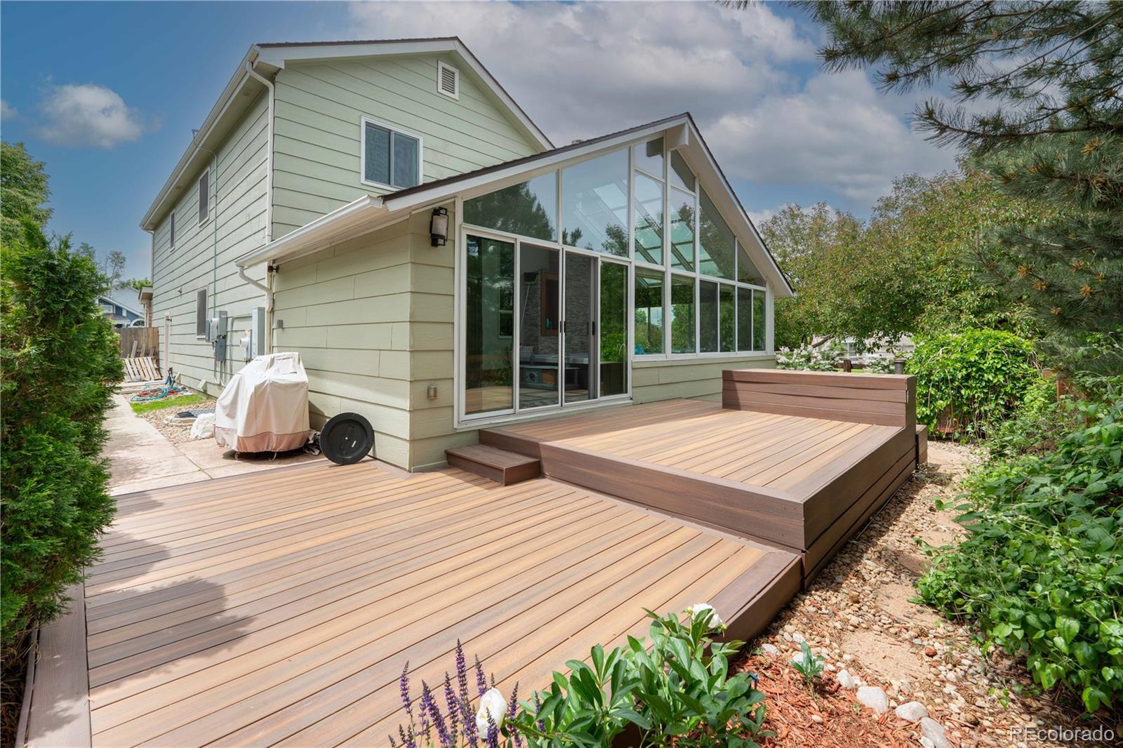 Stunning 3 bedroom house in the desirable Westcliff neighborhood. Quiet neighbors and tons of walking trails, great schools nearby, and easy highway access, only 20 minutes from downtown. The house sits on a huge corner lot bordering a park on 2 sides. This open floor-plan, tastefully updated home is loaded with luxury perks All new HVAC and new solar panels from April, 2023. Let your worries melt away in the private oasis of your incredible new sunroom, featuring a Michael Phelps swim spa and cathedral glass. Custom glass and tiling work in the entryway. Heated floors in the master suite bathroom. The eat-in kitchen features granite countertops, pull out drawers throughout, and a breakfast bar. A large formal dining room, perfect for hosting during the holidays. Enjoy ample natural light in the main living space. The master suite features a huge walk-in closet. Lovely landscaping with mature trees and flowers, and a trex-deck around the back. South facing driveway lets snow melt quickly. Come and fall in love with your new home in Broomfield.