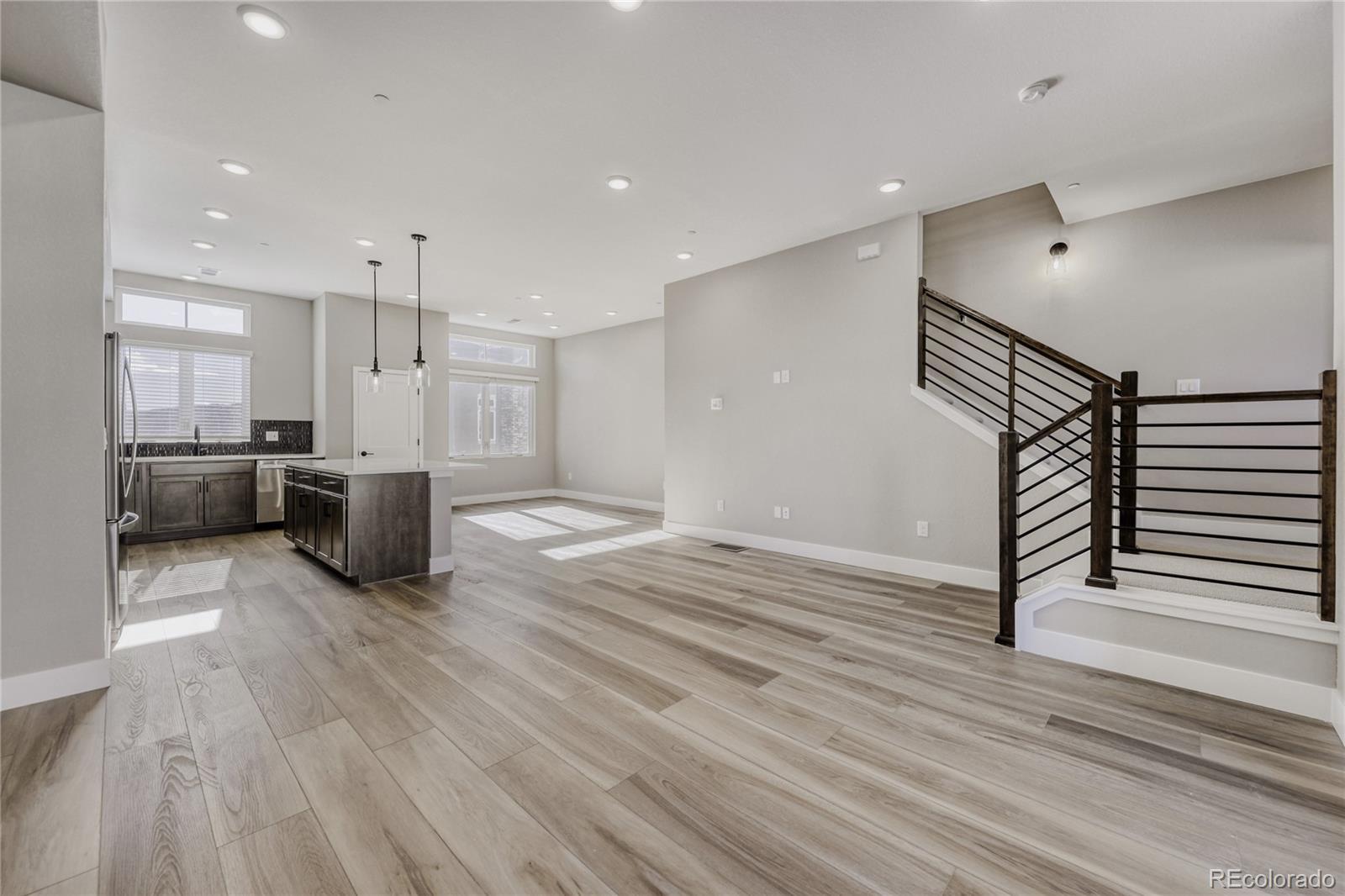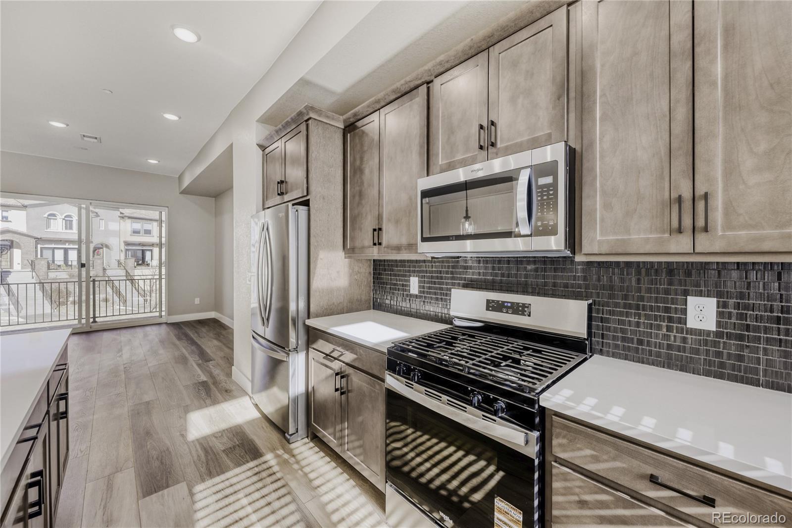 Welcome to the Cadence Collection at Solterra! This brand-new three-story townhome features 3 bedrooms, 4 bathrooms, and a bright, open-concept layout designed for everyday living and easy entertaining. Enjoy 9' ceilings on the first and third levels and an impressive 10' ceiling height in the main living area—creating an airy, spacious feel. Thoughtful details start right when you walk in, including ground-floor cubbies for everyday organization and a modern horizontal railing that elevates the home’s contemporary style. A south-facing driveway is a bonus for Colorado winters, helping with sun exposure and melt. The kitchen and great room flow seamlessly together with a generous eat-at island and flexible dining and seating spaces—perfect for game days, dinner parties, or a cozy night in. Interior finishes bring a clean, modern look with wood cabinetry, white countertops, a striking black backsplash, and textured beige carpet. The home also comes move-in ready with whole-house window blinds, plus the refrigerator and washer and dryer all included. You’ll appreciate additional energy-efficient features like a high-efficiency furnace and tankless water heater for comfort and efficiency year-round. Whether you’re looking for a primary residence, a lock-and-leave second home, or an investment opportunity, this is your chance to own new construction in one of Solterra’ s most sought-after settings—surrounded by open space, trails, and parks, with convenient access to I-70 for quick trips to the mountains or downtown Denver. Welcome home!