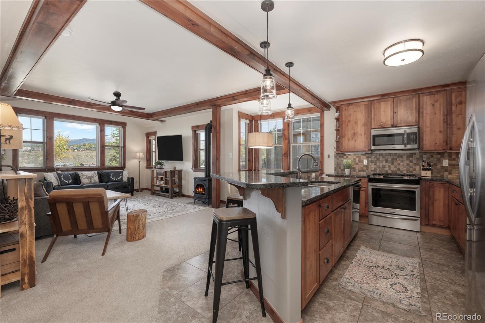 Welcome to this beautifully appointed 2-bedroom, 2-bath ground-floor condo in the highly sought-after Cozens Pointe in Fraser. Perfectly positioned on the ridge, this home captures breathtaking, unobstructed views of the ski area and the Continental Divide. Inside, you'll love the tall ceilings that create a spacious feel, the generous open floor plan with extra dining space, and thoughtful upgrades throughout. The attached garage provides direct and private entry into the condo, excellent storage and convenience year-round. The expansive and unique back patio, that also includes covered space, offers an exceptional private retreat to soak in the scenery—ideal for entertaining or simply relaxing after a day of mountain adventures. Easy one-level living with no stairs. This is living at its finest, blending comfort, style, and unparalleled views in one exceptional property.