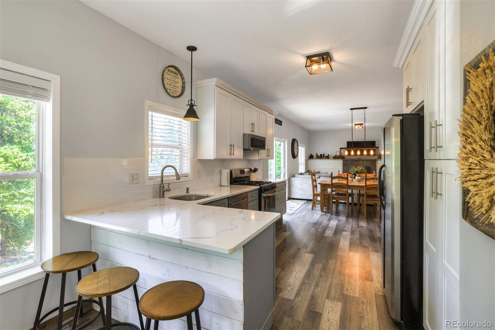 Discover this beautifully renovated 4-bedroom, 2.5-bathroom mountain home, offering 2,700 square feet of luxurious living space. With a thoughtfully designed floor plan, this home is perfect for those seeking comfort and style amidst the serene beauty of the mountains. When you step into this home, you'll be captivated by the completely renovated main level. The open concept design seamlessly combines the kitchen, great room, and dining areas, creating an inviting space for entertaining and relaxation. This level includes a primary suite, 2 more bedrooms and a bathroom all completely remodeled. Take in the beautiful mountain environment from the deck located off of the dining area! The expansive lower level of this home is designed for versatility and comfort. It features a large bedroom, a game room, and a TV room, all of which can be adapted to provide additional sleeping. Whether you're hosting a family gathering or a group of friends, this mountain home is perfect for entertaining and relaxation. The attached oversized garage has ample room for cars, toys and all your gear! Surrounded by the breathtaking beauty of the Colorado Rockies, this location offers endless opportunities for outdoor enthusiast including hiking, biking, fishing, or skiing. The world class resort town of Breckenridge is a short 40 minute drive and Fairplay is a quick 10 minutes away! This turnkey mountain home offers so much comfort, value all in a great location!