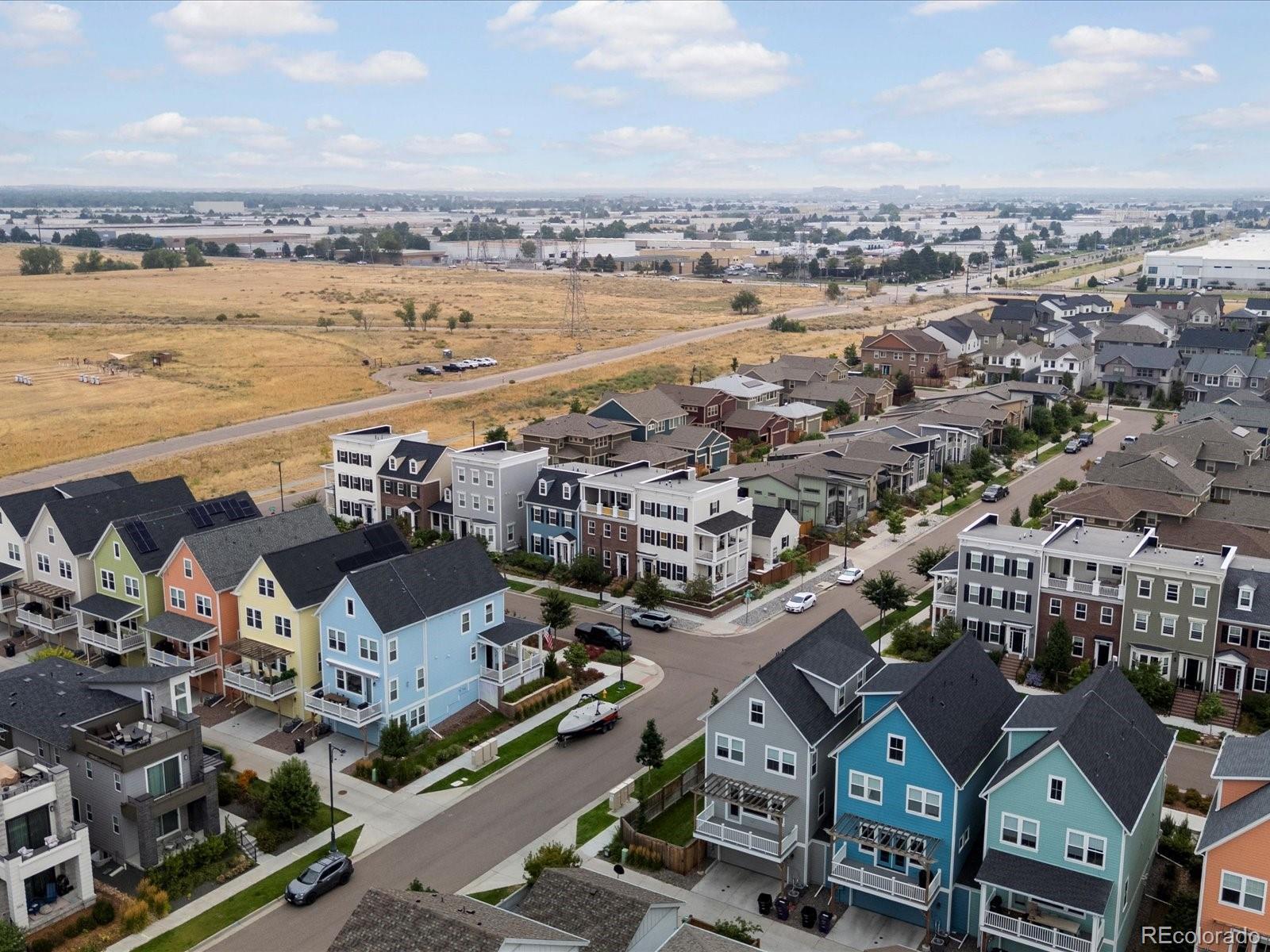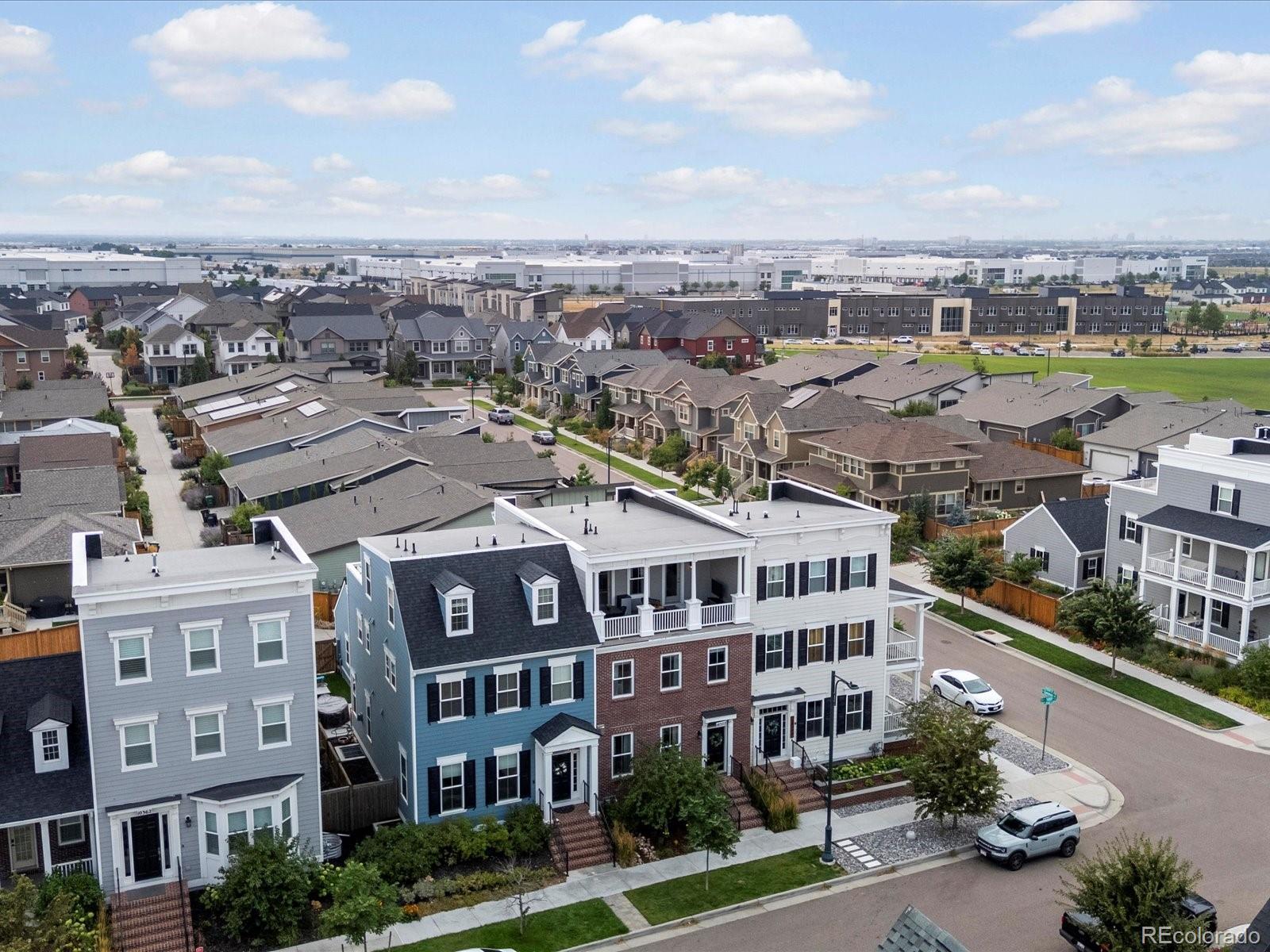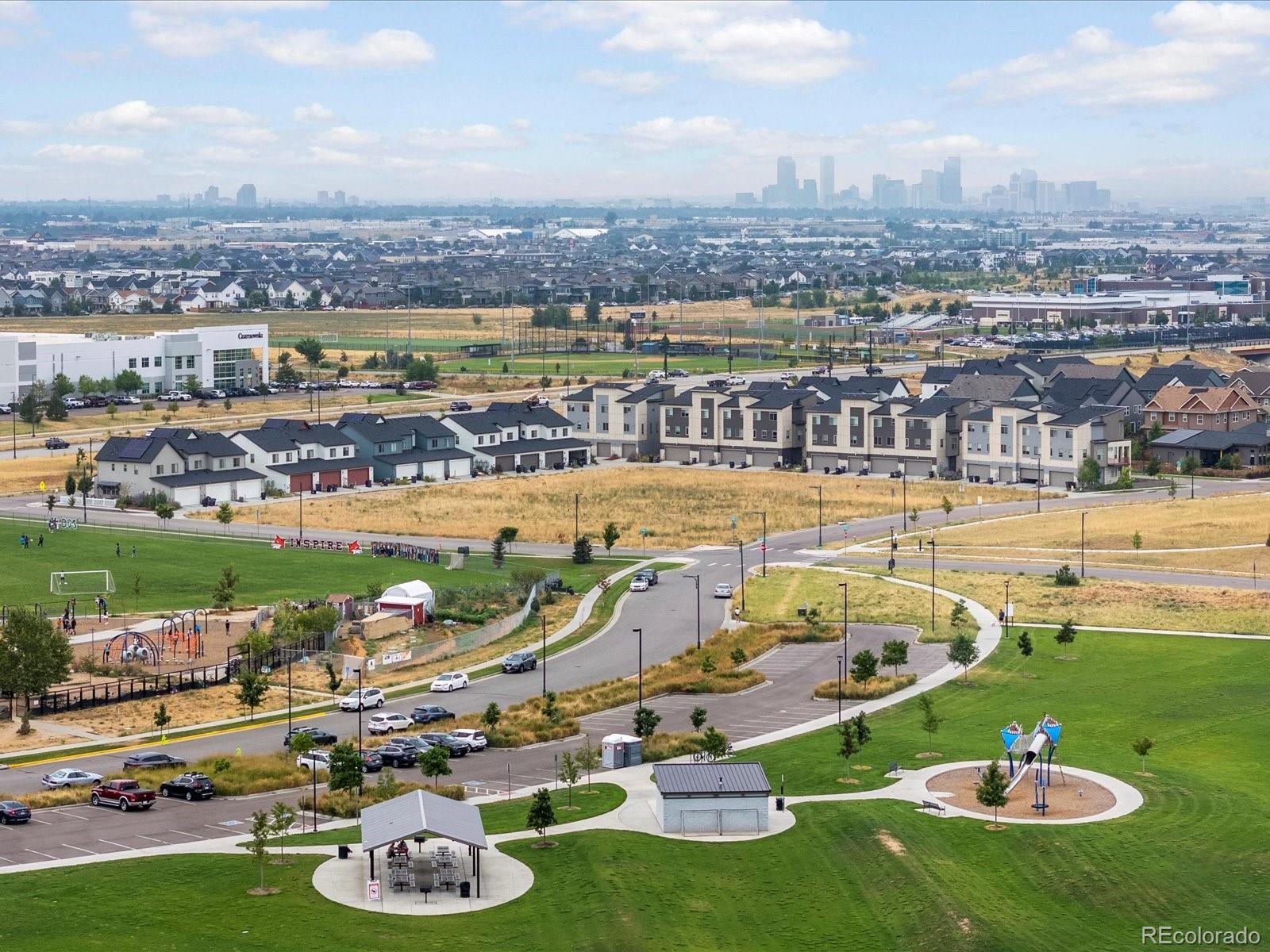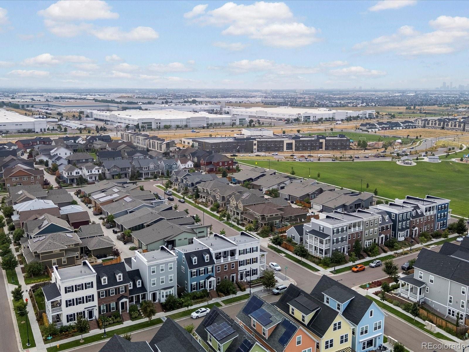 Discover refined elegance in this beautifully designed 4 bedroom, 4.5 bath Parkwood “Brookline” townhome, ideally located in Central Park’s sought-after North End. Just blocks from Splash Landing Pool, North Sports Fields, and nearby pickleball courts, this home offers the perfect blend of sophistication, comfort, and convenience. Inside, exquisite Parkwood millwork, rich wide-plank hardwood floors, and soaring 10-foot ceilings create a sense of grandeur throughout. The open-concept main level is anchored by a striking white-mantled gas fireplace in the living room, seamlessly flowing into a charming dining area with elegant wainscoting. The chef’s kitchen is a showpiece, featuring gleaming white-marble quartz counters, a central eat-up island, BOSCH stainless steel appliances, soft-close cabinetry, and a marble tile backsplash. From here, a spacious mudroom transitions effortlessly to the finished 2-car garage and a private patio complete with a low-maintenance turf dog run. The second level offers flexibility and function with a generous loft, perfect for a home office or playroom, two large secondary bedrooms each with stylish en-suite baths, and a convenient laundry room with cabinetry and a utility sink. On the third floor, retreat to the luxurious primary suite with dual walk-in closets, a spa-like 5-piece en-suite bath, and access to the expansive covered rooftop balcony, ideal for morning coffee or evenings entertaining. The finished basement extends the living space with a spacious bedroom, a bath with frameless glass shower, and a family/media room complete with a dry bar and beverage fridge. With a new roof (2024) for peace of mind, NO SUB-HOA, and quick access to Anschutz Medical Campus, Downtown Denver, and DIA, this property delivers luxury, lifestyle, and location in one exceptional home.