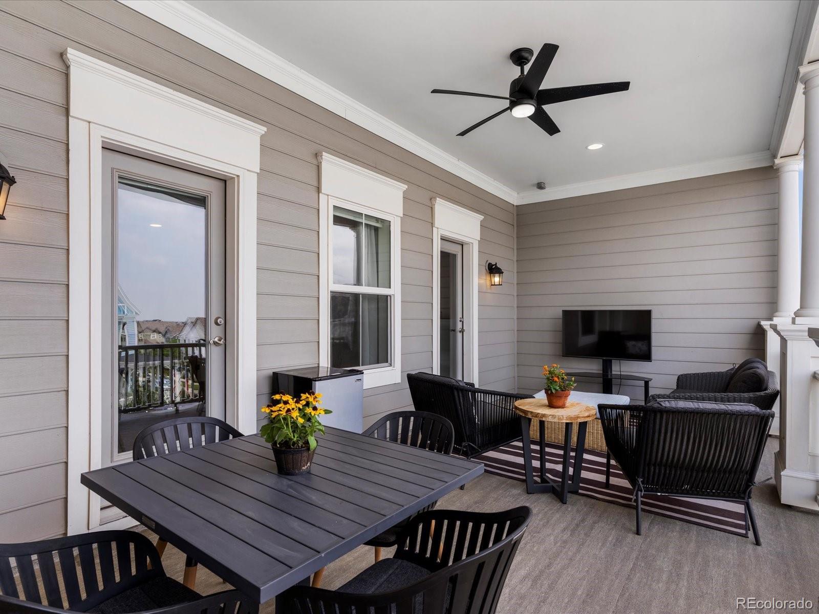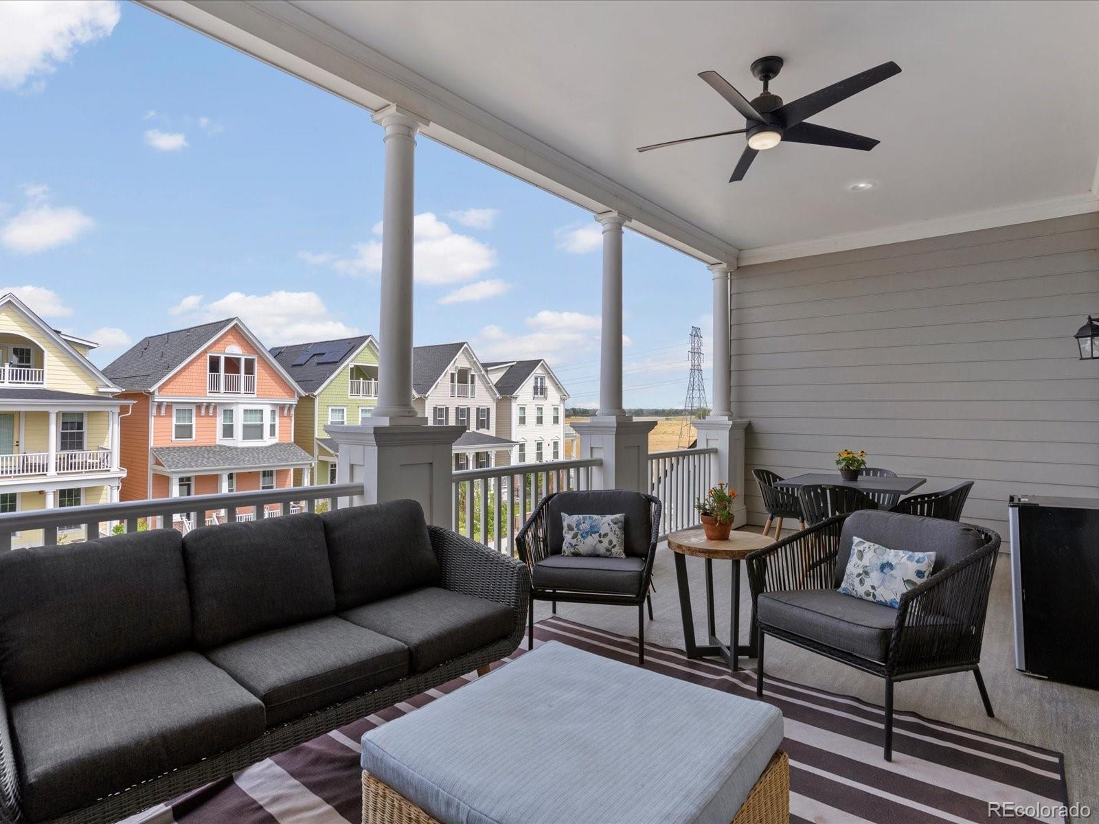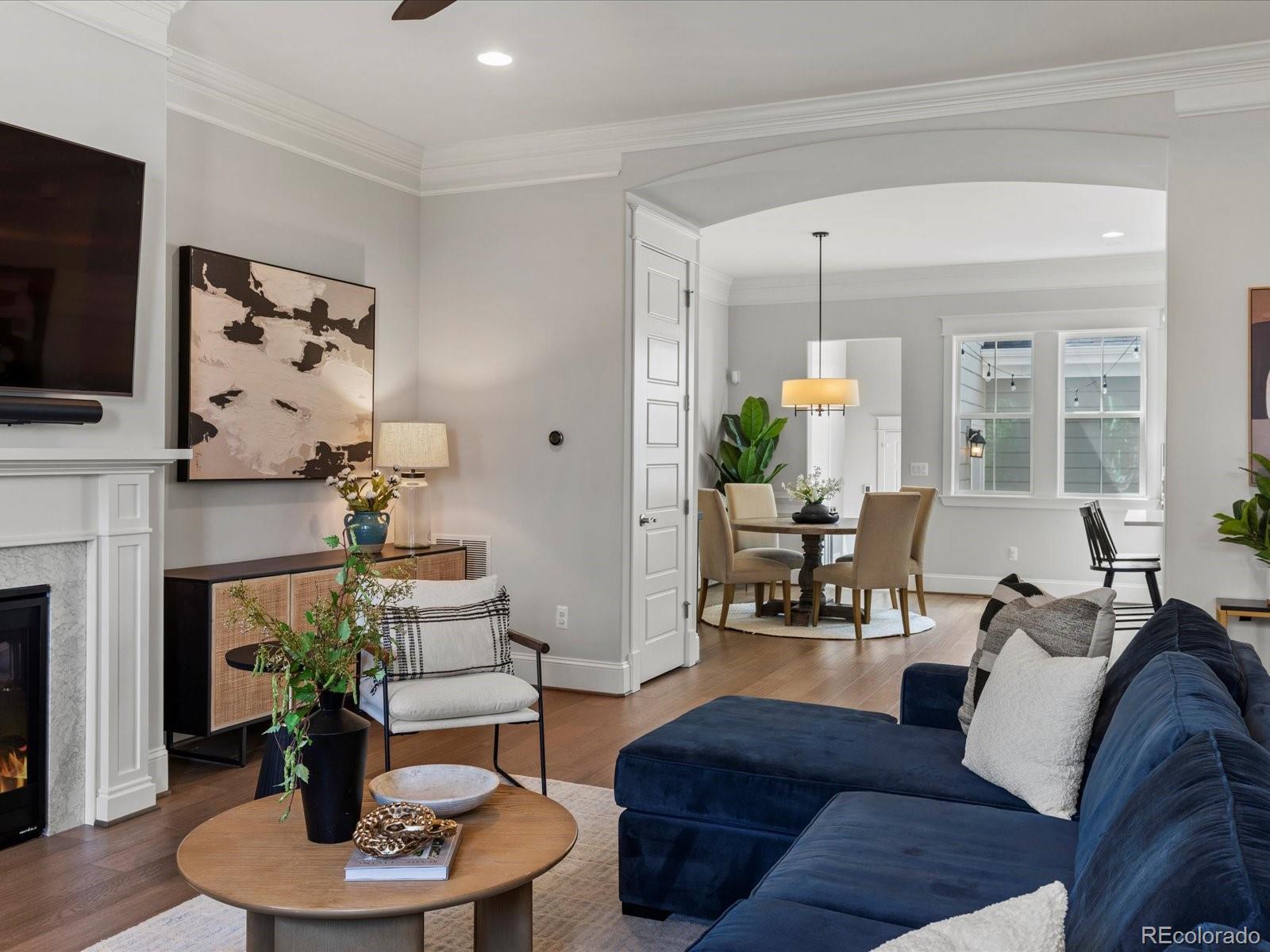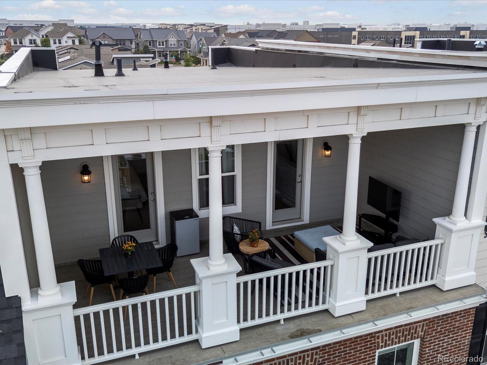 Discover refined elegance in this beautifully designed 4 bedroom, 4.5 bath Parkwood “Brookline” townhome, ideally located in Central Park’s sought-after North End. Just blocks from Splash Landing Pool, North Sports Fields, and nearby pickleball courts, this home offers the perfect blend of sophistication, comfort, and convenience. Inside, exquisite Parkwood millwork, rich wide-plank hardwood floors, and soaring 10-foot ceilings create a sense of grandeur throughout. The open-concept main level is anchored by a striking white-mantled gas fireplace in the living room, seamlessly flowing into a charming dining area with elegant wainscoting. The chef’s kitchen is a showpiece, featuring gleaming white-marble quartz counters, a central eat-up island, BOSCH stainless steel appliances, soft-close cabinetry, and a marble tile backsplash. From here, a spacious mudroom transitions effortlessly to the finished 2-car garage and a private patio complete with a low-maintenance turf dog run. The second level offers flexibility and function with a generous loft, perfect for a home office or playroom, two large secondary bedrooms each with stylish en-suite baths, and a convenient laundry room with cabinetry and a utility sink. On the third floor, retreat to the luxurious primary suite with dual walk-in closets, a spa-like 5-piece en-suite bath, and access to the expansive covered rooftop balcony, ideal for morning coffee or evenings entertaining. The finished basement extends the living space with a spacious bedroom, a bath with frameless glass shower, and a family/media room complete with a dry bar and beverage fridge. With a new roof (2024) for peace of mind, NO SUB-HOA, and quick access to Anschutz Medical Campus, Downtown Denver, and DIA, this property delivers luxury, lifestyle, and location in one exceptional home.