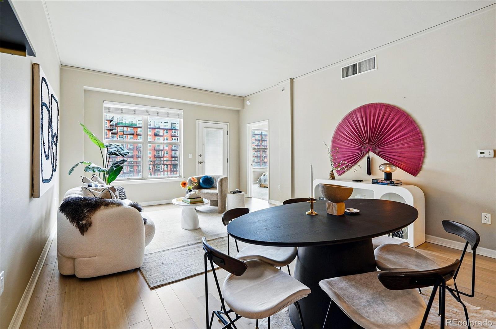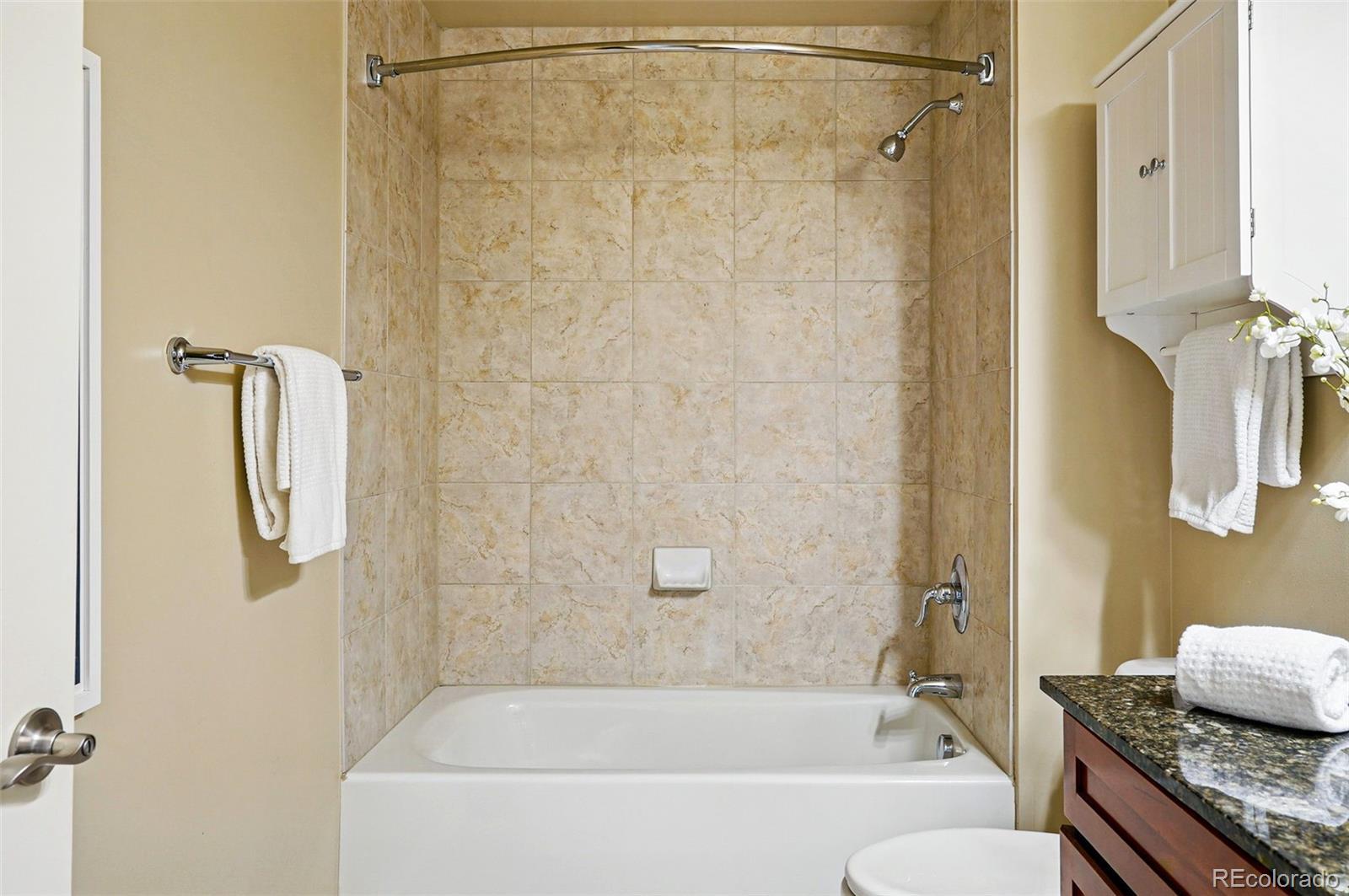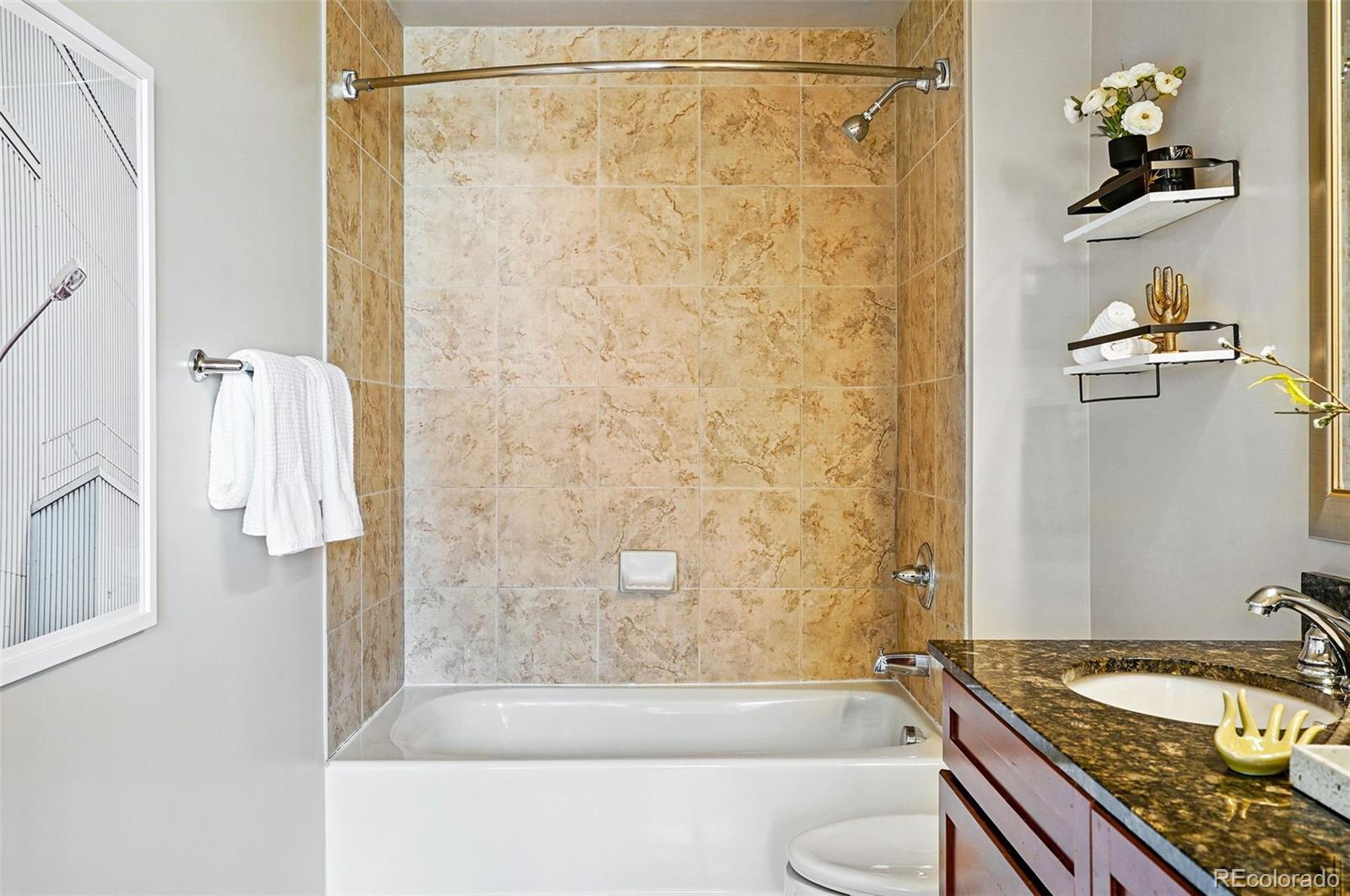 Welcome to this thoughtfully updated 2-bedroom, 2-bath condo that perfectly balances modern style, everyday comfort, and city convenience. Inside, you'll find a spacious open-concept layout featuring in-unit laundry and a bright, functional kitchen with sleek granite countertops, stainless steel appliances, and plenty of room to cook and entertain. The inviting living area opens seamlessly to a private balcony, ideal for morning coffee or evening wind-downs. The primary suite is a peaceful retreat, complete with a generous en suite bathroom and ample closet space. A second bedroom offers versatility, whether you need space for guests, a home office, or your own creative hideaway. Located just steps from Benedict Fountain Park and close to downtown, you'll enjoy the charm and walkability of city living with quick access to I-25 for an easy commute. With additional perks like a fitness center, business lounge, and dedicated parking, this move in ready condo is well positioned for convenient city living.