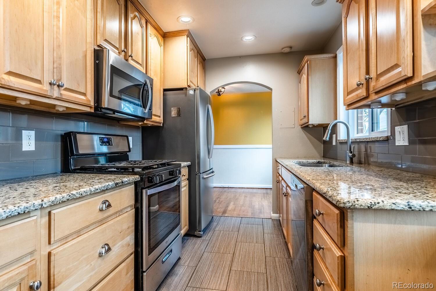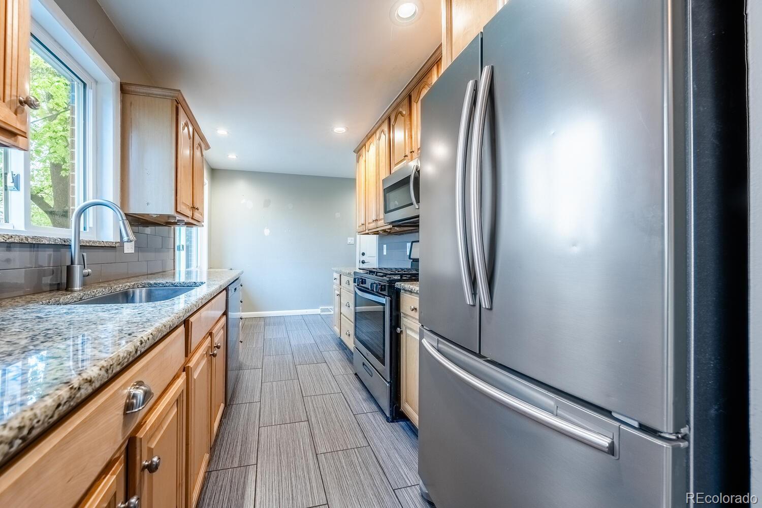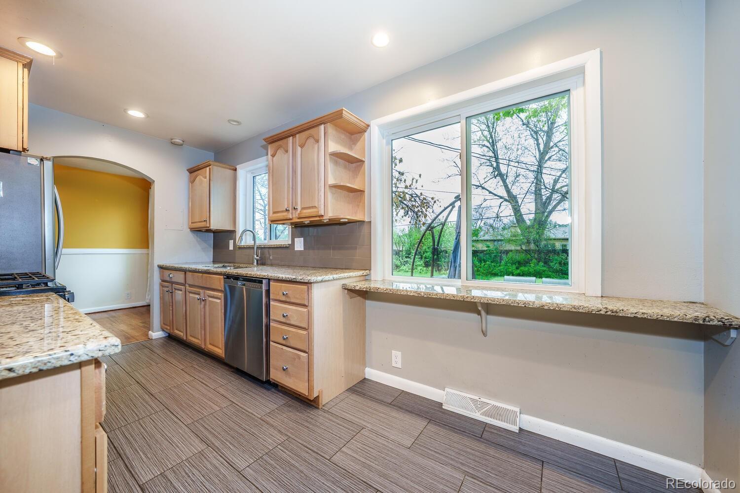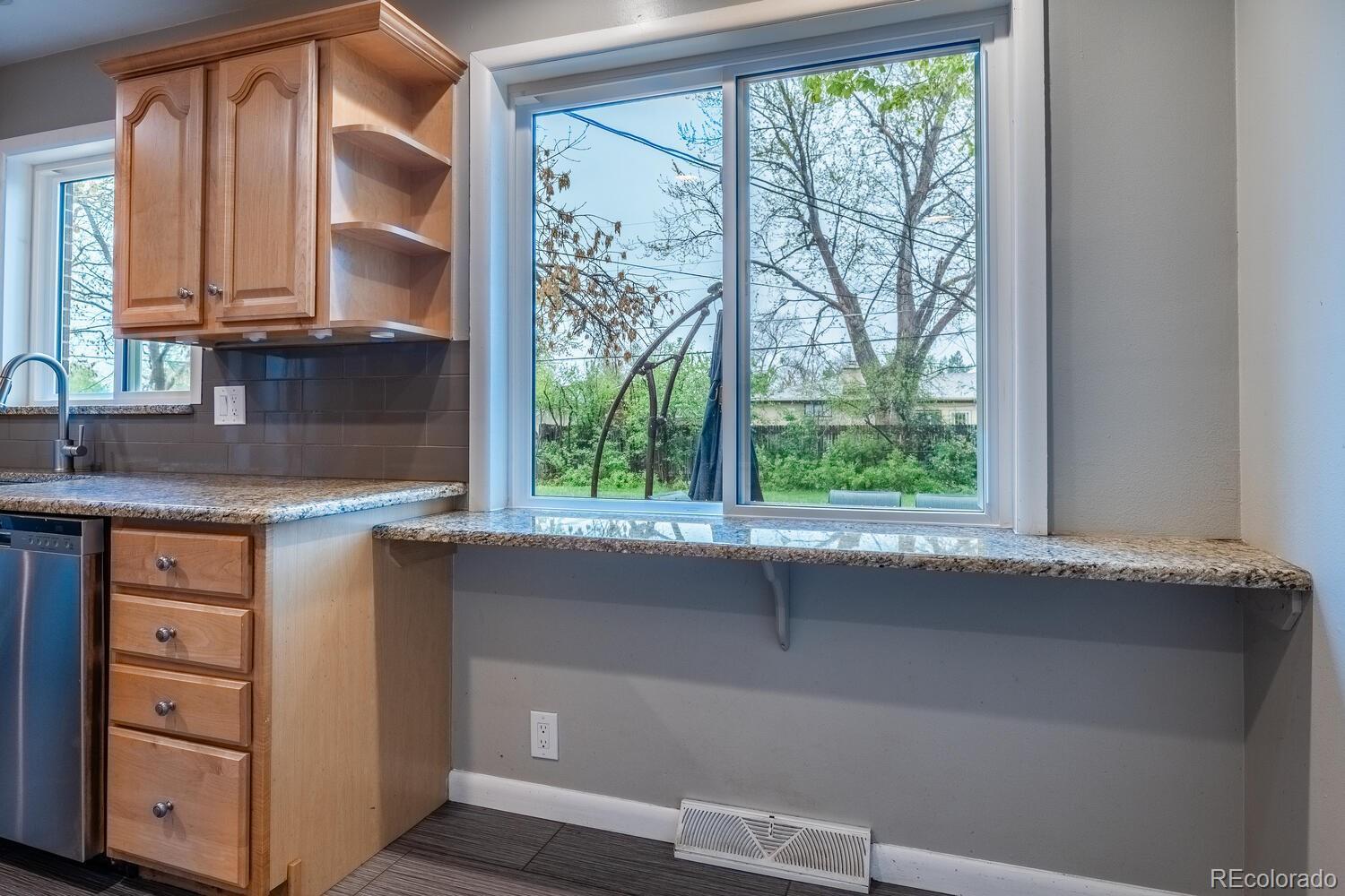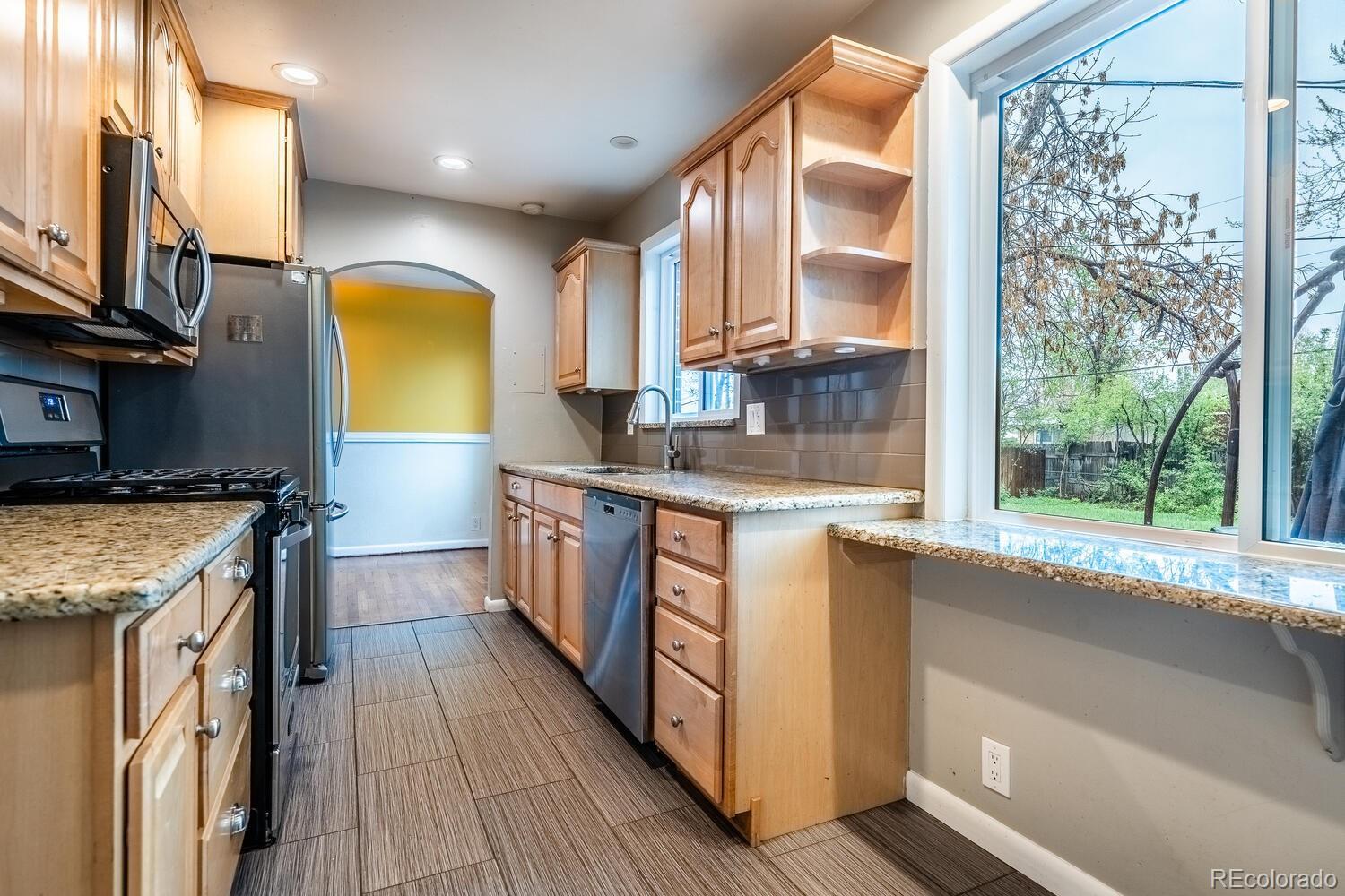 Exceptional 4 bedroom home with tons of updates throughout, New Windows and amazing large lot. The main floor features hardwood floors throughout living spaces, large living room, updated bathroom, spacious Primary bedroom, 2 secondary bedrooms, large dedicated dining space, tons of natural light, updated kitchen with granite counters, tile backsplash, SS appliance, gas stove, single basin undermount sink and breakfast bar. The professionally finished basement has engineered wood floors, huge family room for a theater or gaming space, updated 3/4 bath, large bedroom and tons of storage space. Charm and curb appeal invites you with a fully brick wrapped exterior, shutters, carport, massive mature trees, shed, professionally landscaping (full sprinkler & drip system) and fully fenced private backyard for family gatherings and play dates. Other key elements include AC, light dimmers and new windows. Solar system and panels to assist with utilities. The location is ideal; just minutes away from Centennial Park and Lake, South Platte, downtown Littleton, Marstan lake and quick access to highways.