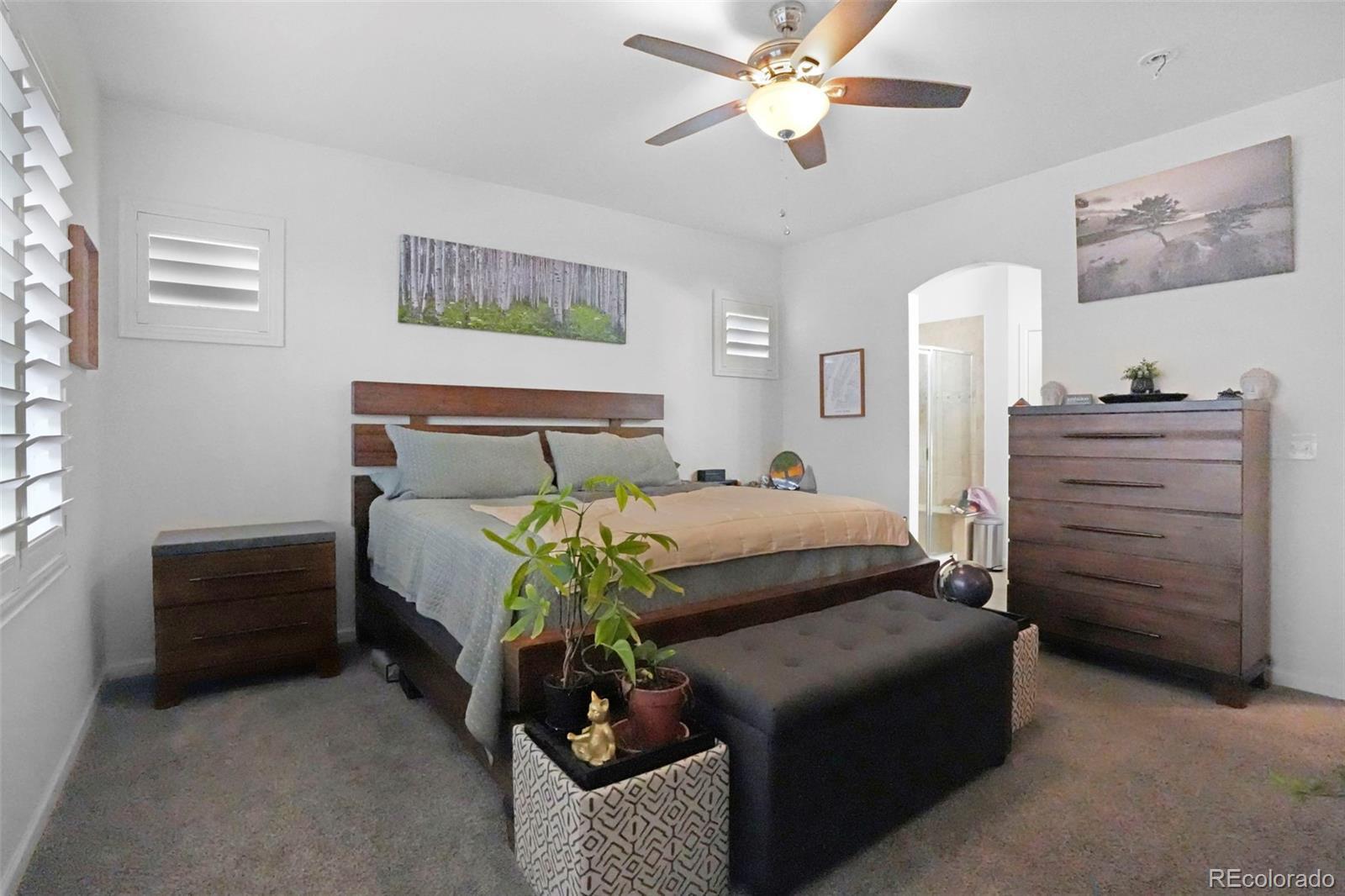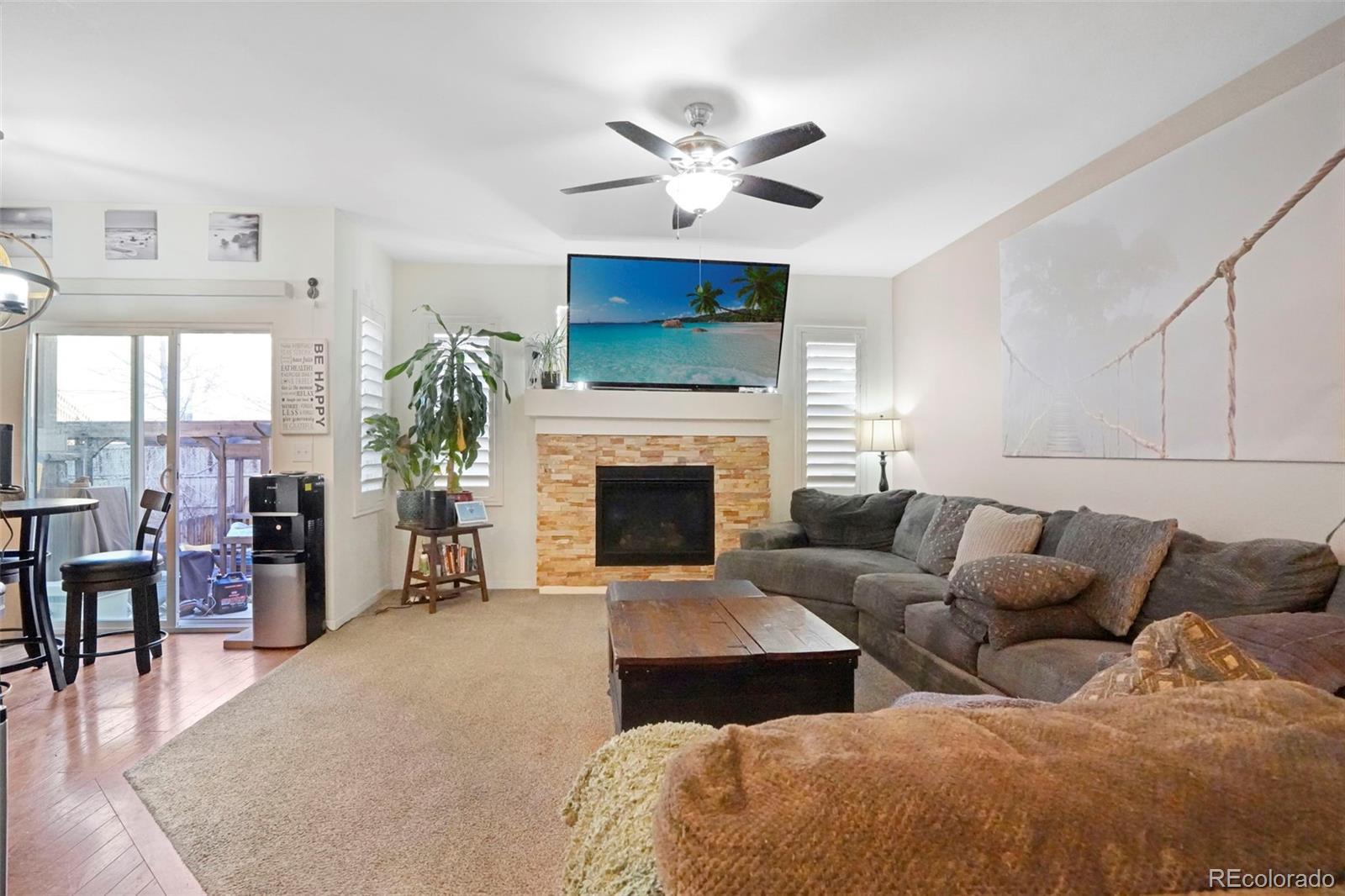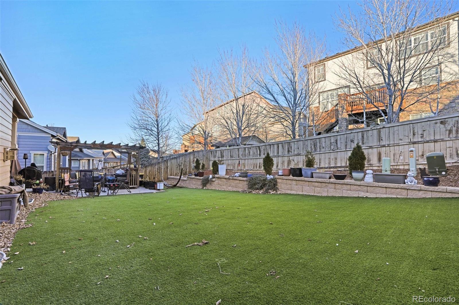 This beautifully maintained ranch-style home offers a versatile and elegant floor plan designed for both everyday living and entertaining. A welcoming foyer and plantation shutters throughout the main level add timeless appeal. The private owner’s suite provides a quiet retreat, while a bright secondary bedroom is perfect for guests or family. Bonus room features a striking natural stone accent wall. A conveniently located upper-level laundry room includes ample shelving for storage.The kitchen is well equipped with a gas cooktop, double convection ovens, granite countertops, and a natural stone backsplash. A large pantry and casual dining nook flow seamlessly into the living room, where a gas fireplace creates a cozy atmosphere for Colorado evenings.The finished lower level expands the home’s living space with custom built-in cabinetry topped with granite and a dedicated home theater featuring a 120-inch screen and projector — both included with the home. Additional lower-level features include a spacious bedroom with a walk-in closet and a flexible fourth bedroom ideal for a home office or guest space. Step outside to a low-maintenance backyard designed for relaxing and entertaining, featuring artificial turf and a pergola — perfect for outdoor dining, gatherings, or unwinding year-round.Located in the desirable Wheatlands community, residents enjoy access to two pools, picnic areas, and a clubhouse, all within walking distance. HOA dues are $70 per month. The home is within the highly regarded Cherry Creek School District and offers easy access to Southlands Shopping Center, E-470, DIA, and nearby Aurora Reservoir with trails, boating, and recreation.