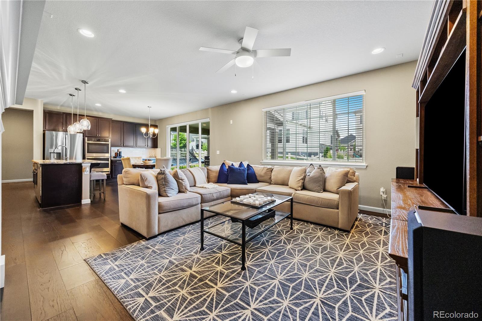 Welcome to your dream home—a spacious, beautifully maintained home nestled in the highly sought-after Southshore community. With over 3,900 square feet of thoughtfully designed living space, this home offers the perfect blend of comfort, style, and functionality. Step into the open-concept main level, where natural light pours in through large windows. The gourmet kitchen is a chef’s dream, featuring stainless steel appliances, granite countertops, a large island, and a walk-in pantry. The inviting living room is anchored by a cozy fireplace, making it an ideal space for both everyday living and entertaining. Upstairs, the expansive primary suite boasts a spa-like en-suite bathroom and a walk-in closet. Three additional bedrooms provide plenty of space for family or guests—one with its own private bath for added convenience. The fully finished basement expands your living space even further, perfect for a home theater, fitness area, or guest retreat, complete with a full bathroom. Outside, enjoy a beautifully landscaped yard, a covered back patio ideal for outdoor dining, and a welcoming front porch. Located just minutes from the Aurora Reservoir, scenic trails, parks, community pools, and within the top-rated Cherry Creek School District, this home offers an exceptional lifestyle in one of Aurora’s premier neighborhoods.