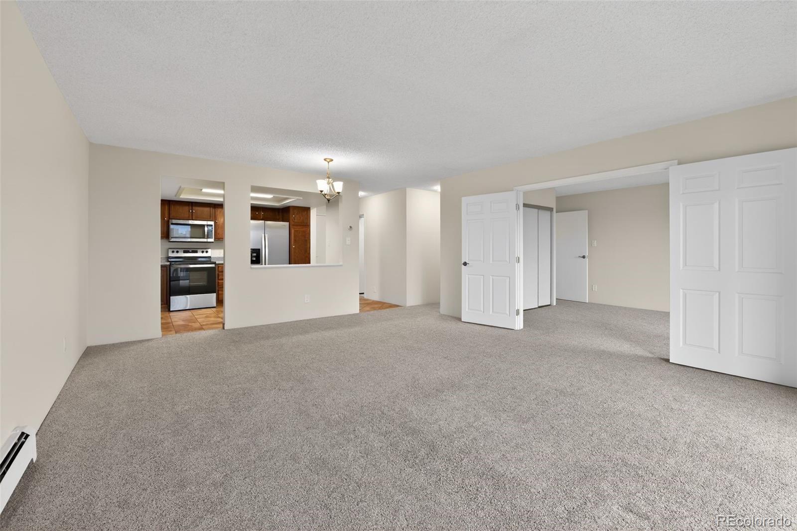 Tour this impeccably maintained penthouse condo with sweeping views of the golf course and Colorado skies! In 2022 this spacious, private condo was upgraded with a Bosch (46db - whisper quiet) dishwasher, refrigerator with ice and water in door, range with steam clean feature, microwave, washer, dryer, (2) air conditioners in addition to new carpet, upgraded electric switches/outlets, lights and more. Screened in lanai is a perfect place for coffee, watching the wildlife and relaxing in peaceful serenity. French doors separate the den/second bedroom from the living room providing the opportunity to maximize the area or close off the room for privacy. Tiled floors in the kitchen, foyer and both bathrooms make cleaning a breeze. Laundry room with built in shelves allows lots of extra in unit storage. Priced very competitively for a unit of this caliber, the home is located in Heather Gardens, a sought-after 55+ active adult community known for its vibrant lifestyle. Residents enjoy a wide variety of classes, events, and activities, as well as the on-site Rendezvous restaurant (open to the public) featuring live music and dancing. Community amenities include a 9-hole executive golf course, indoor and outdoor pools, hot tub, fitness center, and sauna. This is more than a home—it’s a lifestyle.
