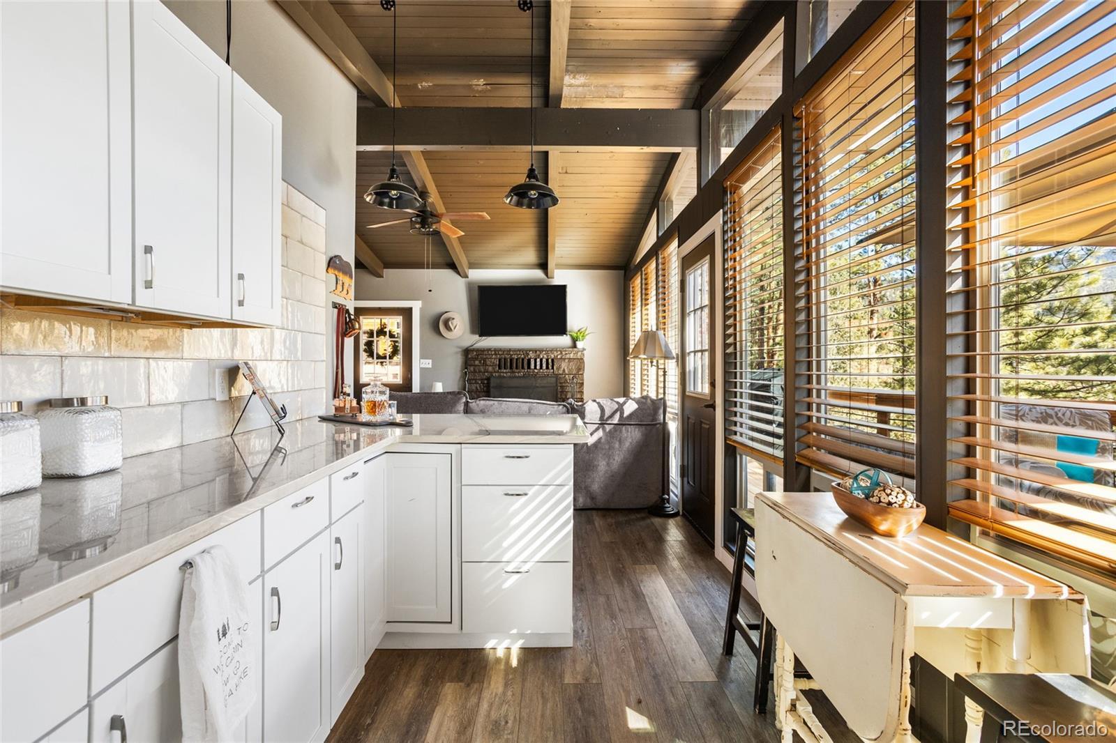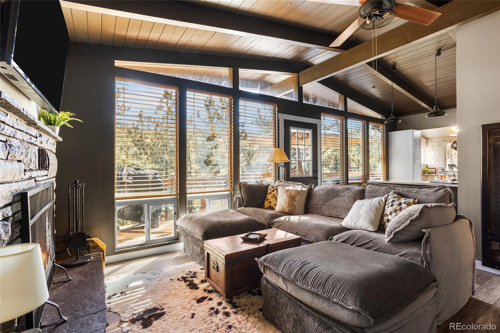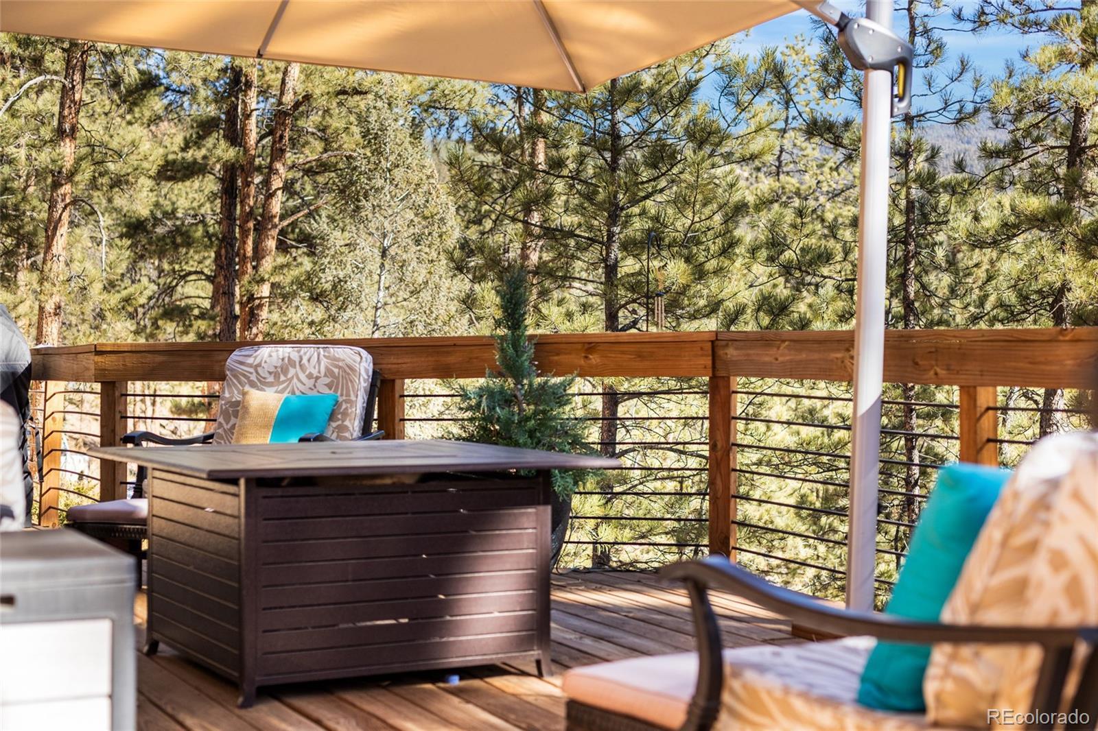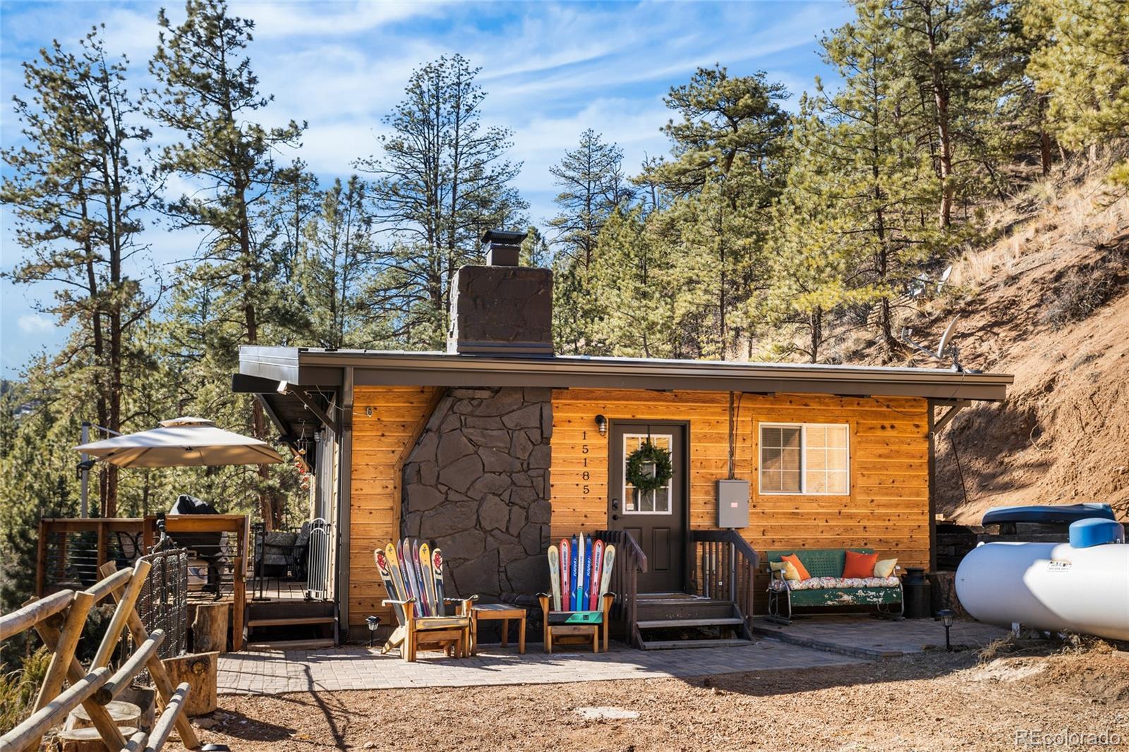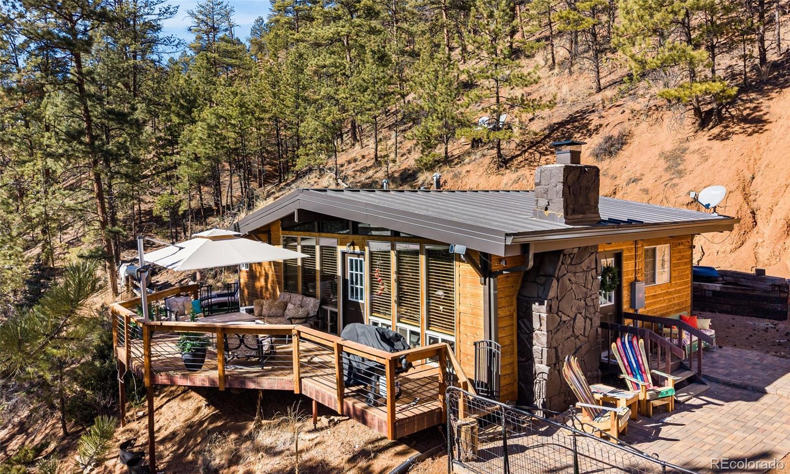 Tucked into towering pines just nine minutes from Deckers, this fully remodeled cabin is the definition of a true Colorado retreat, peaceful with all the elements of comfort and adventure right outside your front door. Set on 4.3 acres in the private Rainbow Falls community, the home offers everything you want in a mountain escape without sacrificing comfort or reliability. Inside, the cabin has been thoughtfully remodeled while preserving the warmth and character that makes a cabin feel like a cabin. Two bedrooms and one bath create an easy, cozy layout that’s perfect for weekends away or extended stays. Outside is where this property truly shines. A large deck with new railing sits among mature trees, creating a treehouse-like setting. A new brick paver patio, turf, and a newly built retaining wall expand the outdoor living space, making it ideal for gathering, relaxing, or soaking in the quiet. A trail has been dug through the property's hillside, inviting morning walks, evening adventures, or letting your dogs run free. Behind the scenes, major upgrades bring peace of mind. A new metal roof with 3-inch insulation, a new septic system installed in 2023, sealed foundation walls, reinforced caissons with an additional new caisson added, and numerous structural and functional improvements ensure this cabin is as solid as it is charming. Owners enjoy access to two private community ponds - Beaver Pond, stocked twice a year with trout, and Gem Pond, one even transforms into an ice skating rink in the winter. Just down the road, the South Platte River winds through Deckers, offering some of Colorado’s most renowned gold medal fly fishing. Zoned 51 past the property line for hunting, surrounded by gorgeous mature trees, and located close enough for easy access yet far enough to truly unplug, this cabin is a rare blend of recreation, privacy, and turn-key mountain living. Just what you're looking for? We thought so!
